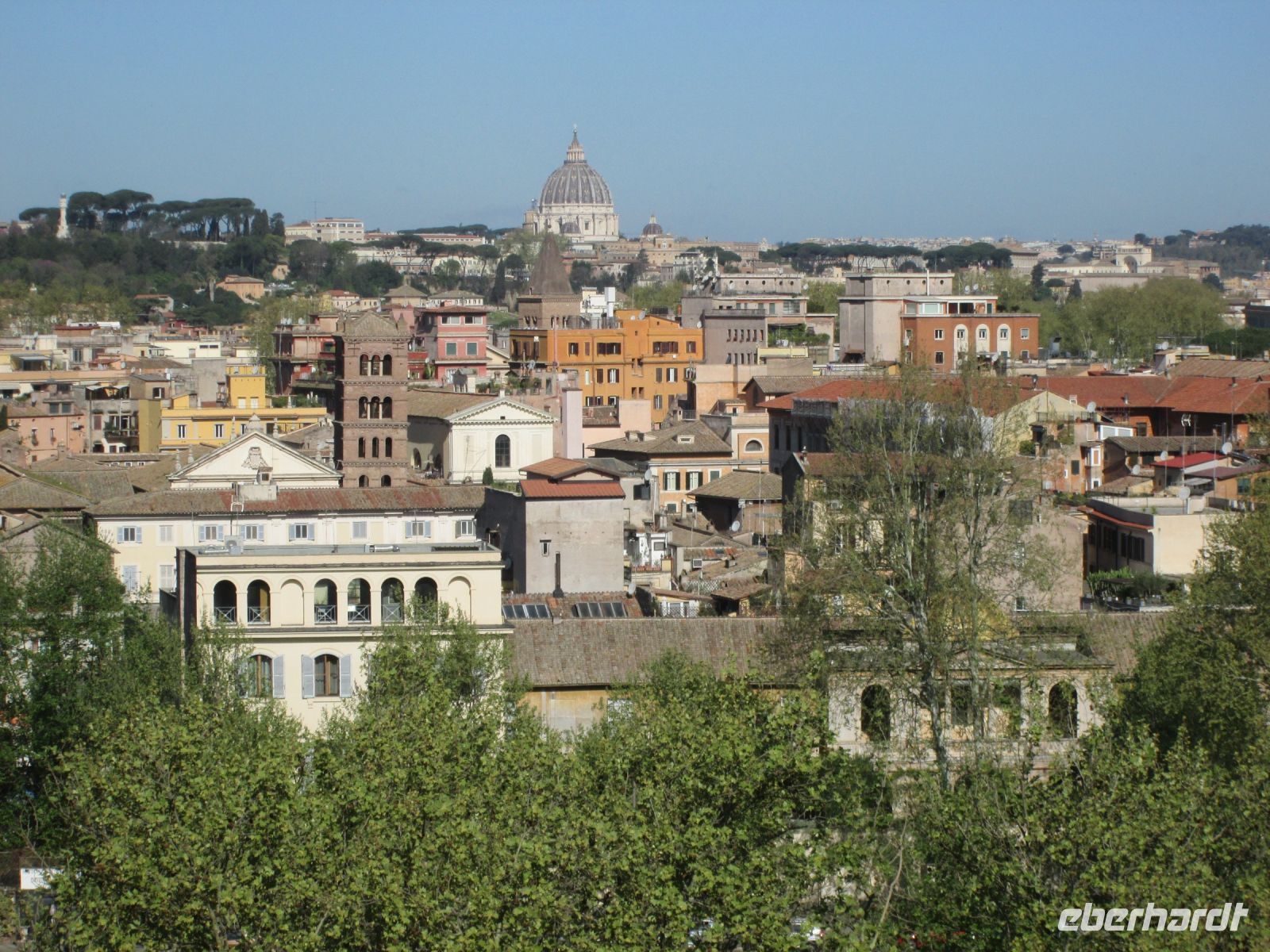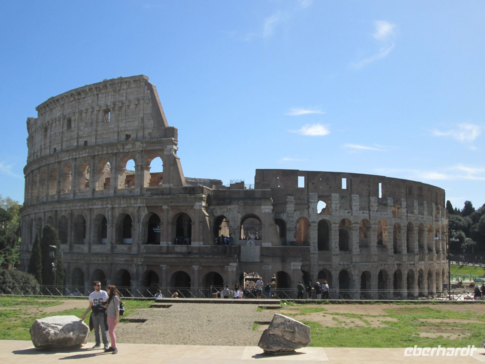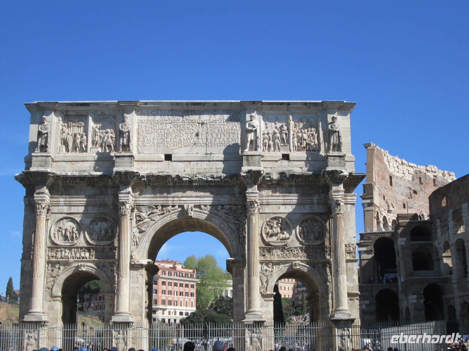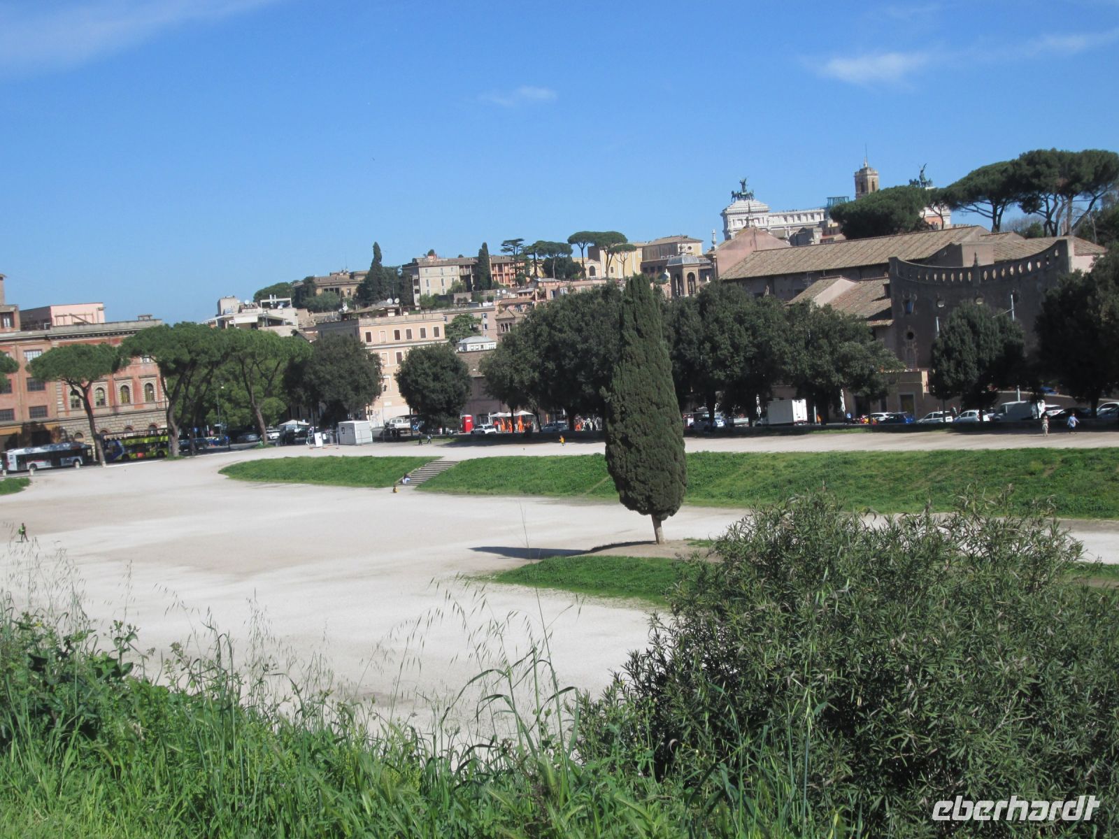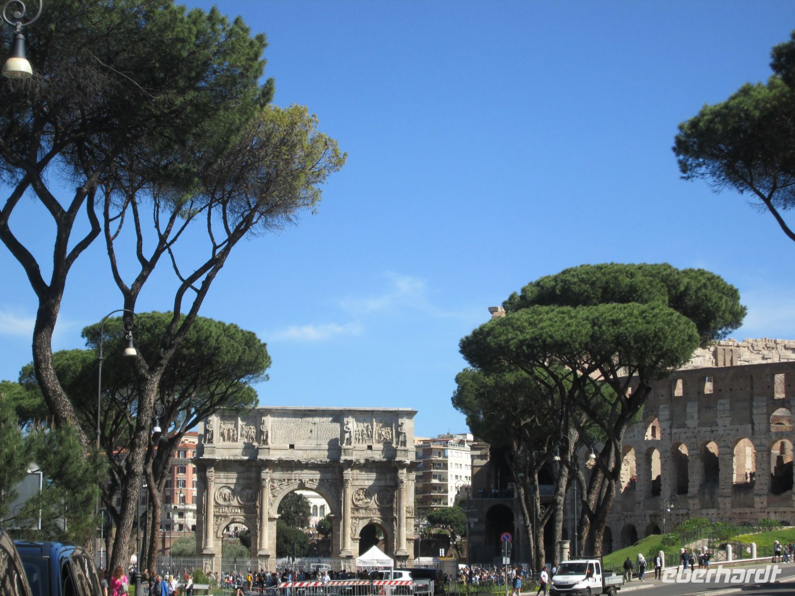 Zu Fuß ging es auf den Aventin, einen der vielerwähnten und oft besungenen 7 Hügel der Stadt, wo ein Blick zum einen durch das Schlüsselloch am Palazzo der Malteser auf den Petersdom und zum anderen von der Terrasse des Orangengartens wieder auf den selben und auf einen großen Teil der Tibermetropole möglich ist. Rom war in diesen Vormittagsstunden noch ruhig, dies sollte sich aber alsbald ändern. Denn mit dem Circus Maximus, dem Forum Romanum und dem Kolosseum hatten wir absolute Höhepunkte auf unserm Besichtigungsprogramm, welche aber auch vielen anderen Rom-Besuchern sehr wichtig sind.