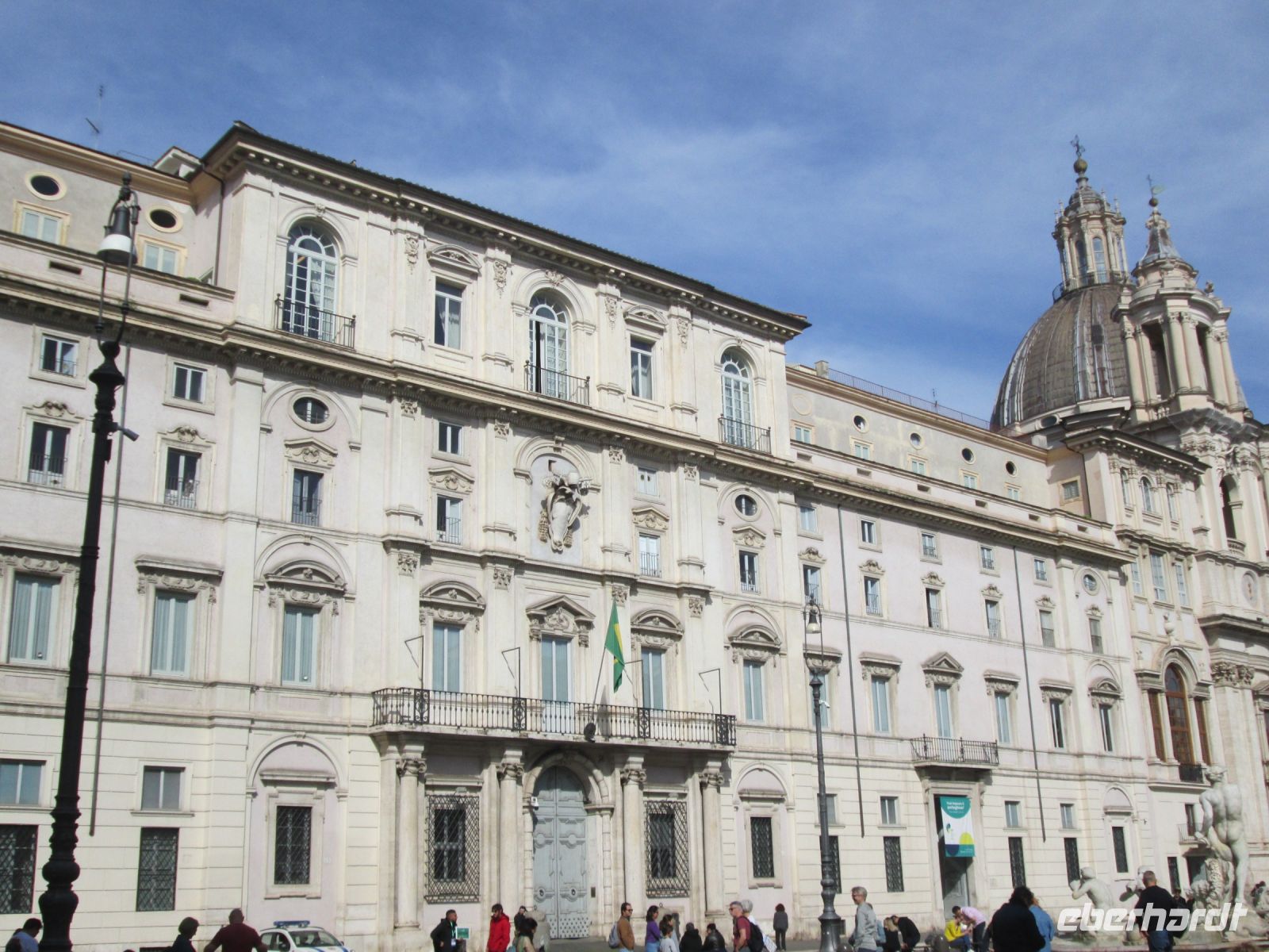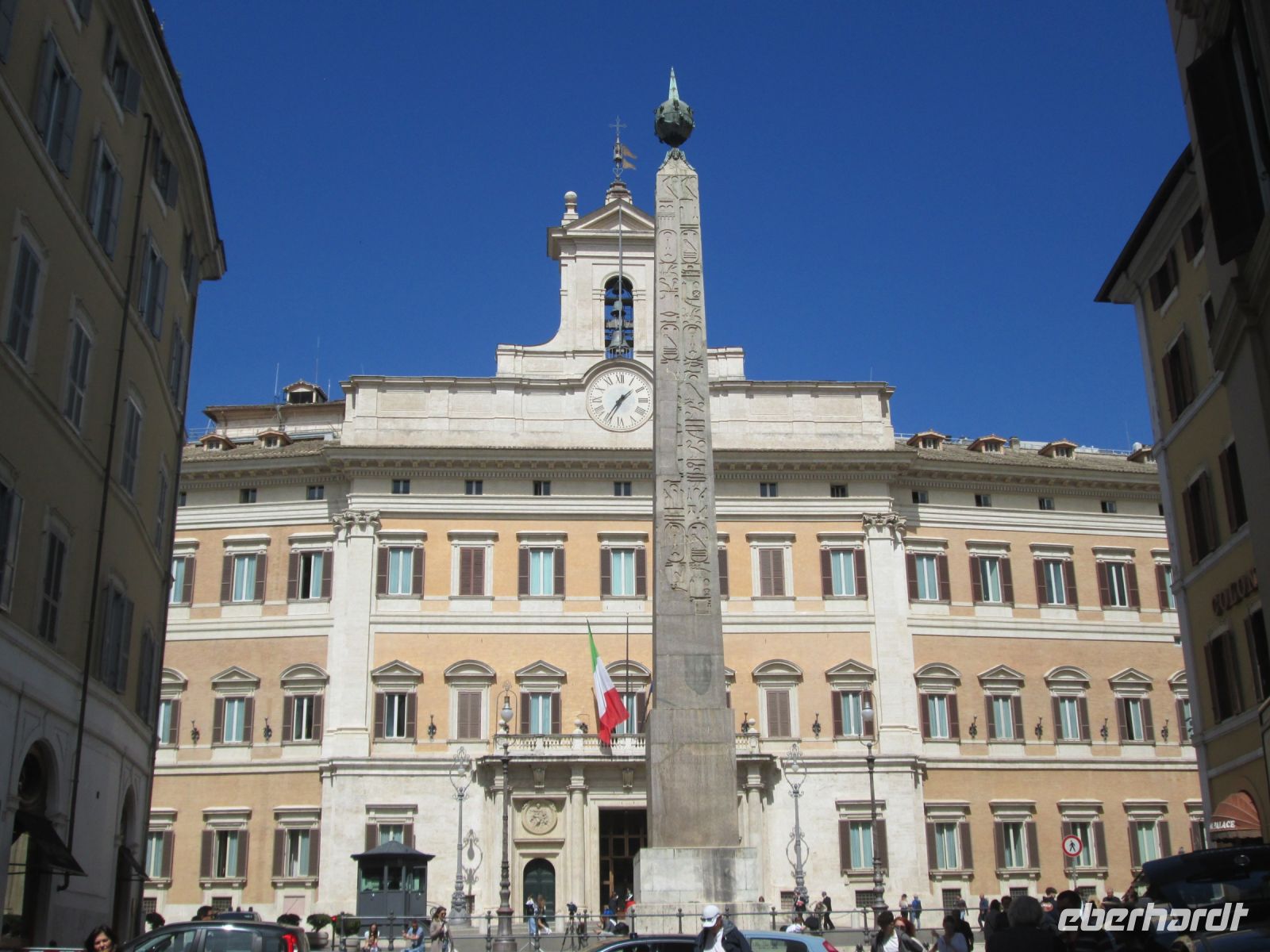 Nach einer wohltuenden Mittagspause führte uns der Spaziergang weiter vorbei am Palazzo Monte Citorio, in dem die italienische Abgeordnetenkammer tagt. Dieser Palast trägt wieder einmal die Unterschrift des großartigen Barockarchitekten Gian Lorenzo Bernini, auch wenn er ihn nicht vollendet hat. An seinem einstigen Wohnhaus kamen wir später noch vorbei.
