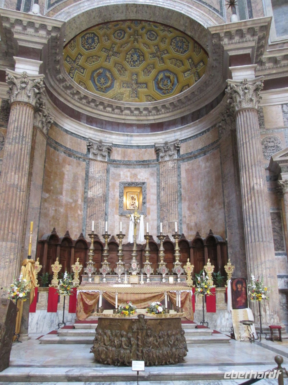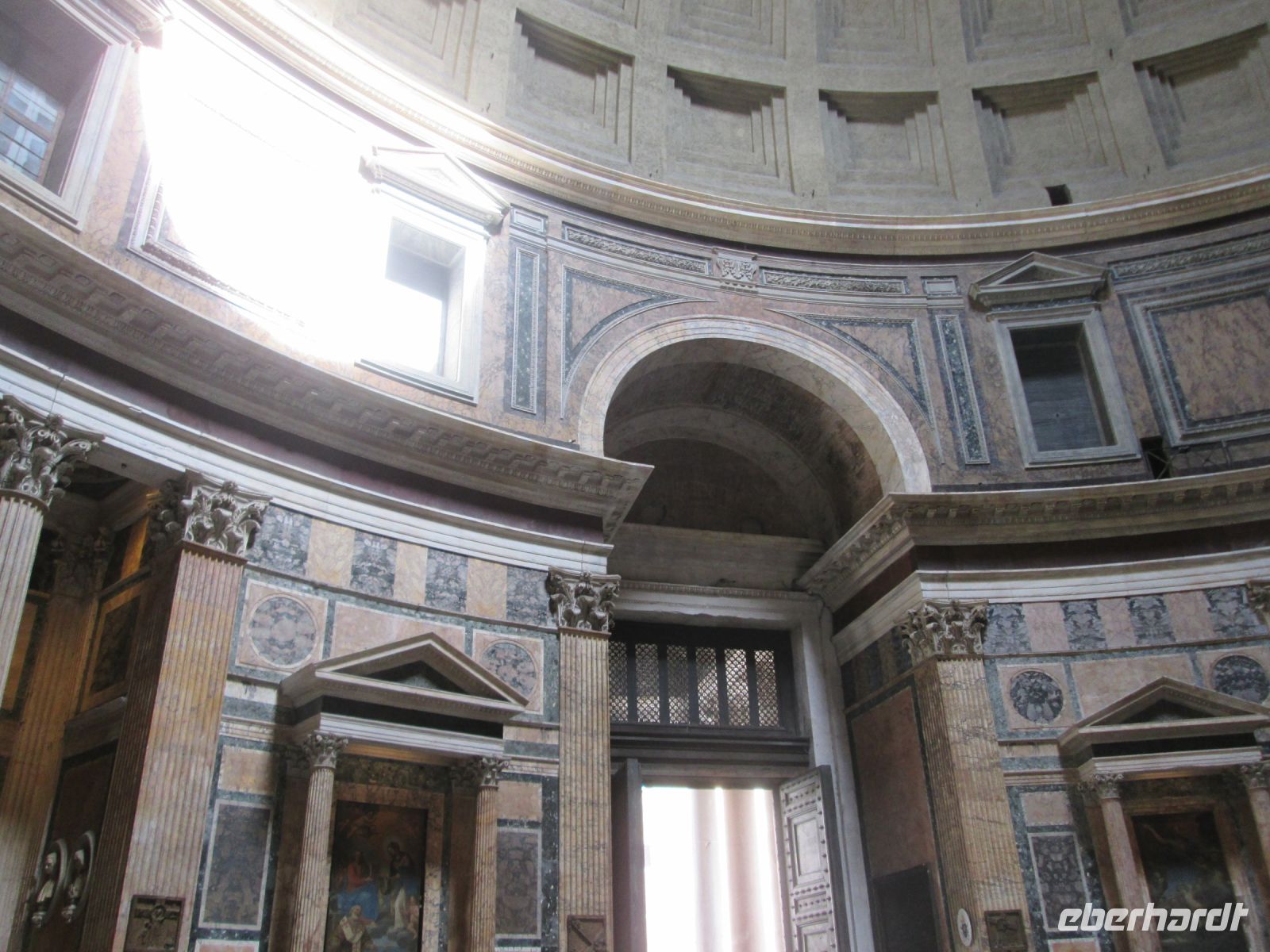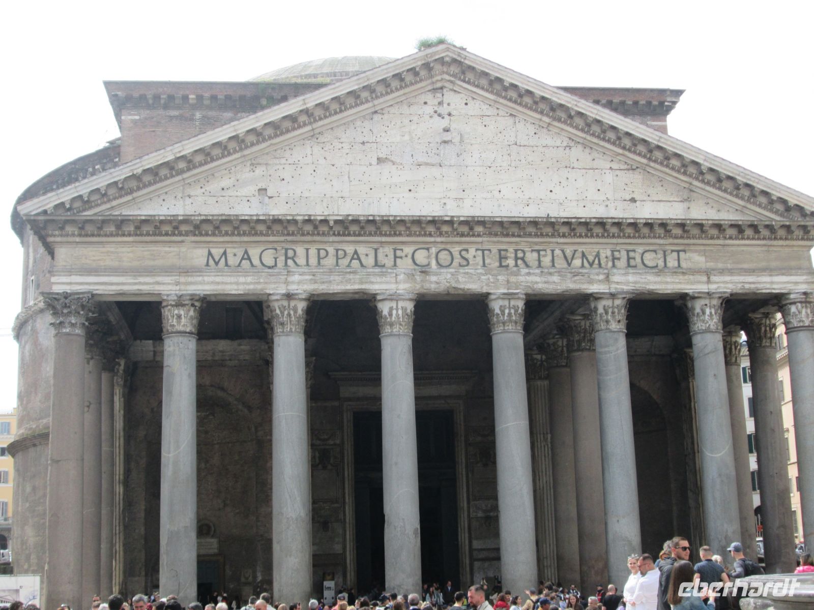 Aus Tempeln wurden Kirchen. So auch beim Pantheon. Das allen Göttern gewidmete Pantheon zählt zu den eindrucksvollsten Denkmälern römischer Architektur, erbaut 27 v.Chr. . Die Kuppel mit ihrer mittigen Öffnung und ihrem Durchmesser von 43,40 Metern war Vorbild für andere Bauwerke.