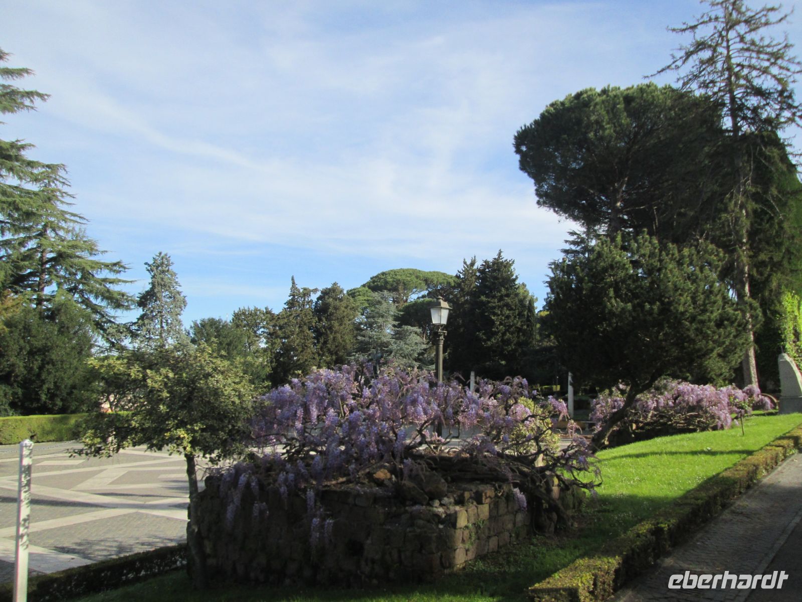 Nach einigem Hin und Her am Eingang zum Vatikan, dem Nachweis das alle angemeldeten Personen auch wirklich erschienen sind, hatten wir es pünktlich zum Kleinbus geschafft. Die Sonne legte ihre Wärme wieder auf unseren Körper und verlieh den Gärten samt Gebäuden einen herrlichen Farbglanz.