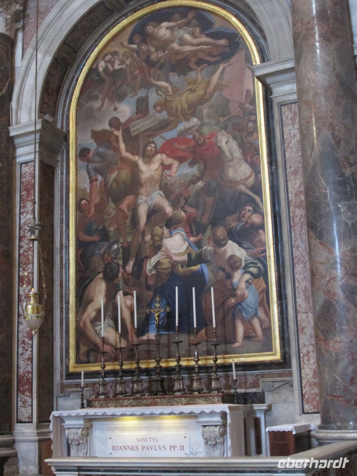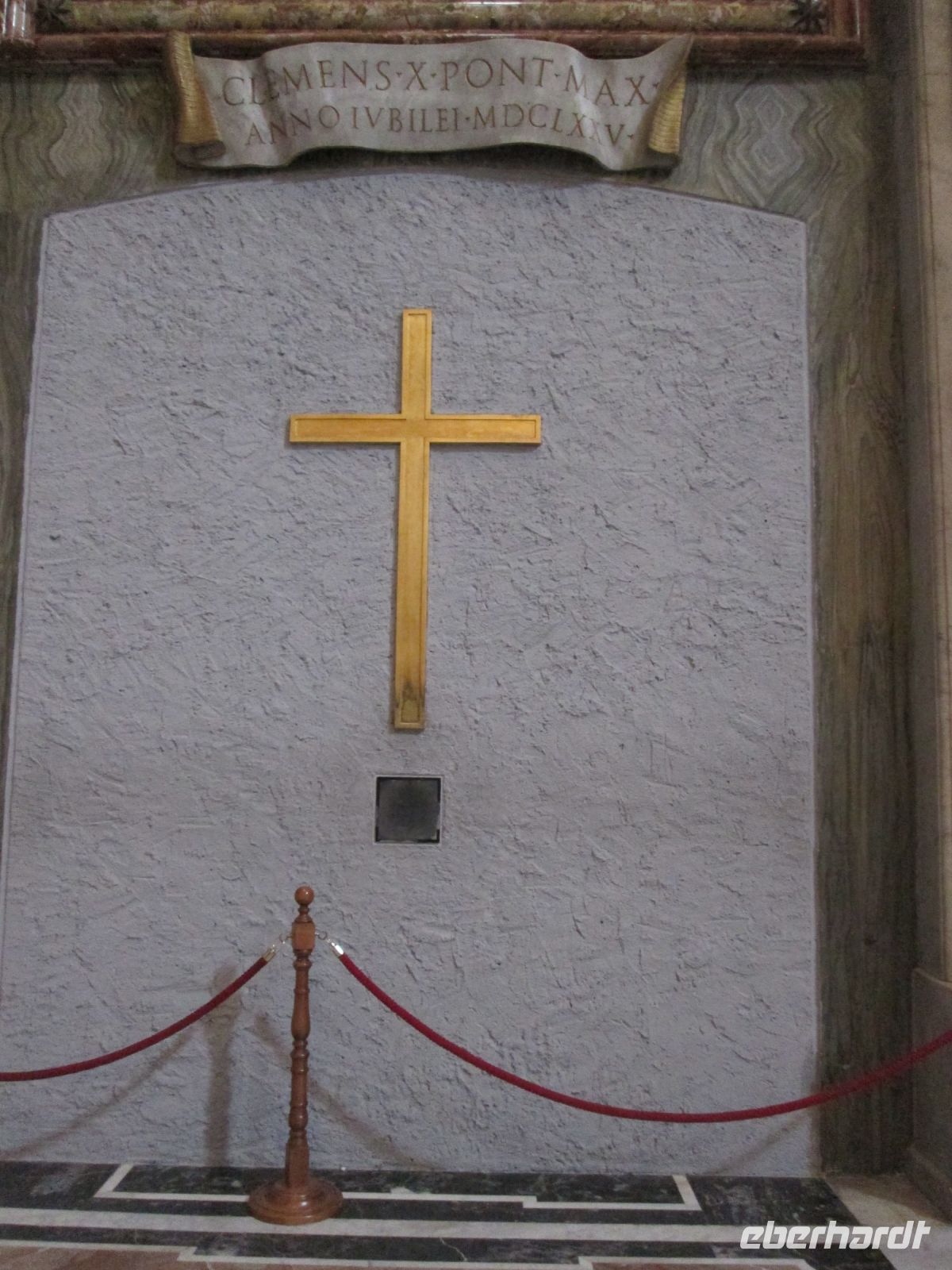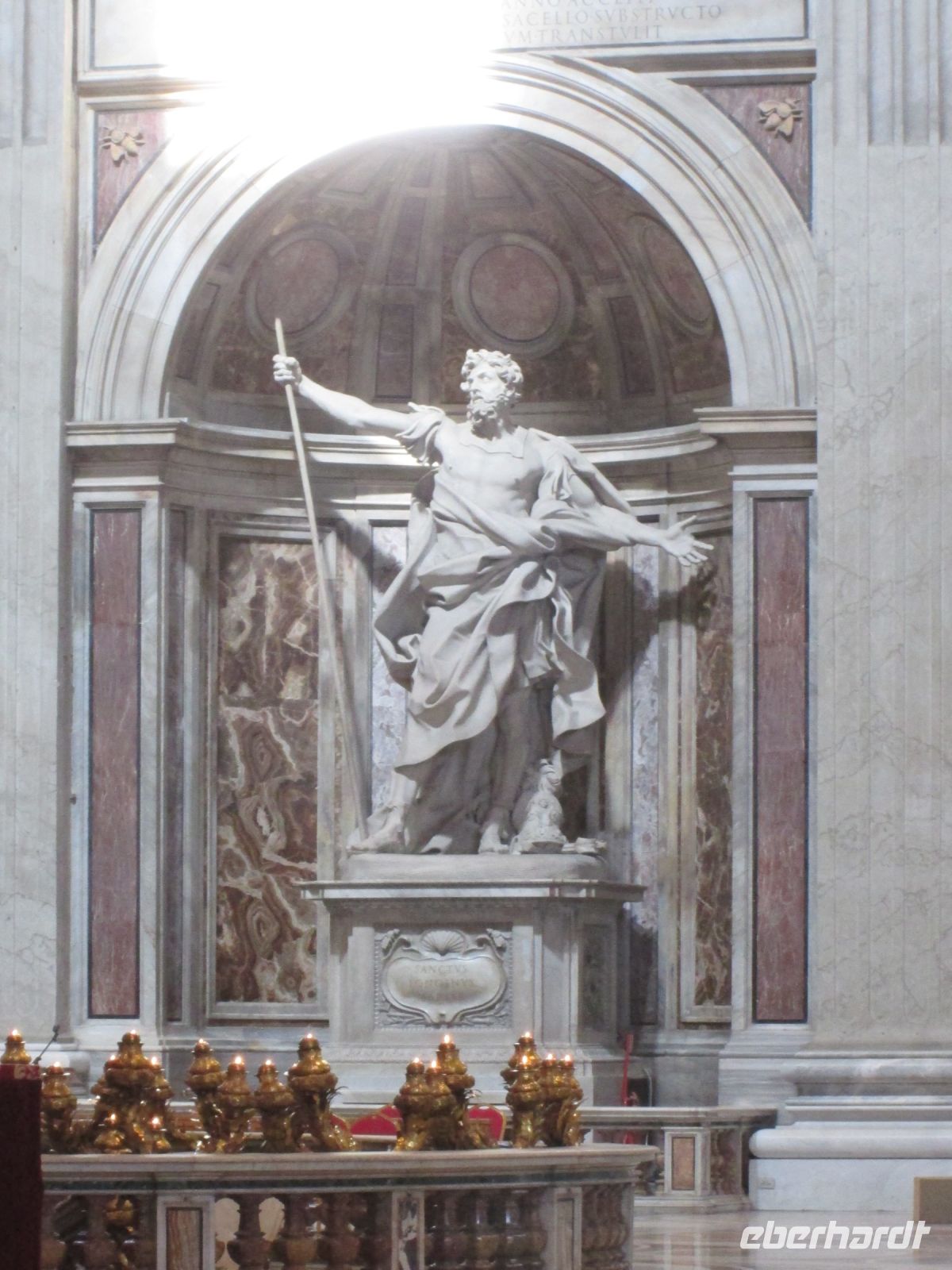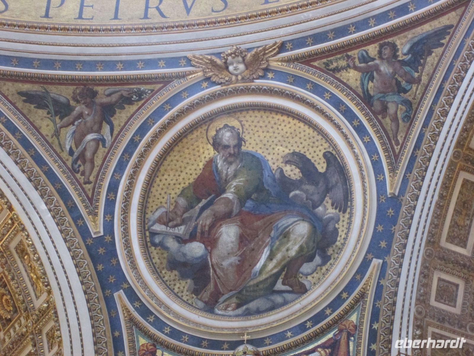 Mit einer Länge von 186,36 Metern übertrifft dieses Gotteshaus z.B. den Kölner Dom um mehr als 51 Meter. Diese Längenangaben findet man im marmornen Fußboden im Hauptschiff. Das Innere ist so großartig, dass eine kurze Beschreibung von nur einigen Kunstwerken den vielen anderen nicht gerecht werden würde. Michelangelos Pieta, die Grabmäler von Johannes Paul II. und Johannes XXIII. , der Baldachin, leider eingerüstet, die Sitzstatue von Petrus, die vielen Mosaiken oder das Innere der Kuppel von Michelangelo mit den 4 Evangelisten sind an dieser Stelle kurz erwähnt.