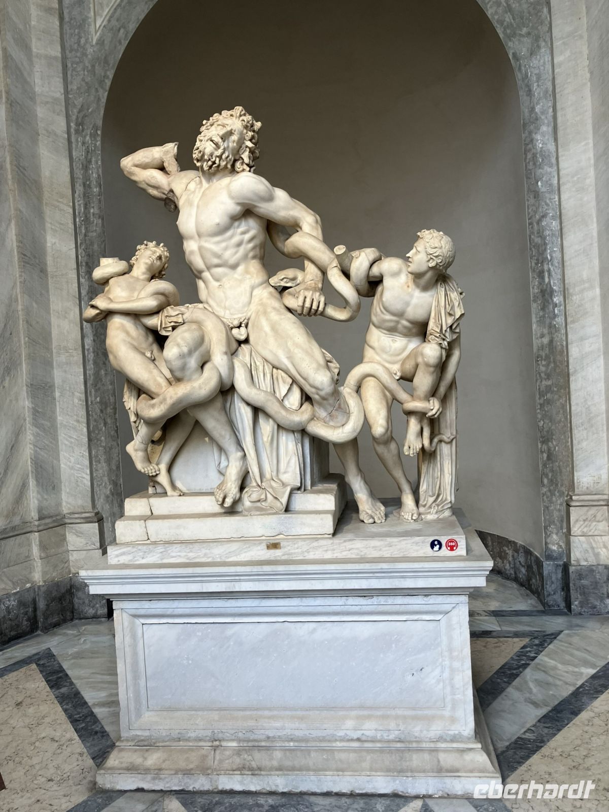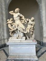 In den Vatikanischen Museen müssen wir uns daran gewöhnen, dass man nicht alles sehen, nicht alles aufnehmen kann. Hier ist der Mut zur Lücke gefragt. Keine näheren Erläuterungen in den etruskischn Säälen, dafür ausreichend Zeit zum Staunen bei der Laokoon-Gruppe, den Gobelins aus Brüssel oder dem langen Korridor mit den geographischen Karten Italiens. Saal für Saal schieben wir uns vorwärts bis zur Sixtinischen Kapelle. Die Reproduktionen von Michelangelos Bildern gibt es überall, man kennt die Szenen und ist doch überwältigt und voooer Andacht. Hie sehen wir das original und es ist eindrucksvoller, überwältigender und bewegender als die Kopien, die man sogar auch auf T- Thirts oder Kaffeebechern sieht.