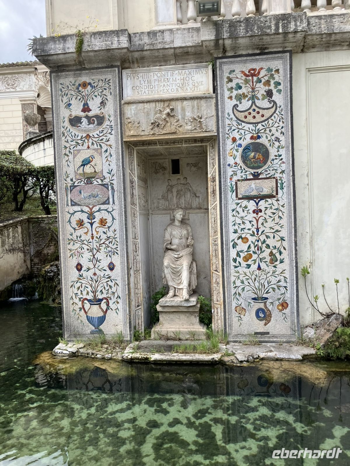 Auch im Regen beeindrucken uns die vier Ströme am Brunnen von Bernini auf der Piazza Navona und dazu die Geschichte von Donna Olimpia Pamphilii, die bei der Entscheidung, wer den Aftrag für den Brunnen erhalten solle, ein gewichtiges Wörtchen mitzureden hatte.