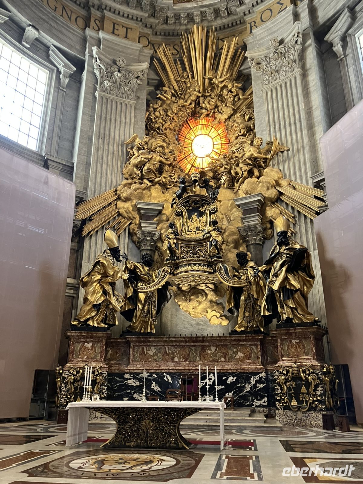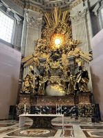 Nicht weniger eindrucksvoll die Basilika, der Petersdom, der mit seiner Größe überwältigt. Viele Pilgergruppen sind unterwegs, um im heiligen Jahr, in Rom zu sein. Sie tragen Kreuze und treten betend durch die Heilige Pforte in die Kirche. Es finden Andachten und Gottesdienste statt und während wir die Pieta Michelangelos, die Grabmale der Päpste, die Architektur und die Größe ds Baldachins bestaunen, sind wir vom Gesang und den gebeten der Pilger begleitet.