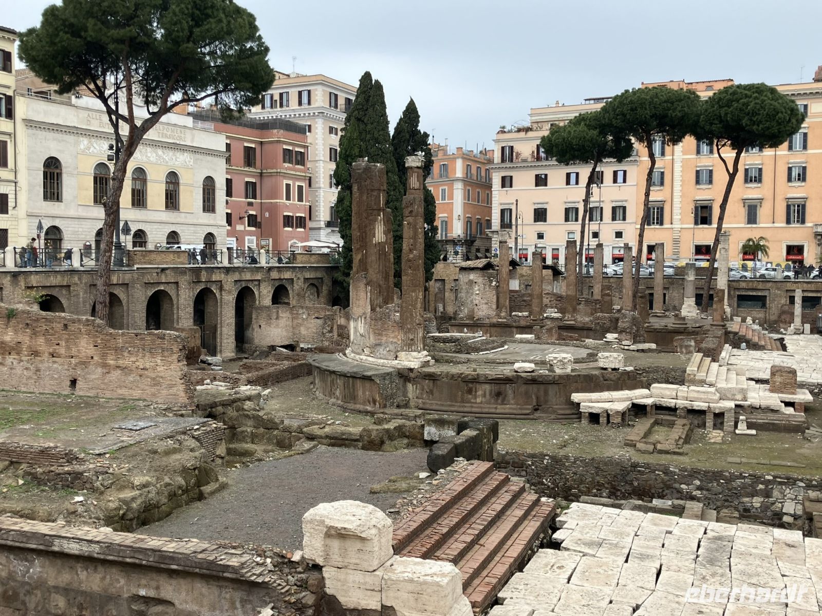 Um Rom kennen zu lernen, reicht es nicht, nur die Sehenswürdigkeiten zu besichtigen. Es gehört auch die Erfahrung dazu, mit einer der Metriolinien oder einem der Busse unterwegs zu sein. Vorsicht vor Taschendieben ist geboten, denn gerade zu den Stoßzeiten sind Busse und Bahnen heillos überfüllt und es braucht Ellenbogen, um rein zu kommen. Wir haben Glück, der Bus Nummer 23, der am Tiber entlang führt, ist nur mäßig besetzt. Heute ist unse erster Stopp am Largo di Torre Argentina, einem Platz, der in den 20 Jahren des vergangenen Jahrhunderts bebaut werden sollte. Doch dann passierte das, was in Rom häufig geschieht. Es wurden beim Ausheben der Baugruben Tempel aus der Zeit der römischen Republik gefunden und damit übernahmen die Archäologen das Feld. Heute sind die freigelegten Tempel Anlaufstelle für viele der Katzen Roms. Sie werden hier von den "gattare" versorgt, sterilisert und gefüttert und können sich auf dem alten Gemäuern ausruhen.