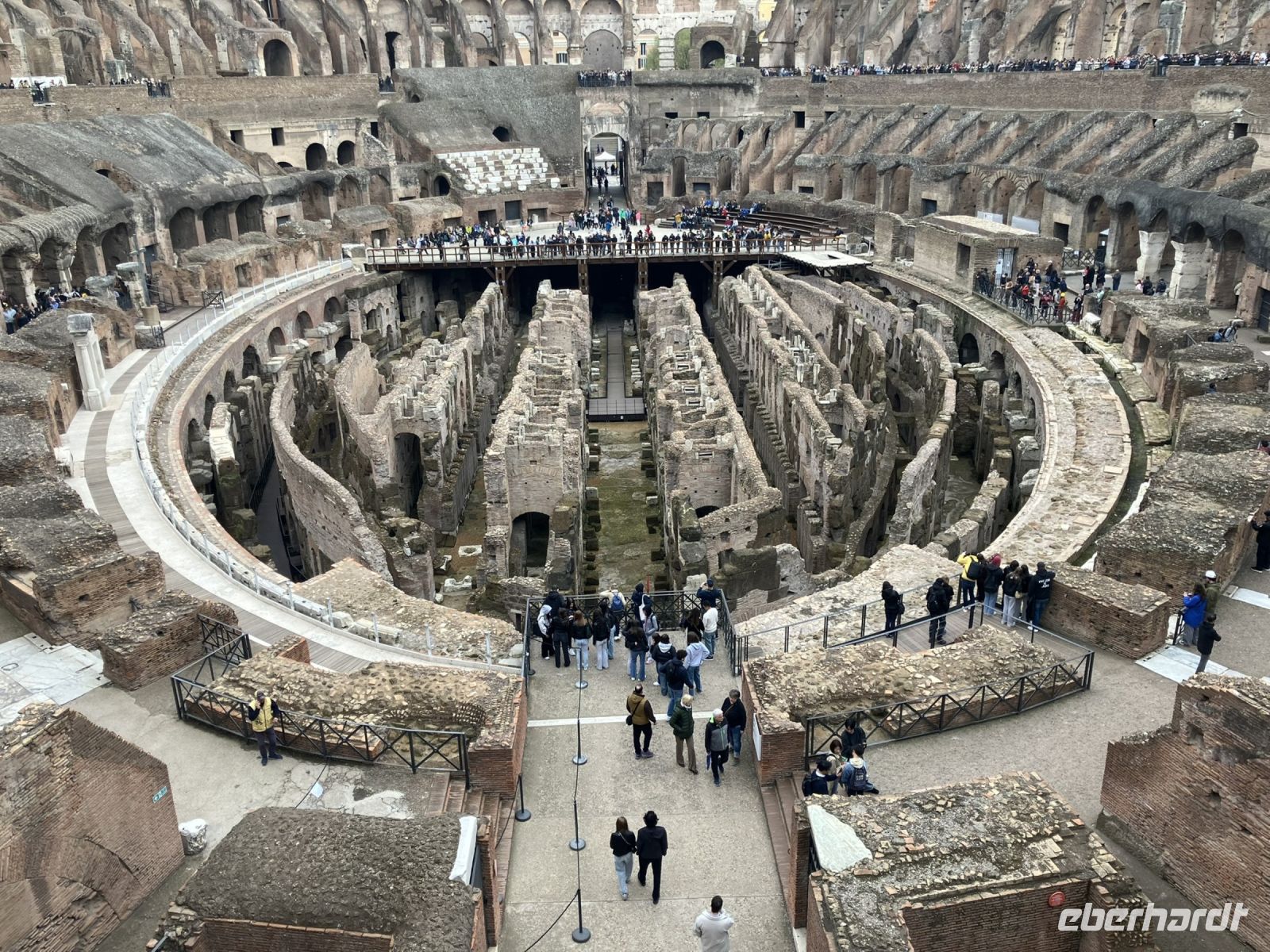 Der Höhepunkt eines Speziergangs duch das antike Rom ist natürlich ein Besuch im Colosseum, dass wie sein Name es verspricht, wirklich beeindrckend colossal ist. Hier zu stehen und auf die Mauern und ehemaligen Tiergelasse zu blicken, beeindruckt und vergegenwärtigt die Macht, aber auch die Hybris des antiken Rom, wo Menschen unter dem Jubel der Zuschauenden geopfert wurden. Eine Gesellschaft mit grandiosen Fähigkeiten, wenn auch ohne Menschlichkeit.