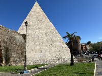 Die ersten Eindrücke von Rom und seiner Geschichte vermittelt die unweit unseres Hotels gelegene Pyramide von Cestius. Auch Grabstätten gehen nach der Mode und zu seiner Zeit ( 12 v. Chr.) war gerade Ägypten en vogue.