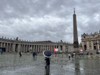 Unsere Agnieszka traf pünktlich ein – bestens gelaunt und voller Tatendrang. Kurzerhand besorgten wir für alle Regen-Capes, stiegen in die Bahn und passten unseren Plan flexibel an. Also begannen wir mit dem beeindruckenden Petersdom.