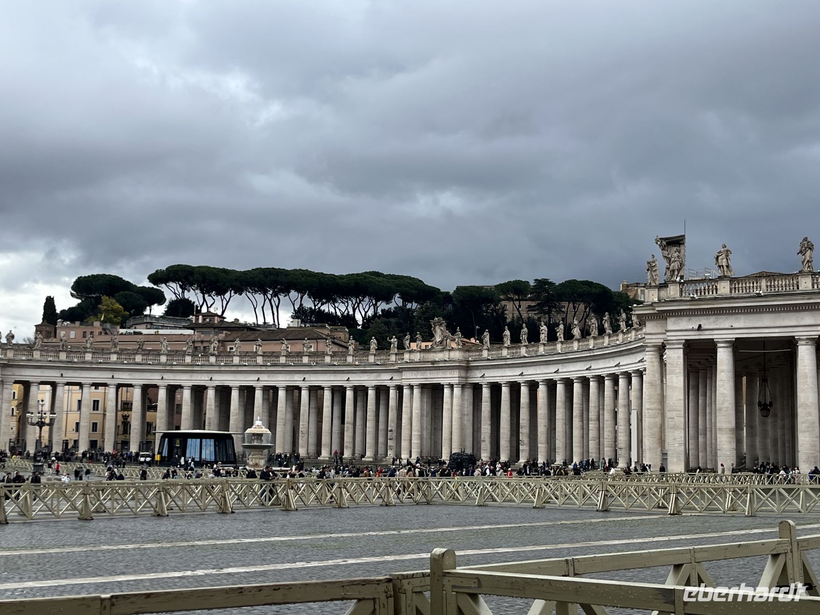 Nach dem Anstellen und dem Organisieren der Tickets für die Busfahrt im Vatikanischen Garten sagte Agnieszka: Bitte auf die linke Seite setzen (Fahrerseite)! Die rund 30-minütige Fahrt bot bereits spannende Ausblicke und interessante Hintergrundinformationen.