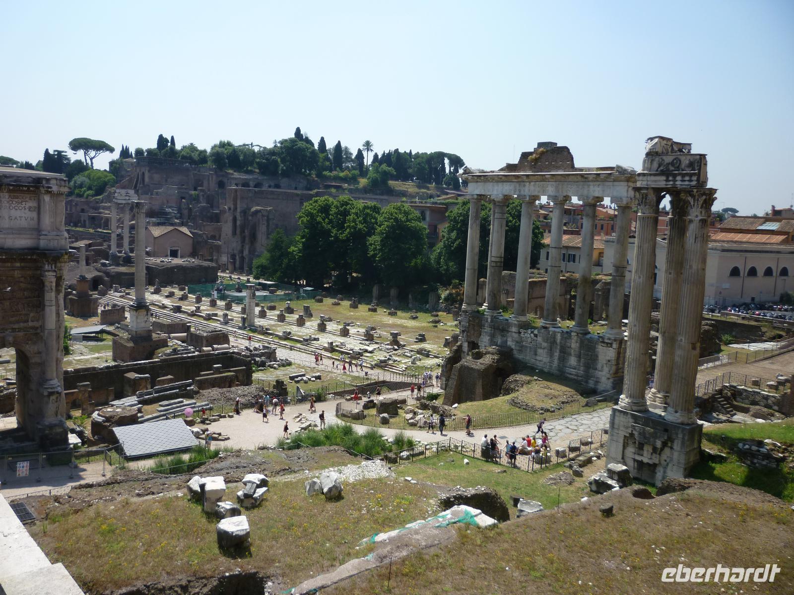 Bis zum Abflug verblieben einige Stunden, die von den Gästen unterschiedlich genutzt werden konnten. Leider waren geplante Besichtigungen der Vatikanischen Museen, der Engelsburg, sowie ein Rundgang durch Trastevere durch einen Streik der Mitarbeiter des Öffentlichen Nahverkehrs von 9 - 13 Uhr nicht mehr möglich geworden. Aber das Hotel Porta Maggiore liegt günstig, mit einigen Gästen liefen wir auf den von Bus und Bahnen „befreiten“ Straßen bis zum Forum Romanum, und das bei über 30 Grad.