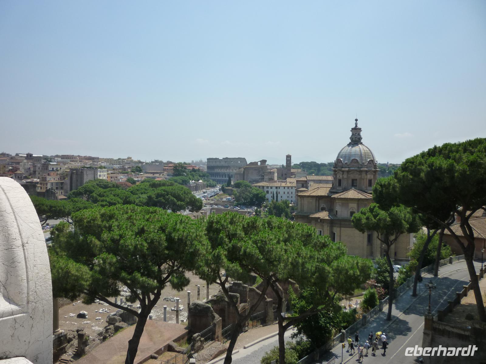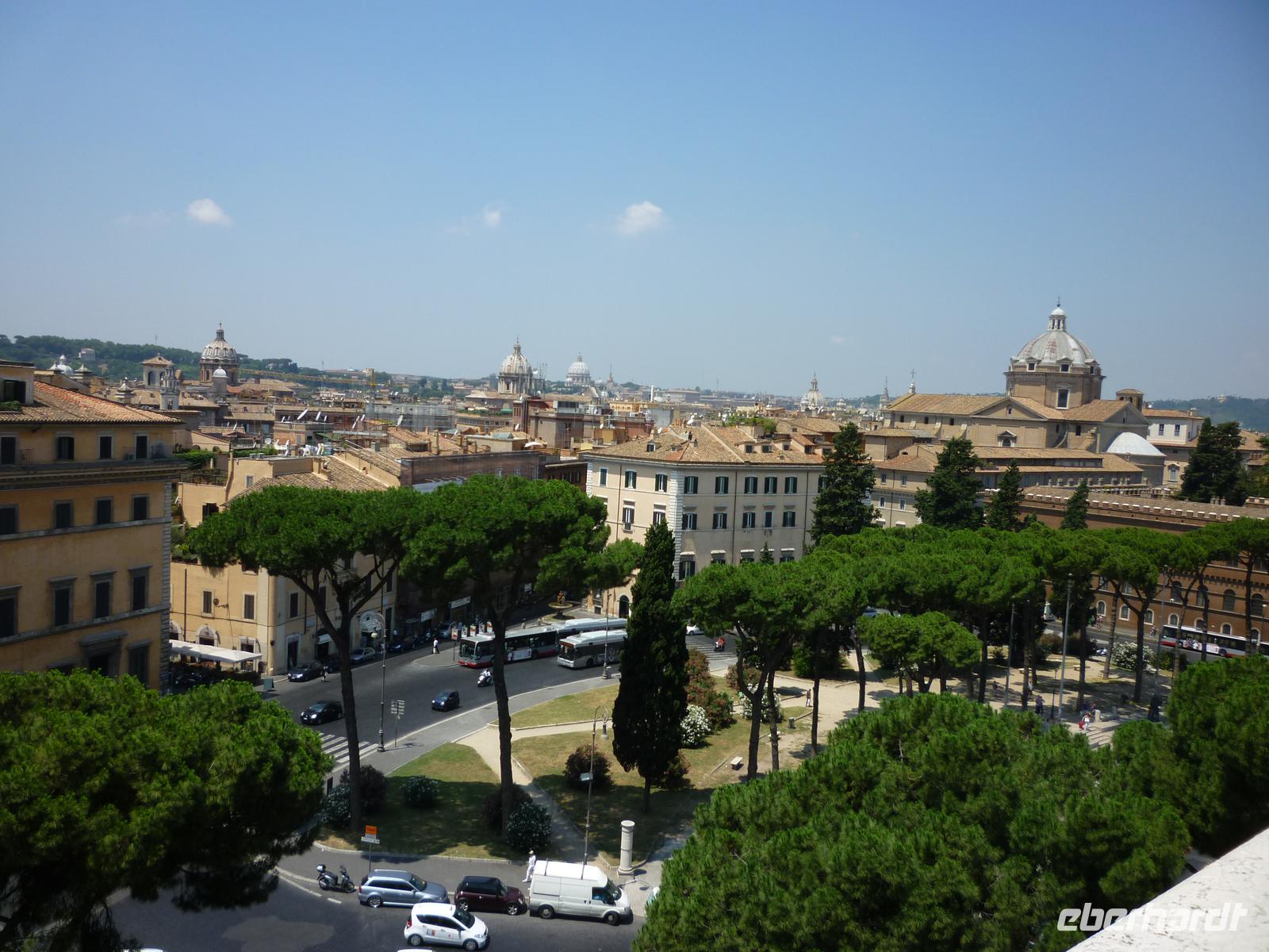 Agnieszka, unsere örtliche Reiseführerin, holte uns im Hotel ab und gemeinsam erkundeten wir an diesem Tag das antike Rom. Am Colosseum wie am Vortag beginnend, führte uns die Route über die Via dei Fori Imperiali vorbei an der Maxentius-Basilika, dem Forum Romanum, dem Trajans-Forum zum Kapitol. Dort war dann auch eine Ruhepause nötig, um diesen einmaligen, von Michelangelo konzipierten Platz zu bewundern. Jedoch viel Zeit blieb nicht, unser nächstes Ziel war das Nationaldenkmal Vittorio Emanuele II. an der Piazza Venezia. Faszinierende Blicke bieten sich hier über die Stadt, vor allem bei herrlichstem Sonnenschein und einer klaren Sicht über Kilometer.