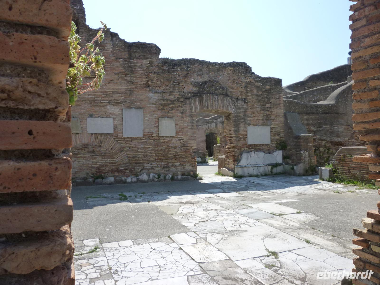 Der sich an den Besuch der Katakomben anschließende Rundgang durch Ostia ist an heißen Tagen zu empfehlen, denn durch die antike Ruinenstätte weht stets eine leichte Brise und Pinien- wie Nadelholzwälder bieten reichlich Schatten. Aber Ostia selbst ist eine Attraktion. Folgt man den alten Straßen und Gassen, schaut man in ehemalige Wohnhäuser und vor allem in die Schenke, so wird die Stadt in unseren Vorstellungen nach und nach wieder lebendig.