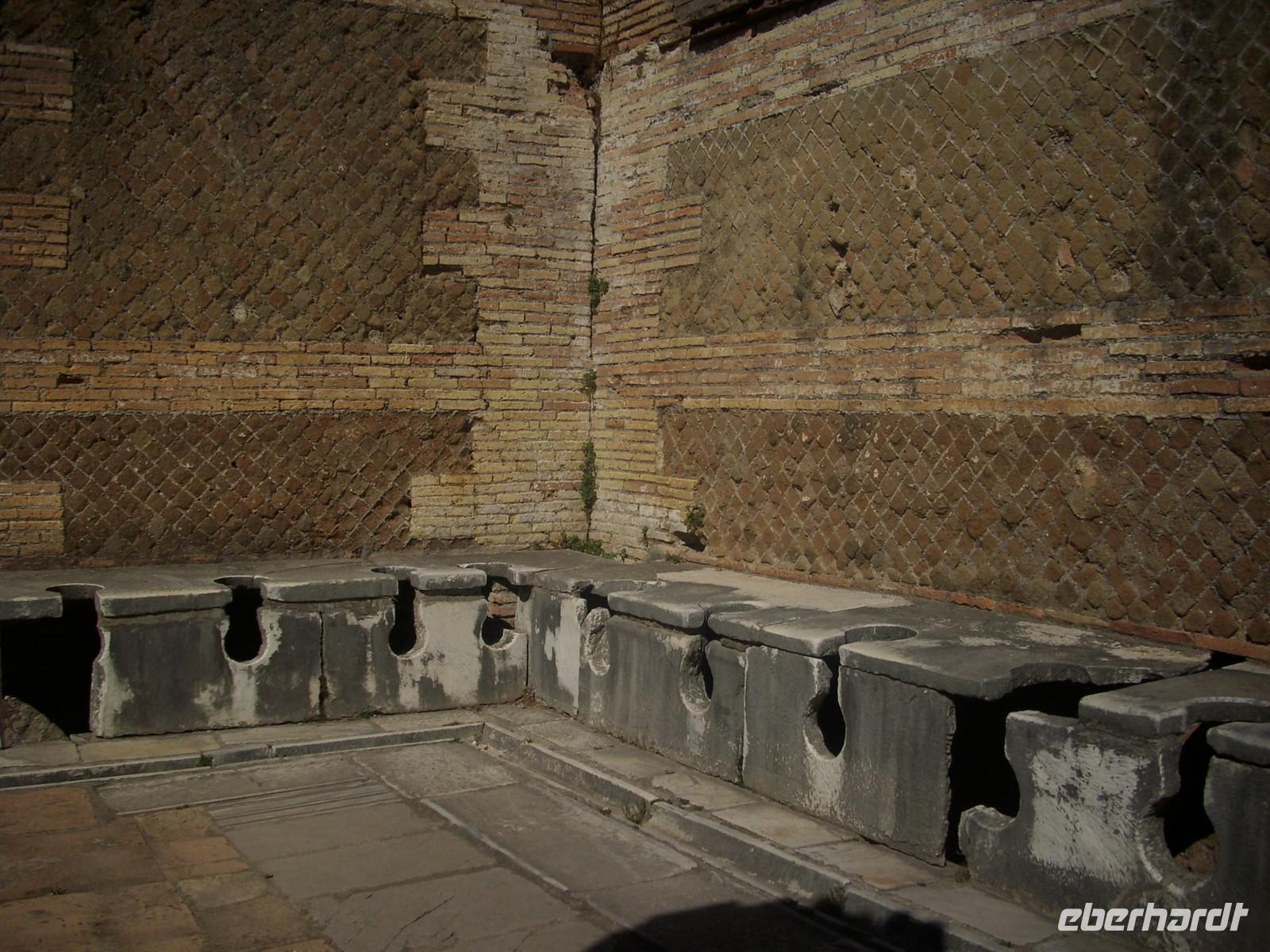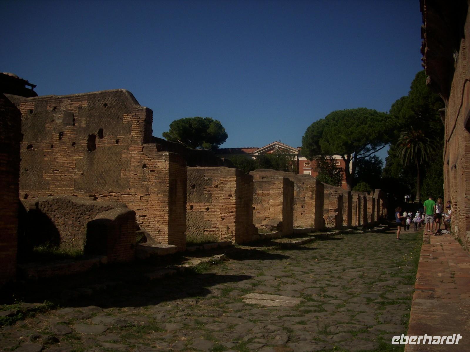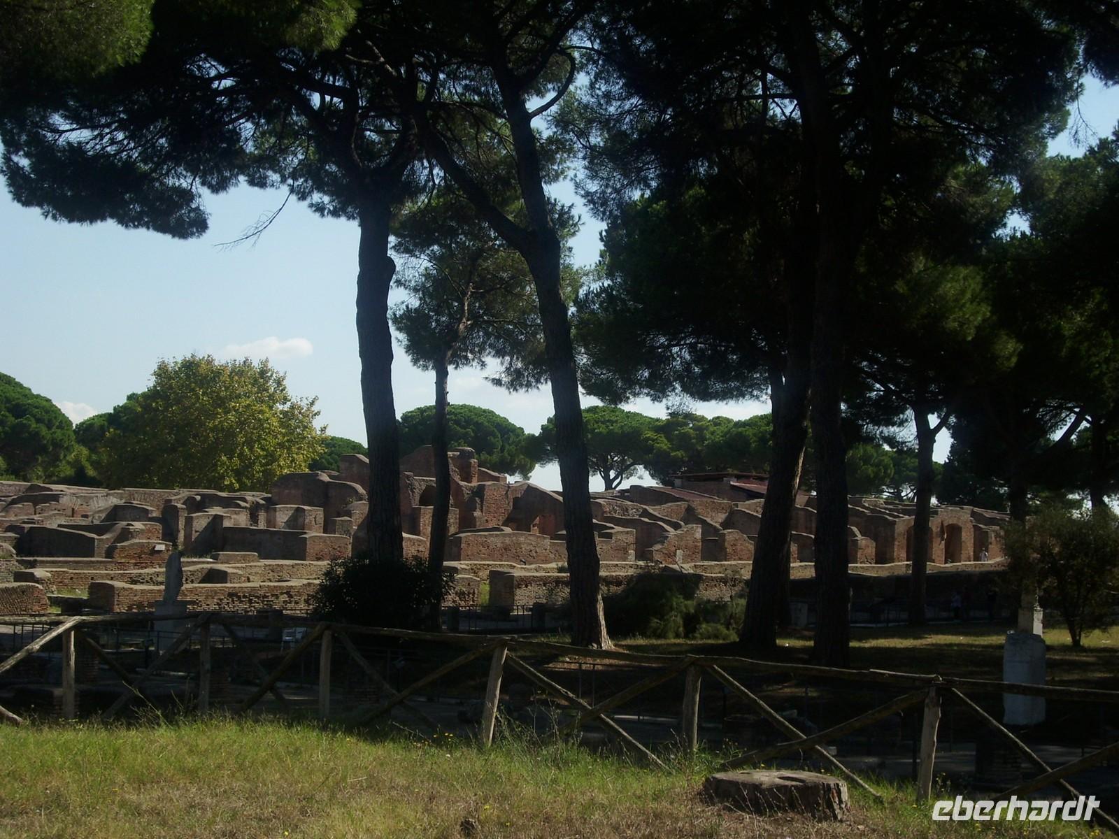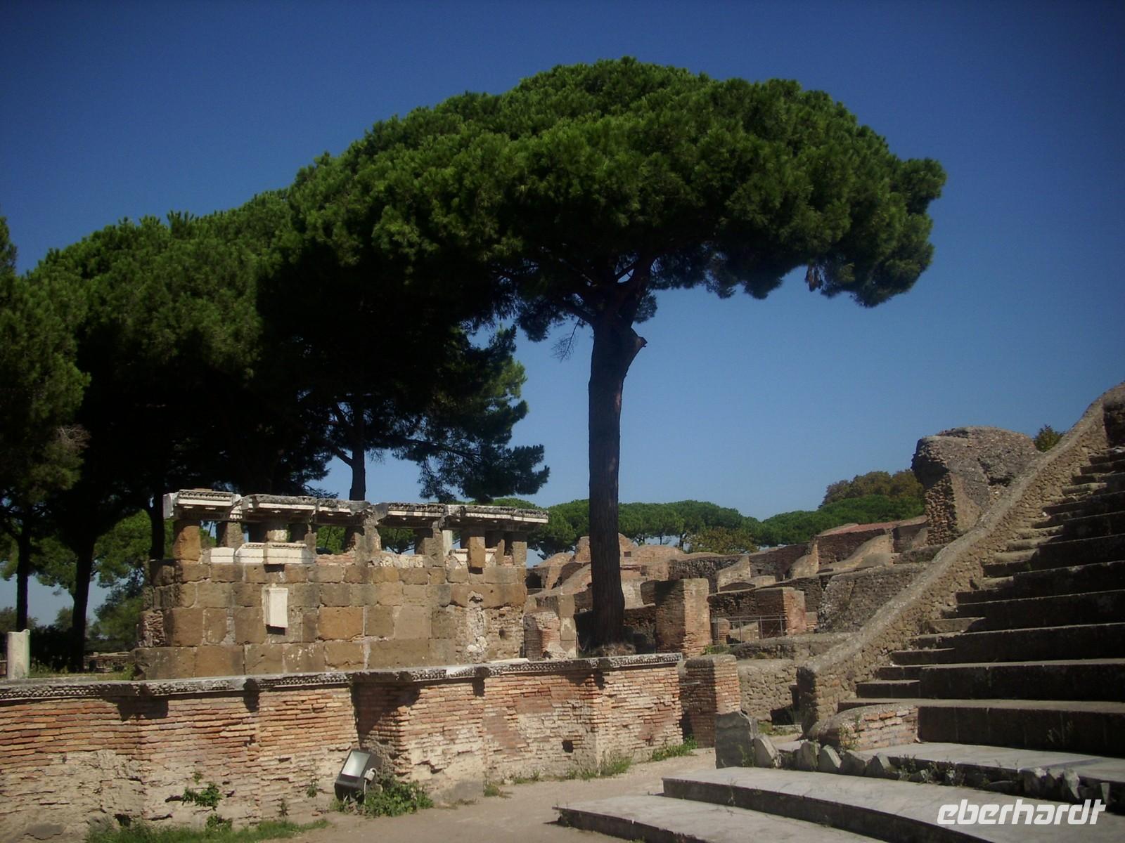 Santa Maria Maggiore, auf dem Esquilin, sie ist die größte der Marienkirchen in Rom. Nach dem "Wunder des Schnees" errichtet, wurde sie im Laufe der Jahrhunderte mehrfach umgebaut. Die Kirche besticht durch ihre prachtvolle Ausschmückung. Besonders beeindruckend für die Besucher ist die Kassettendecke, zu deren Vergoldung man das erste aus Amerika gekommene Gold verwendet hat.Ebenso bewundernswert sind die Mosaiken in der Apsis, die die Marienkrönung darstellen.Mit der Schnelllinie Bus Nummer 40 gehts nach der Besichtigung zum Petersplatz. Doch bevor wir uns in die Warteschlange einreihen, gönnen wir uns die wohlverdiente Mittagspause.Entgegen unserer Befürchtungen auf eine lange Wartezeit, um in den Petersdom hinein zu kommen, geht es doch recht zügig voran. Maria Teresa verkürzt uns schon mal die Zeit mit vielen Informationen, rund um die Erbauung der Peterskirche.Endlich drin, stürzen wir uns mit ins Getümmel. Es ist Mittwoch und es war Papstaudienz. Also Menschen über Menschen.In der ersten Kapelle, hinter einer Glasscheibe, Michelangelos Pietà, - am vierten Pfeiler das bronzene Sitzbild des heiligen Petrus, dessen rechter Fuß durch die Küsse der Gläubigen blank geworden ist, - prunkvoll gestaltete Papstgräber, wie für Papst Urban VIII, - den Papstaltar mit dem von Bernini, 29 m hohen, Bronzebaldachin mit vier gewundenen Säulen - sind nur eine kleine Auswahl an Sehenswürdigkeiten in der Peterskirche, die man im ihrem Inneren bestaunen kann.Nach Abschluss der Besichtigung bleibt noch Zeit für einen Rundgang durch die Vatikanischen Grotten.Manch Reisegast nutzt die verbleibende freie Zeit um auf die Peterskuppel zu fahren und zu steigen, um Rom von oben zu sehen. Katakomben Ostia Antica Mit einem örtlichen italienischen Reisebus geht es heute in eine der zahlreichen Katakomben von Rom.Die Domitilla Katakombe, ist eine der größten Roms, mit einer Ausdehnung von 17 km von Galerien. Zudem verfügt sie über die einzige unterirdische Basilika der heiligen Petronilla.Dem Besucher eröffnet sich ein Einblick in einen frühchristlichen Friedhof. Im Zeitraum von etwa 500 Jahren wurden in die Seitenwände etwa 150 000 Grablegungen geschlagen.Weiter geht´s an diesem Tag nach Ostia Antica.
