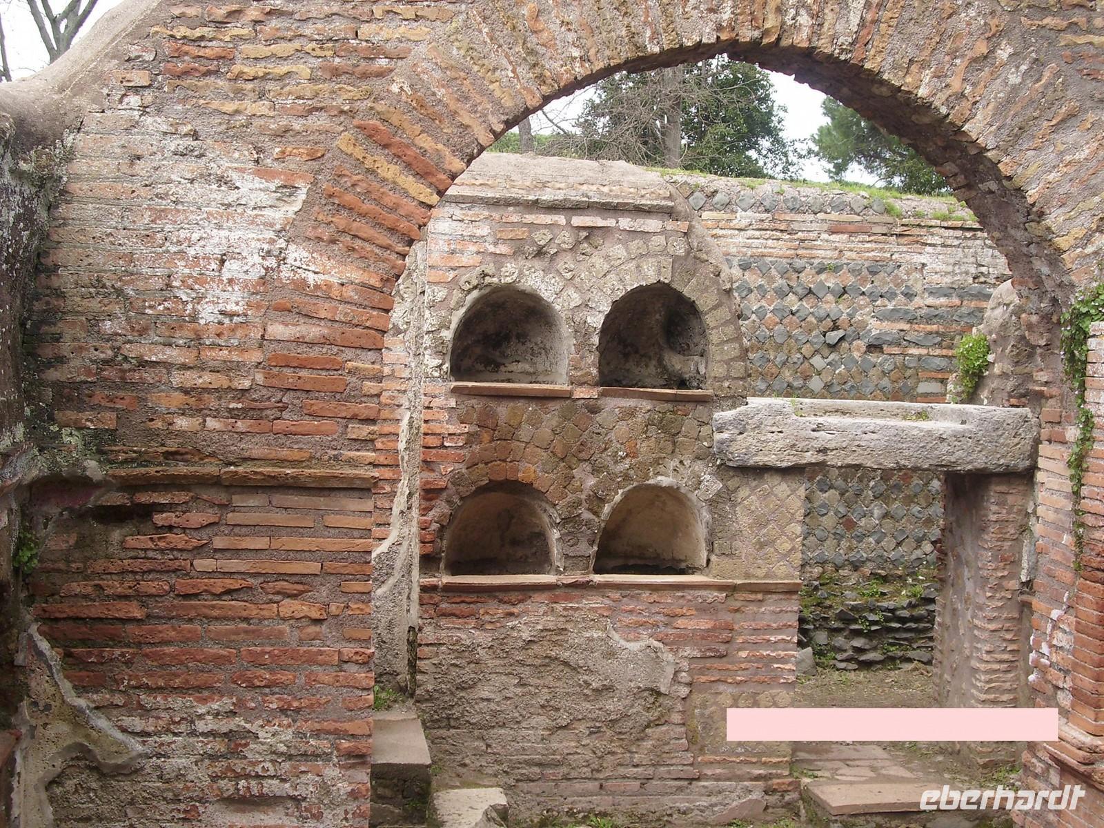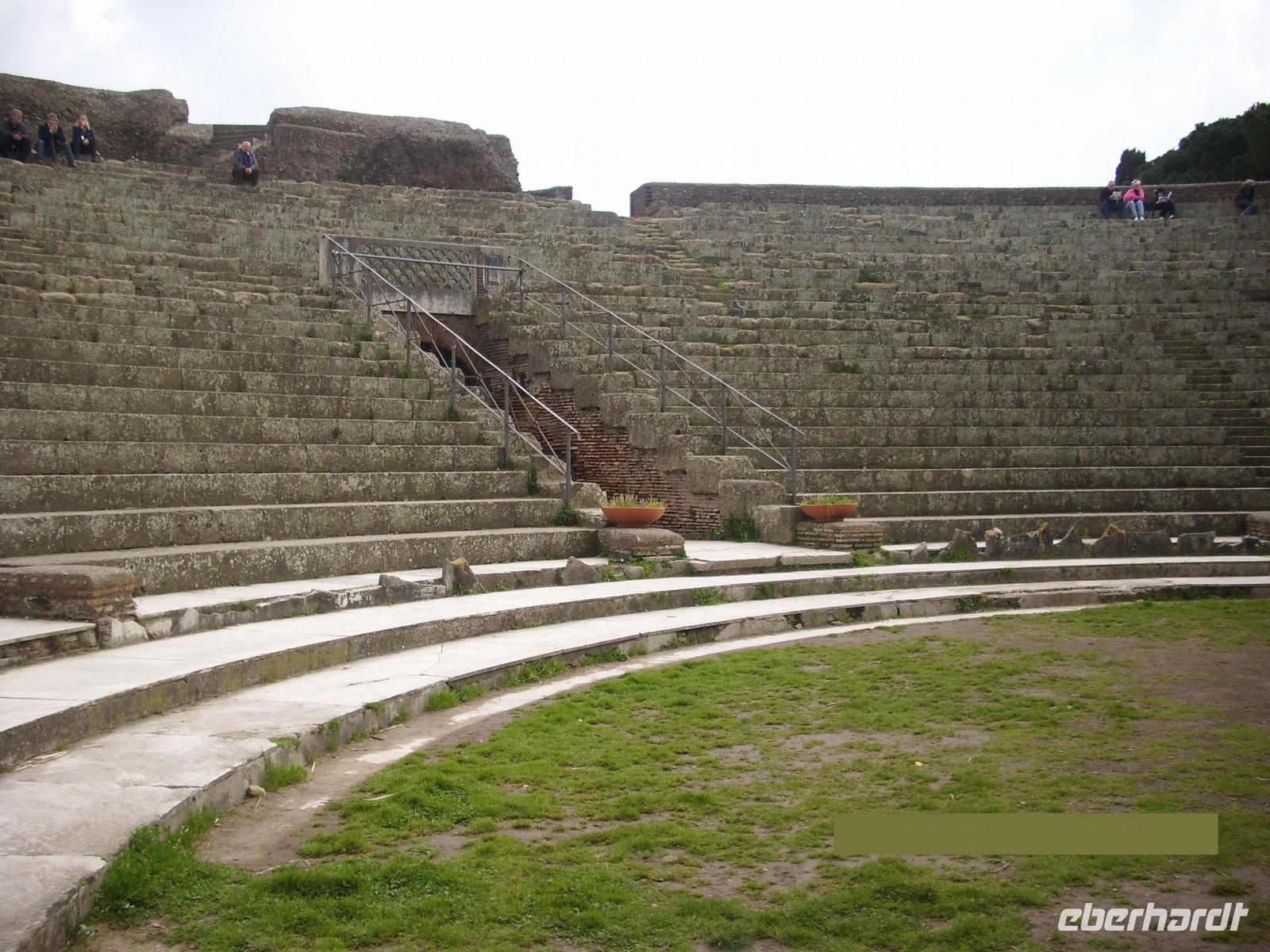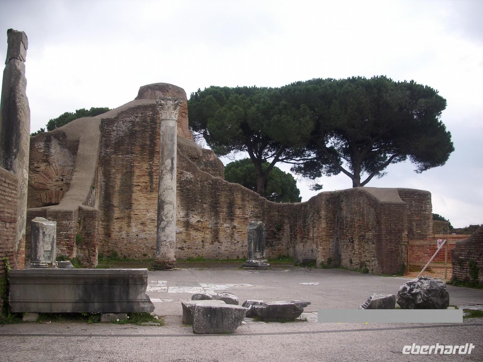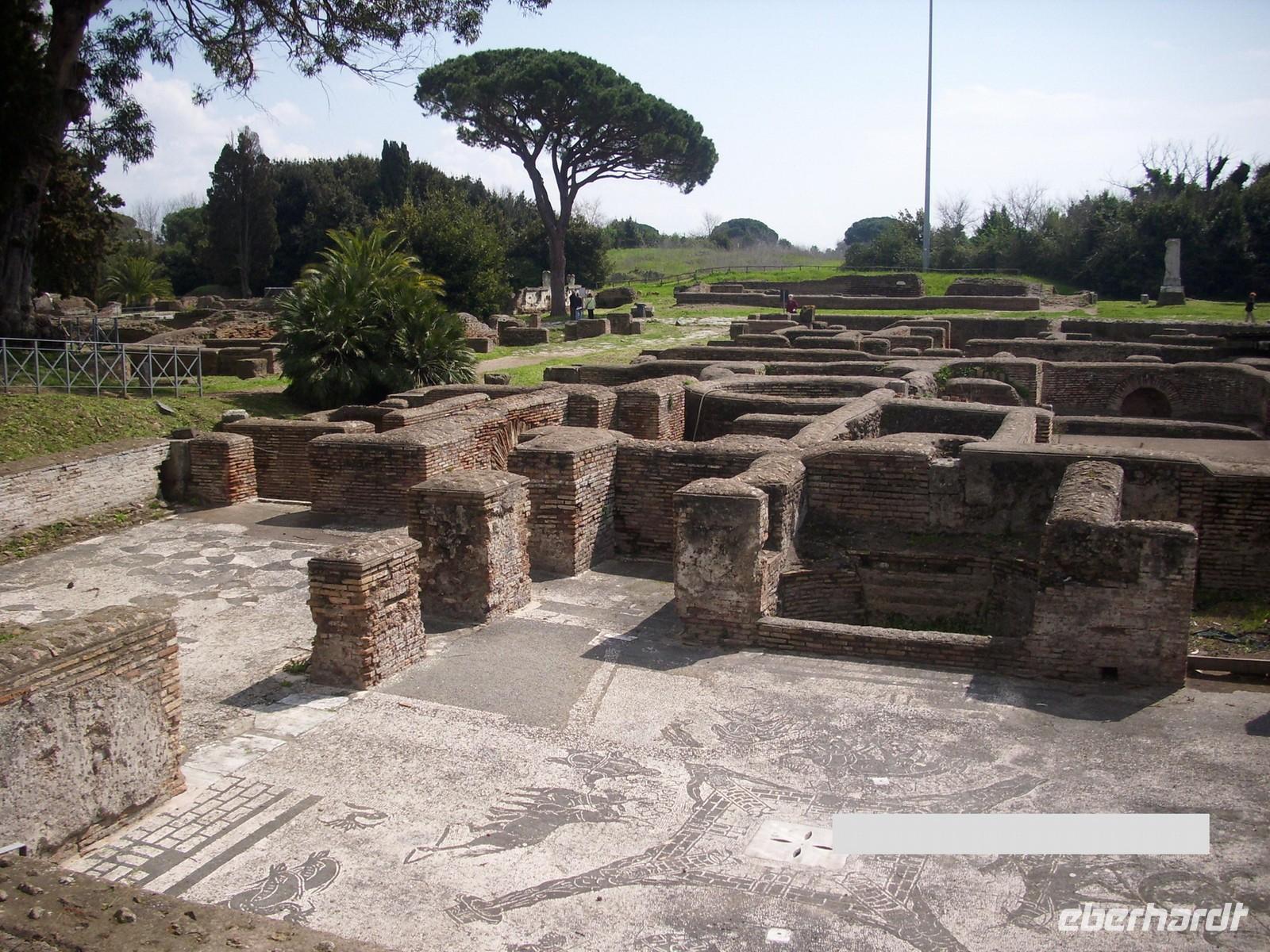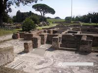 Weiter geht der Ausflug, mit einem örtlichen Reisebus, nach Ostia. Die alte Hafenstadt Roms, ist heute Ausgrabungsstätte. Gegründet im 4. Jahrhundert v. Ch. Durch die wachsende Bedeutung der römischen Flotte und des Mittelmeerhandels entwickelte sich Ostia zum wichtigsten Vorort. Bei einem Rundgang erhalten wir ein anschauliches Bild vom Leben in der antiken Stadt. Erhalten sind noch Reste von Mietshäusern, im Erdgeschoß befanden sich Ladengeschäfte. An der Decumanus Maximus, Hauptstraße des alten Ostia, befindet sich das Theater, das für etwa 2700 Personen Sitzplätze bot. Von den Sitzstufen aus hat man einen guten Blick auf die Ausgrabungen und der von Pinien gesäumte Platz war einst das Handelszentrum von Ostia.