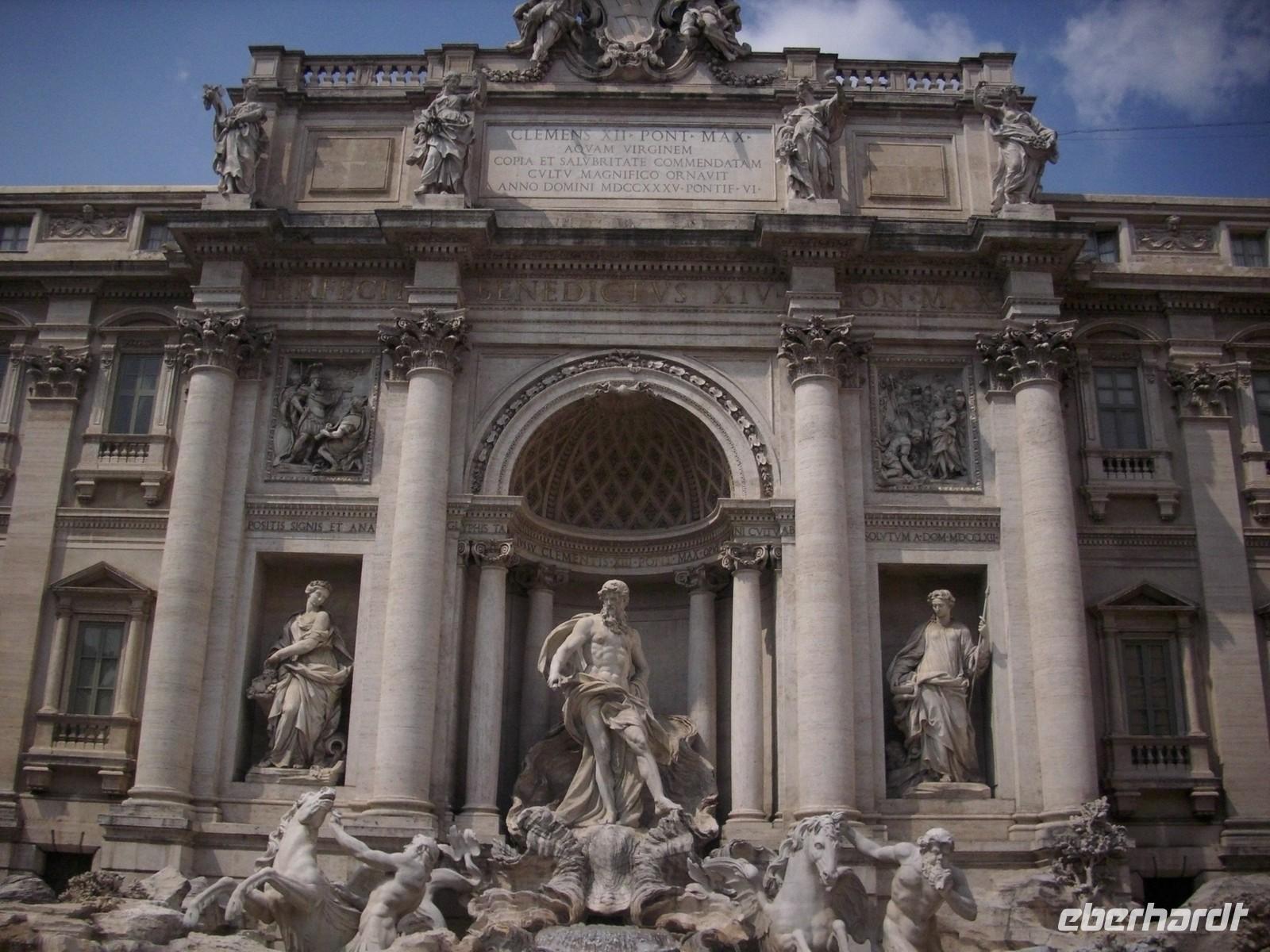 Nur wenige hunderte Meter entfernt ist der Fontana di Trevi, doch bevor wir diesen erreichen geht’s um ein paar Straßenecken zur Piazza Navona. Die barocke Arena ist noch heute der beliebteste Treffpunkt der Römer. Im Mittelpunkt der Piazza - Fontana del Quattro Fiumi - Nächstes Ziel an diesem Tag ist der monumentalste Brunnen von Rom, der Trevi-Brunnen Erbaut Mitte des 18. Jahrhunderts.