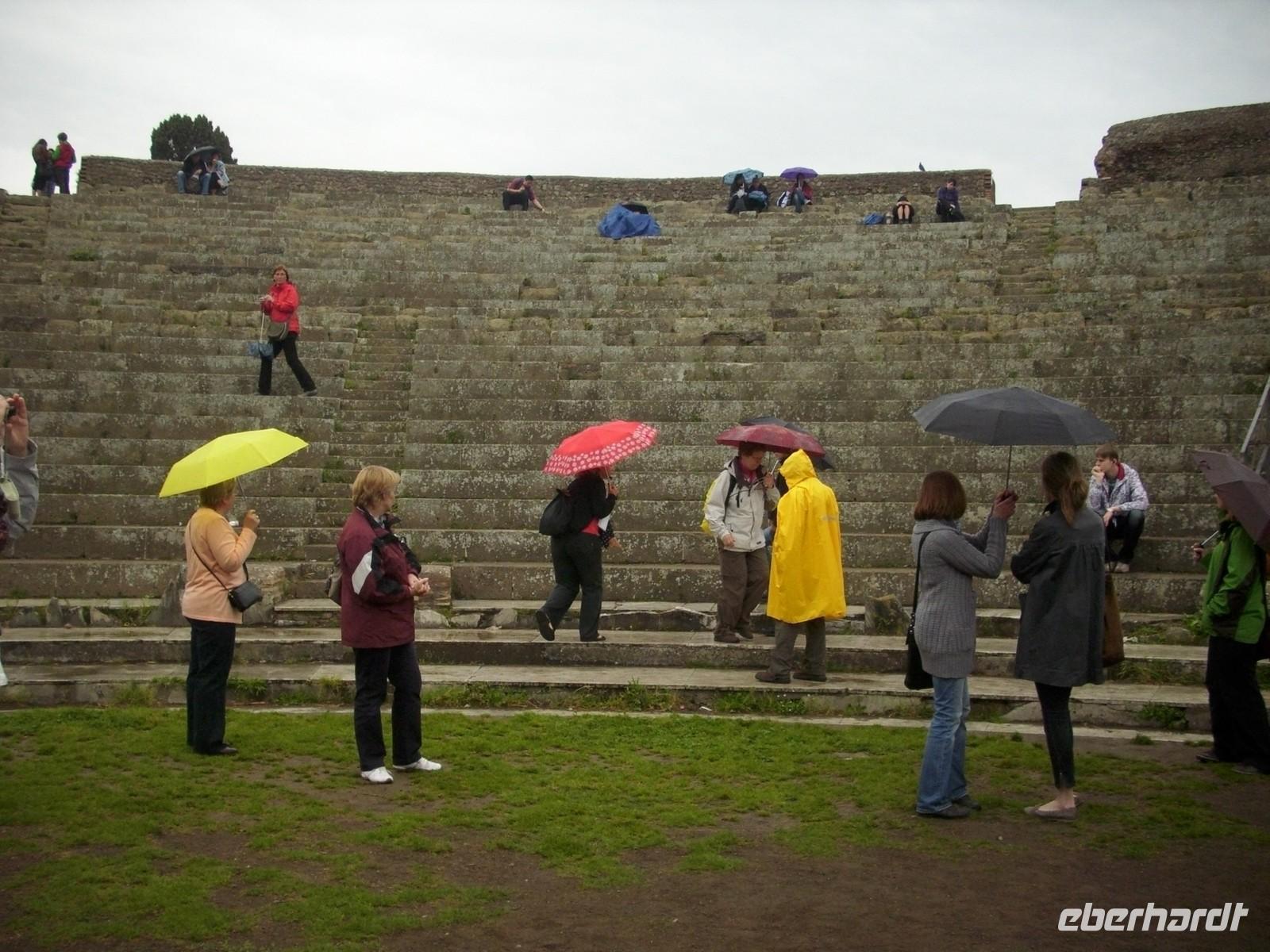 Womit wir nicht gerechnet hatten, war der plötzliche Regenguss. Im strömenden Regen reihten wir uns in die Warteschlange vor der Kirche ein. Geschafft, wir sind drin.