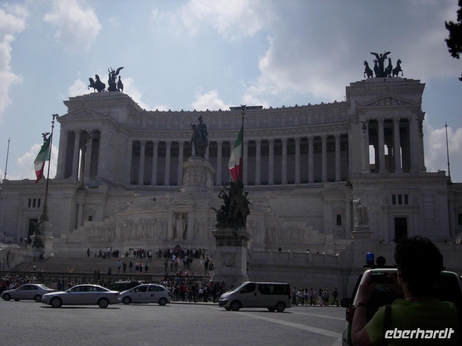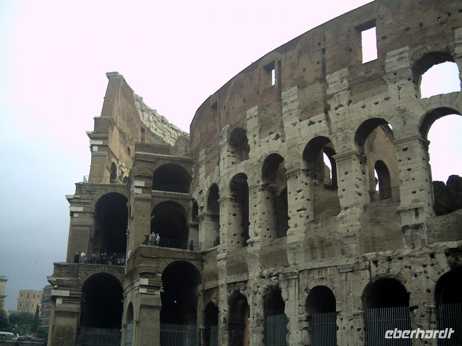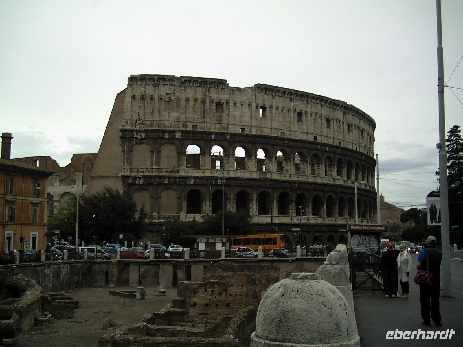 Rom zeigt sich von seiner schönsten Seite, 20 Grad Außentemperatur, blauer Himmel - Sonnenschein und wir beginnen unsere Stadtbesichtigung unter dem Aspekt - Antikes Rom.Ausgestattet mit dem Eberhardt-Reiseleiterfunk und unserer Stadtführerin Maria Teresa fahren wir vom Hotel, mit dem Bus der Linie 571, zum Coloseum. Nach eingehenden Erklärungen zur Geschichte, zum Bau und zur Funktion und der ersten Fotopause beginnen wir den Stadtrundgang auf dem Colle Oppio, mit dem Blick auf das Colloseum.Die Kirche San Pietro in Vincoli, ursprünglich erbeut im Jahr 442, ist unser nächstes Ziel. Hier liegen die Ketten, mit denen Petrus im Mamertinischen Kerker festgeschmiedet gewesen sein soll, als Reliquie. Wie alle Besucher, bestaunen wir den von Michelangelo geschaffenen „Moses„Entlang der Via dei Fori Imperiali, vorbei am Foro Romano gelangen wir auf den Kapitolshügel. Auf dem Weg dorthin hat man einen beeindruckenden Blick auf das ehemalige politische Zentrum Roms, das Forum. Die Piazza del Campidoglio, auf dem Kapitol, geschaffen nach Plänen von Michelangelo, ist einer der schönsten Plätze und war Grundlage zur Gestaltung der italienischen 50 Cent Münze.Über die Flachtreppe, gesäumt von Castor und Pollux, geht es hinab zur Piazza Venezia, an deren Südseite das Nationaldenkmal für Viktor Emanuell II. steht. Durch verwinkelte Gassen erreichen wir zur Mittagszeit den Fontana di Trevi, den monumentalsten Brunnen Roms.Mittagspause, endlich Zeit zum verschnaufen und Zeit zum Münzen werfen. Mit der rechten Hand über die linke Schulter, eine - zwei oder drei - je nachdem was man sich wünscht. Das besterhaltenste Bauwerk der römischen Antike - das Pantheon - bildet den Auftakt zum zweiten Teil der Stadtbesichtigung an diesem Tag. Gebaut wurde das Pantheon durch Kaiser Hadrian, ursprünglich allen Göttern geweiht. Seit dem Jahr 609 dient das Pantheon als katholische Kirche, geweiht der heiligen Maria, Santa Maria ad Martyres. Das Pantheon ist Grabstätte unter anderem von den Maler Raffael und von Mitgliedern der italienischen Königsfamilie. Zum Ende der Stadtführung erreichen wir über die Via del Corso die Piazza del Spagno. Die Spanische Treppe - Scalianata della Trinita dei Monti - , eine der größten Attraktionen von Rom, sie wurde im Stil des Barock angelegt und auch wir nutzen die Möglichkeit um auf den Stufen auszuruhen.