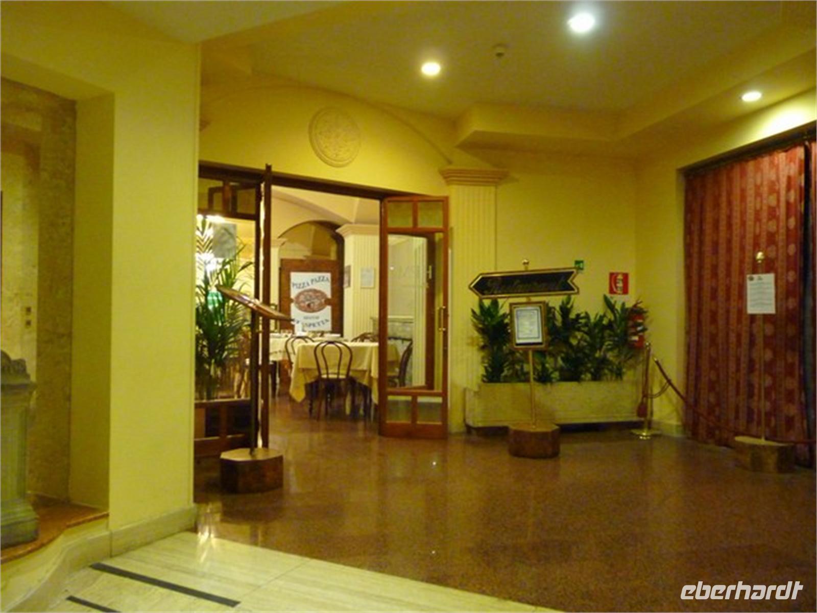 Im Restaurant waren für unsere Reisegruppe auf de rechten Seite sechs Tische reserviert und eingedeckt. Man servierte ein typisch Italienisches Menü (Pasta, Salat, gebratene Kartoffelscheiben und Ministeak) im Schnelldurchlauf.