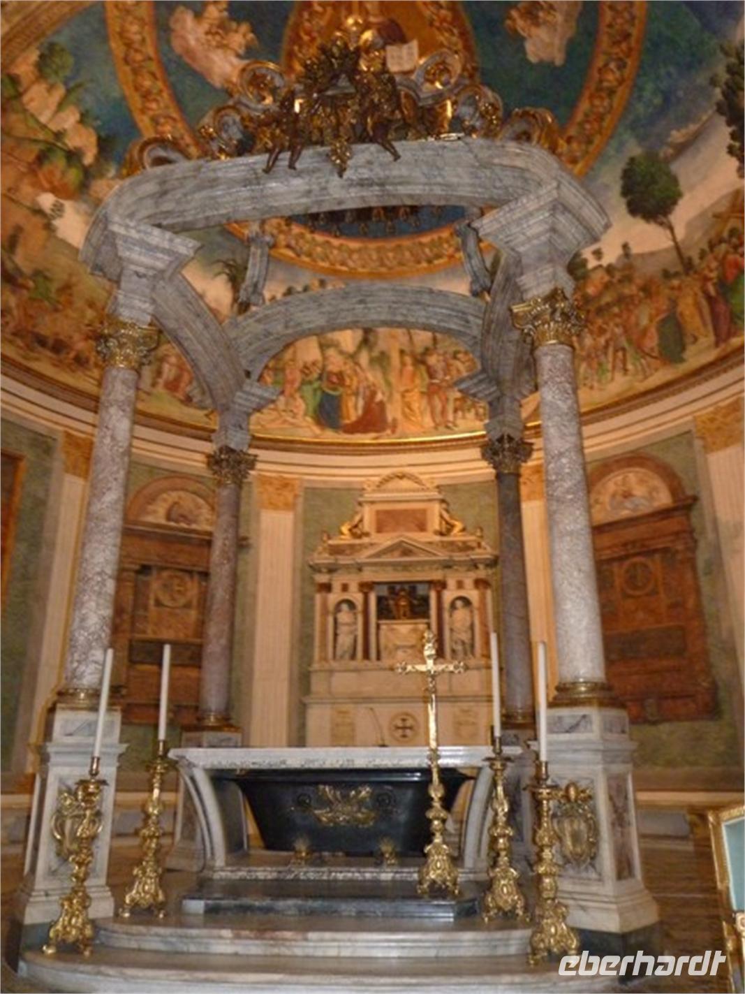 Nach der ersten Kirche Santa Croce in Gerusalemme ein Hoffnungsschimmer, der Regen hat aufgehört. Trotz allen behalten wir unsere Strategie bei….Kirchenwandern…um im Notfall ein Dach über den Kopf zu haben.