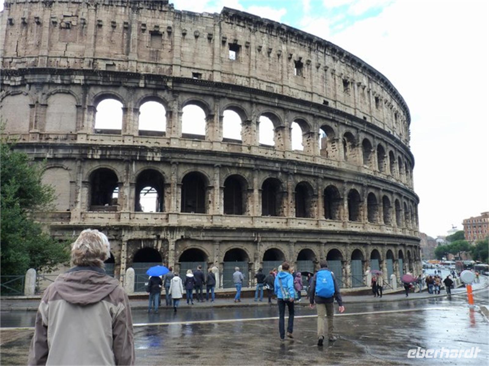 Die örtliche Reiseleiterin Marilisa startet trotz Sinnflut( das Wasser stand vor der Eingangstür) die Stadtführung „Antikes Rom“ zu Fuß. (Bus kommt nicht infrage, da Stadt total verstopft ist!)