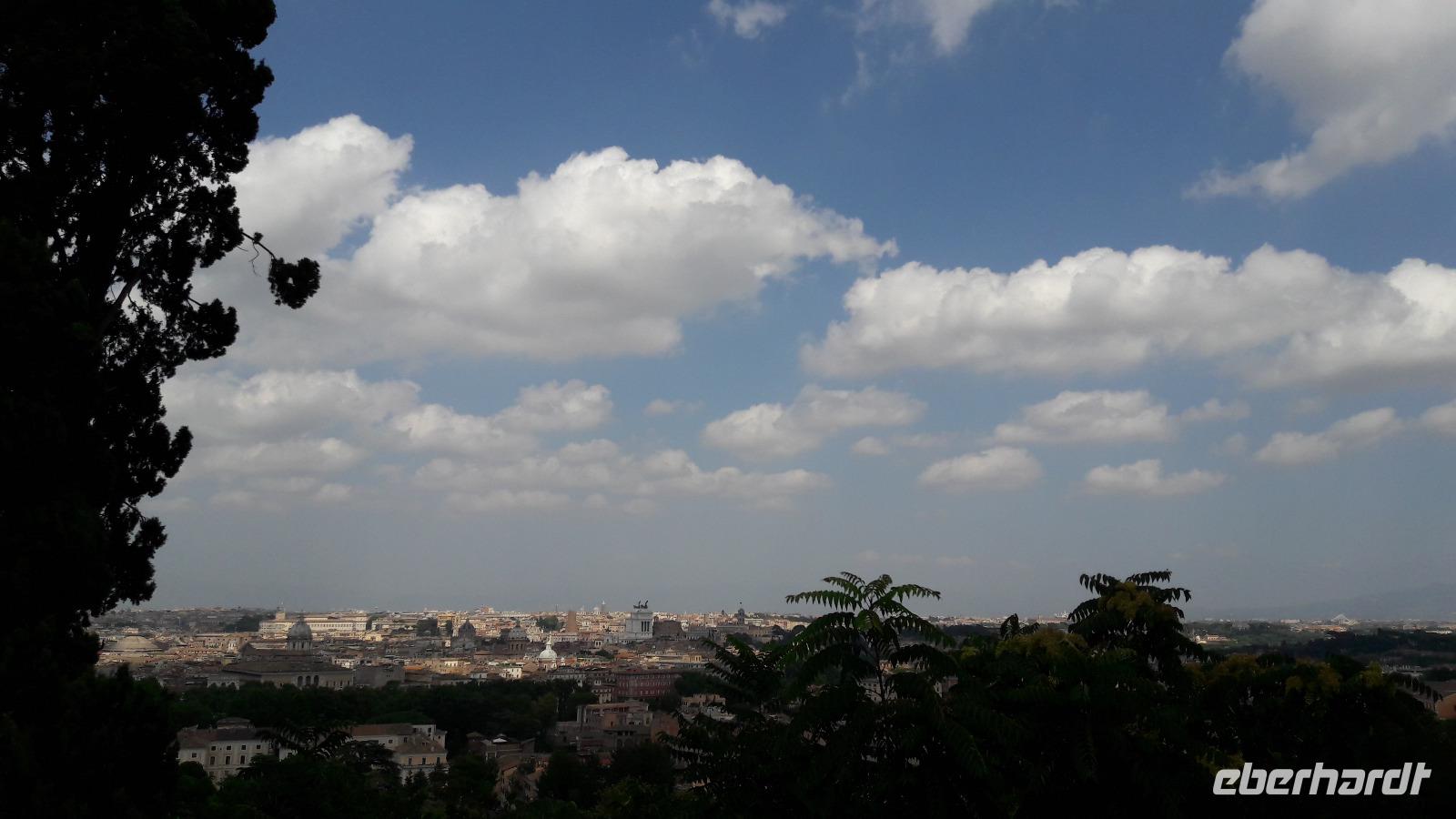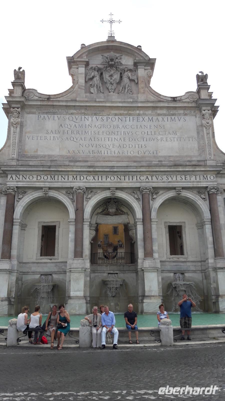 Nach einer reibungslosen und recht schnellen Flughafenabfertigung steigen wir in unseren kleinen Transferbus und lassen uns zum Grand-Hotel „Tiberio" chauffieren. Nach dem Check-in im Hotel machen wir uns ein wenig frisch und schon kurze Zeit später auf den Weg zum GIANICOLO, einem Hügel mit phantastischer Aussicht auf „Mamma Roma". Als wir jedoch auf die Straße treten, möchten wir am liebsten umkehren und uns gleich unter die kalte Dusche stellen...eine geradezu unerträgliche Hitze schlägt uns entgegen, nimmt uns den Atem.