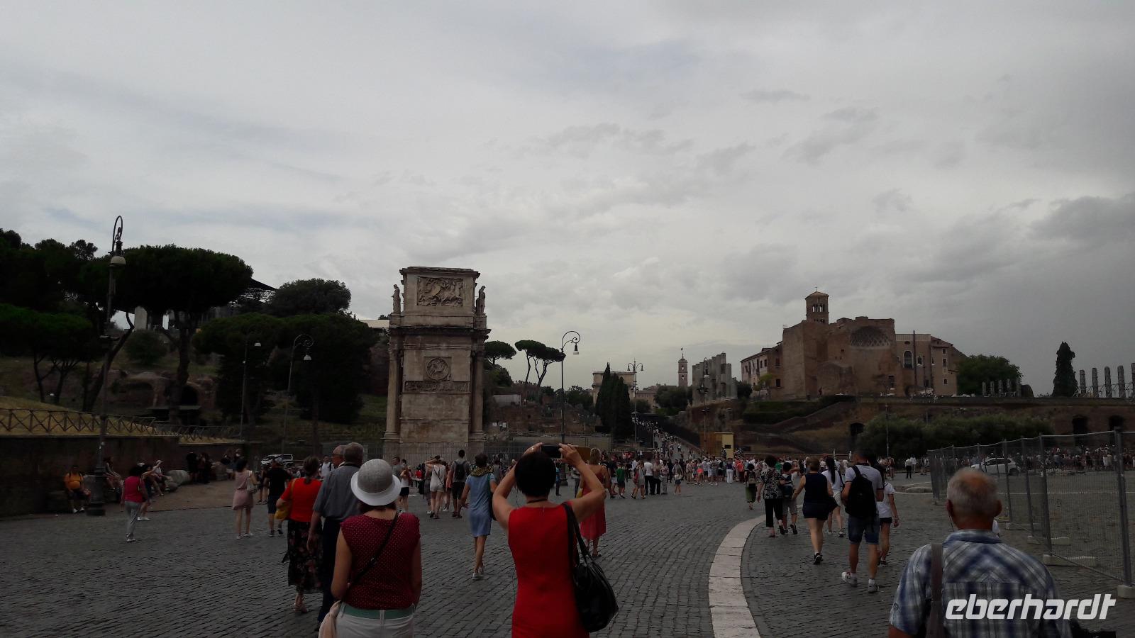 Vorbei am Konstantinbogen (er wurde zu Ehren des Kaiser Konstantin nach dessen Sieg über den tyrannischen Mitkaiser Maxentius errichtet und ihm am 25.07.315 geweiht) bummeln wir zum FORUM ROMANUM, gelegen im Herzen der „Ewigen Stadt". Das Forum