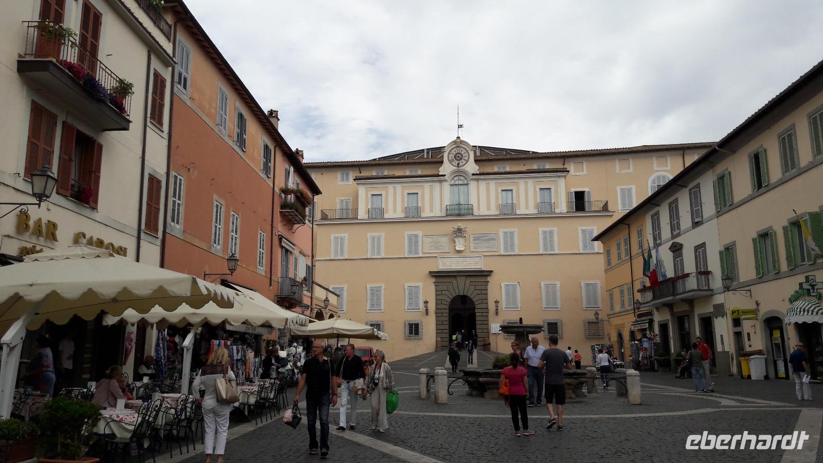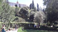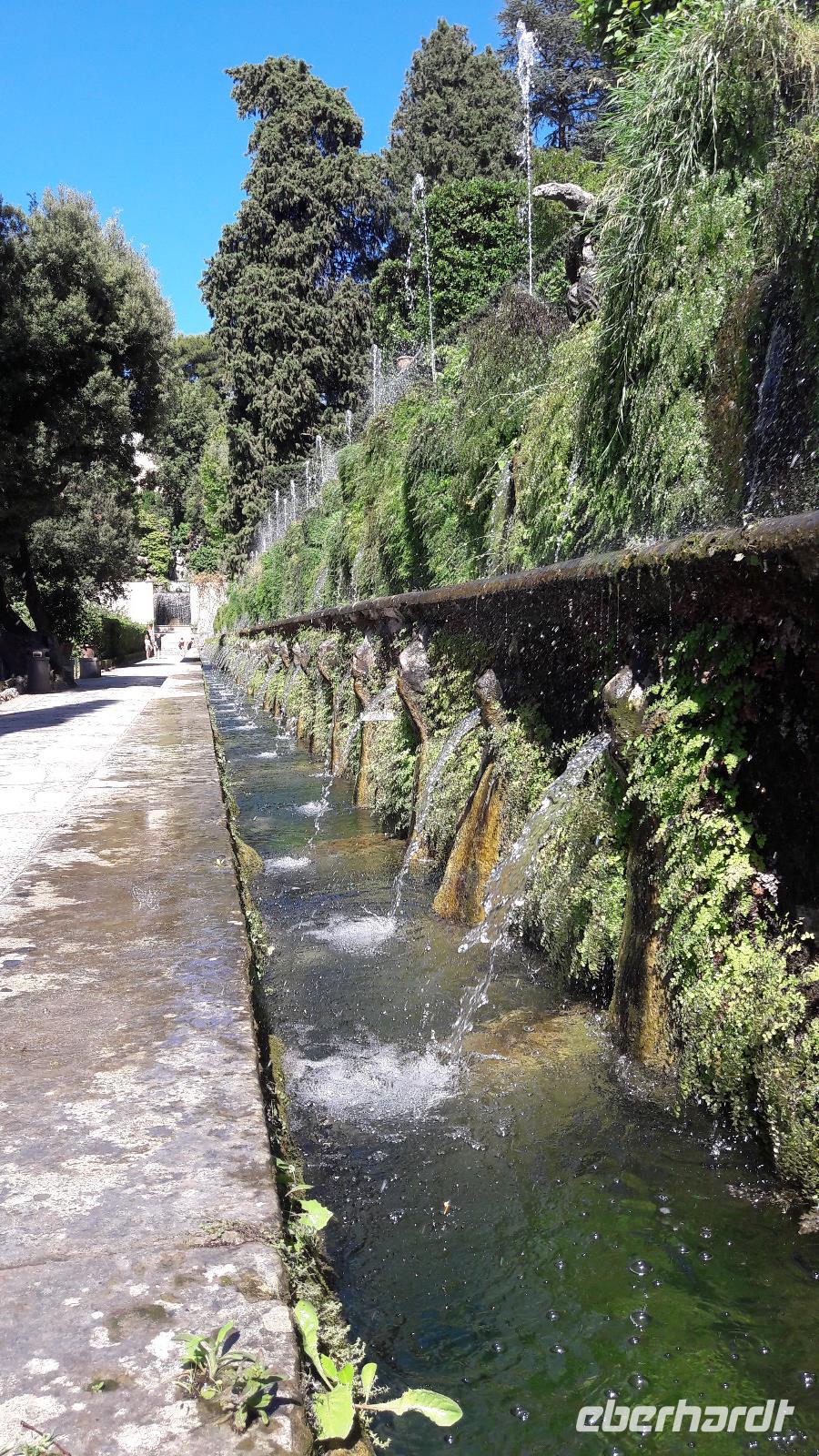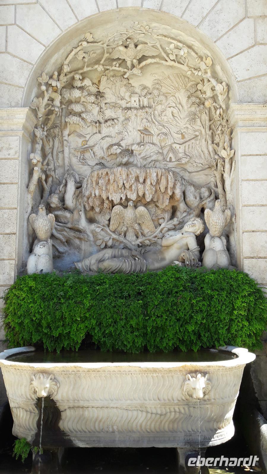 Wir freuen uns heute auf den Ausflug in die ALBANER BERGE und machen uns mit einem Kleinbus - und natürlich mit Sylvia - auf den Weg. Wir sind froh der sengenden Hitze, der Schwüle der Stadt entfliehen zu können und genießen die Fahrt am Samstagvormittag durch das noch scheinbar schlafende Rom. Unsere Fahrt führt uns auch ein Stück des Weges über die Via Appia. Zuerst steuern wir CASTEL GANDOLFO, die Sommerresidenz des Papstes, an. Die Geschichte der Päpste am Albaner See beginnt um 1600. Damals beschlagnahmte die päpstliche Finanzverwaltung das Schloss, denn der ehemalige Besitzer hatte seine Schulden nicht begleichen können. Auf Veranlassung von Papst Urban VIII. wird es zur Sommerresidenz umgebaut und bis heute kommen seine Nachfolger in den Sommermonaten hierher, um sich von der Hitze Roms zu erholen. Nur Franziskus kommt selten, sehr zum Leidwesen der Einheimischen. Da auch wir den Papst nicht antreffen, nutzen wir die Zeit für die Einnahme einer kleinen Erfrischung und für einen Bummel durch den Ort. Dabei genießen wir auch den traumhaft schönen Blick auf den Albaner See. Anschließend fahren wir zum KLOSTER GROTTAFERRATA und werden dort Zeuge einer Taufzeremonie. Nach diesem kleinen Abstecher entführt uns Sylvia nach FRASCATI. Dort wollen wir in der cantina "Il Pergolato" nicht nur den bekannten süffigen Frascati probieren, sondern auch die anderen Gaumenfreuden. Wir genießen die angebotenen Leckereien und machen uns anschließend auf den Weg nach TIVOLI. Der Ort - auf einem Hügel gelegen - war einst auf Grund seines Wassers und der Schwefelquellen ein beliebter Erholungsort der Römer. Mit gleich 2 Sehenswürdigkeiten kann Tivoli aufwarten. Zum einen mit der Villa Adriana (einst von Kaiser Hadrian angelegt) und zum anderen mit der VILLA D'ESTE, einem Park mit herrlichen Ausblicken, der an jeder Ecke eine Überraschung bereithält.