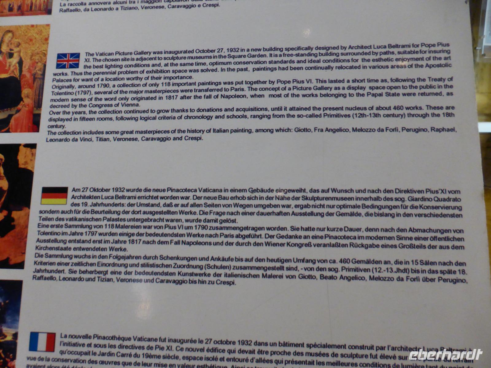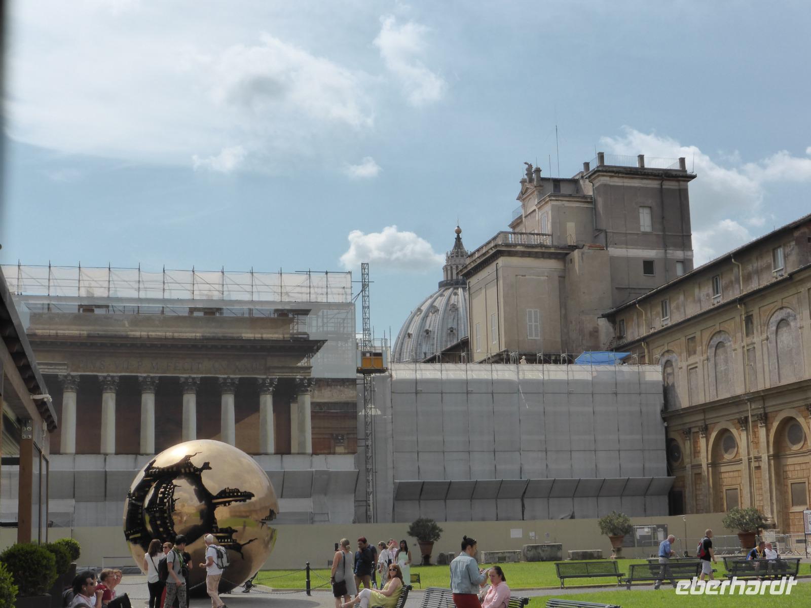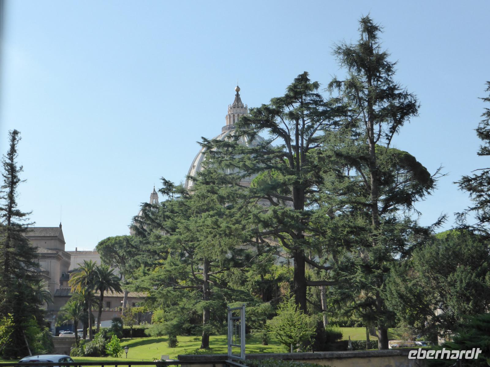 Vatikan und Petersdom sind nicht weit entfernt von unserem Hotel. Leicht zu erreichen mit dem Hotel-Shuttle oder per Pedes.Zu Beginn die doppelläufige Spiraltreppe bewundernd gehen wir durch den Garten, die Kuppel des Petersdomes zum Greifen nah, in die Ausstellungshalle mit den Fahrzeugen der Päpste aller Jahrhunderte. Sänften, Kutschen und Auto- bzw. Papamobile allesamt prächtig geputzt und aufbereitet für die Besucher.In die Pinakothek des Vatikans schreiten wir auf knarrenden Fußbodendielen durch alte Holztüren . Altehrwürdig und original. Eine besondere Ausstrahlung hat das hier.