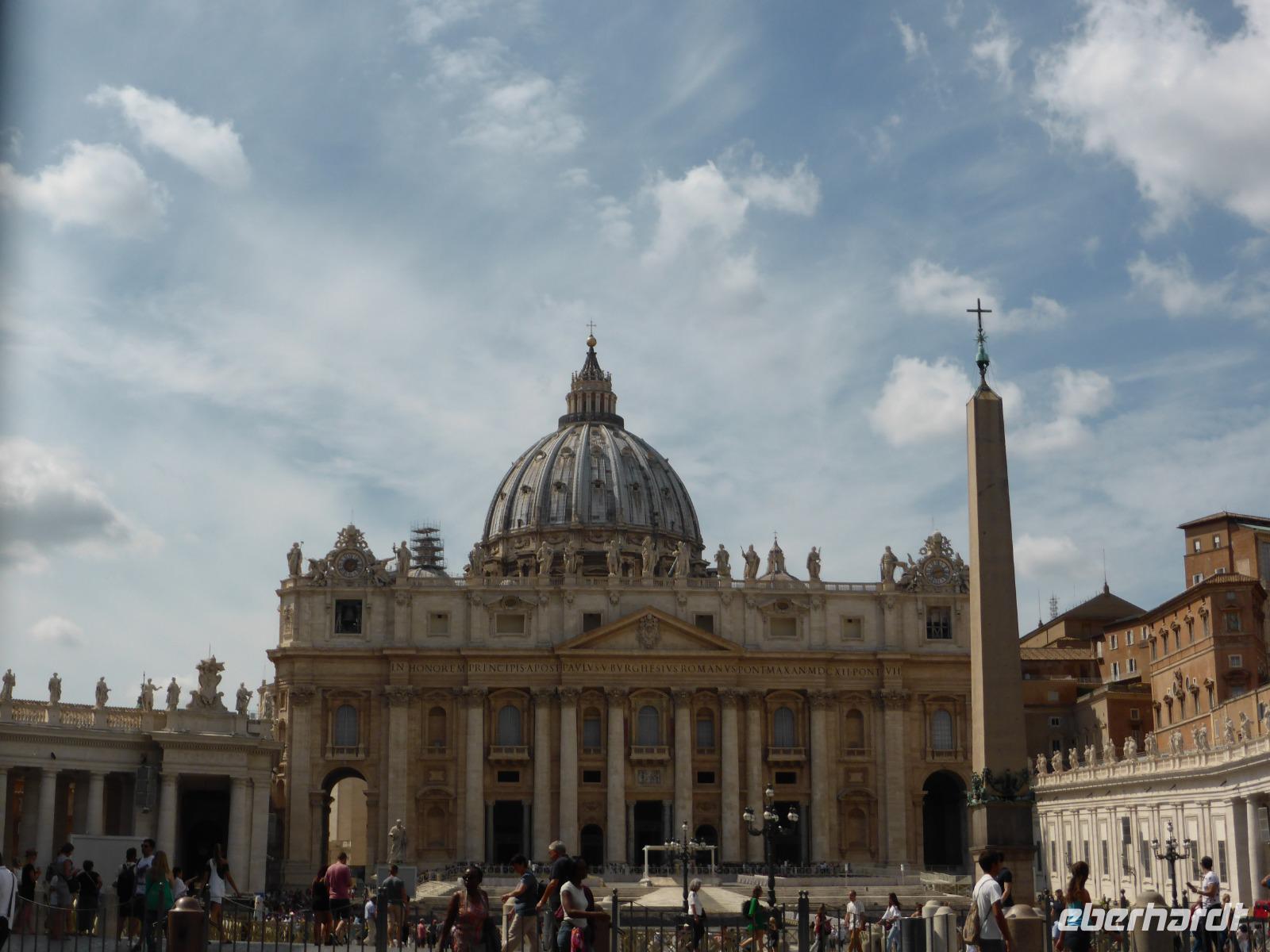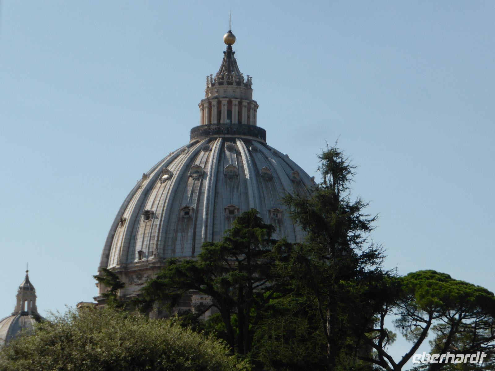 Der Vorhang zur Pieta ist geöffnet. Erfurchtsvoll betrachten wir das Kunstwerk Michelangelos. Die Größe der Kuppel macht sprachlos. Ihr Architekt, ebenfalls Michelangelo, hat sie nie vollendet gesehen. Dort oben hinein in die Kuppel kann man mit dem Fahrstuhl, nachher in der Freizeit.Anschließend schauen wir von der Terasse vor dem Petersdom auf den Petersplatz mit dem Obelisk. Der Balkon, von welchem der Pabst zu Ostern den Segen spricht, über uns. Dort die Fenster der ehemaligen Pabstwohnung, die gerade unbewohnt ist.Nun , am Nachmittag haben die Gäste Zeit, ausgehend von den vielen Anregungen ihren individuellen Wünschen nachzugehen.