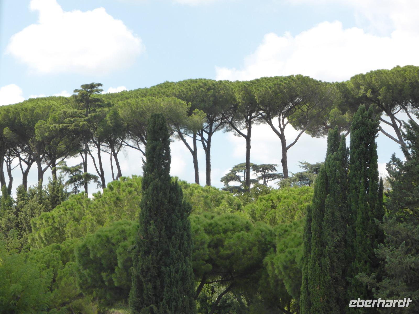 Heute fahren wir in die Albaner Berge, in die Sommerfrische der Römer ehemals und heutzutage. Vorbei an der Villa Borghese, dem Denkmal Goethes und Resten der Stadtmauer fahren wir aus der Stadt hinaus gen Osten.Die Römer früher nannten sie Casteller Berge, heute heißen sie Albaner Berge, benannt nach dem Ort Albano.Der Weinanbau nimmt zu. Häufiger auch fahren wir an Olivenrainen vorbei. Passieren kleine Ortschaften in der hügeligen Landschaft. Es muss ein beschaulicheres Leben sein, das man hier lebt.