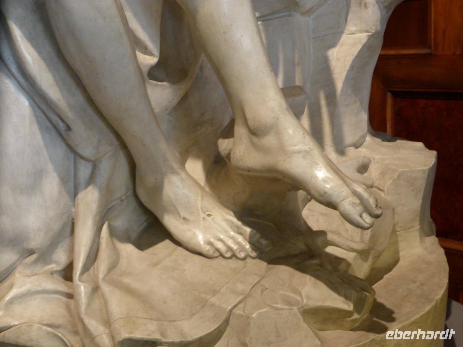 Kurz darauf stehen wir vor einer Ausgrabungsstätte. Hier befand sich einst das Stadion des Domitian.Wir schauen einige Meter in die Tiefe, denn das Straßenniveau Roms lag einst viel niedriger. Das Modell des Stadions aus der Antike regt unsere Vorstellung, wie etwa es hier ausgesehen hatte, an.Heute, gewissermaßen darüber, befindet sich die Piazza Navona, einer der charakteristischsten und gleichzeitig beliebtesten Plätze in Rom mit dem Vierströmebrunnen Berninis. Vorbei am Gebäude des Italinischen Senats wiederum durch Gassen mit Kopfsteinpflaster gehend kommen wir zum besterhaltenen antiken Gebäude Roms, dem Pantheon. Nun das Regierungsgebäude und die Säule von Marc Aurel. Wir überqueren die Via del Corso, die Haupteinkaufsstraße Roms mit Blick auf das Nationaldenkmal Italiens. Bald sind wir am Trevibrunnen, dem touristichen Muss in Rom ... um wieder zurückkommen zu dürfen. An der Spanischen Treppe endet sie, unsere Stadtführung. Meine Güte, was wir alles gesehen haben allein an diesem Vormittag.