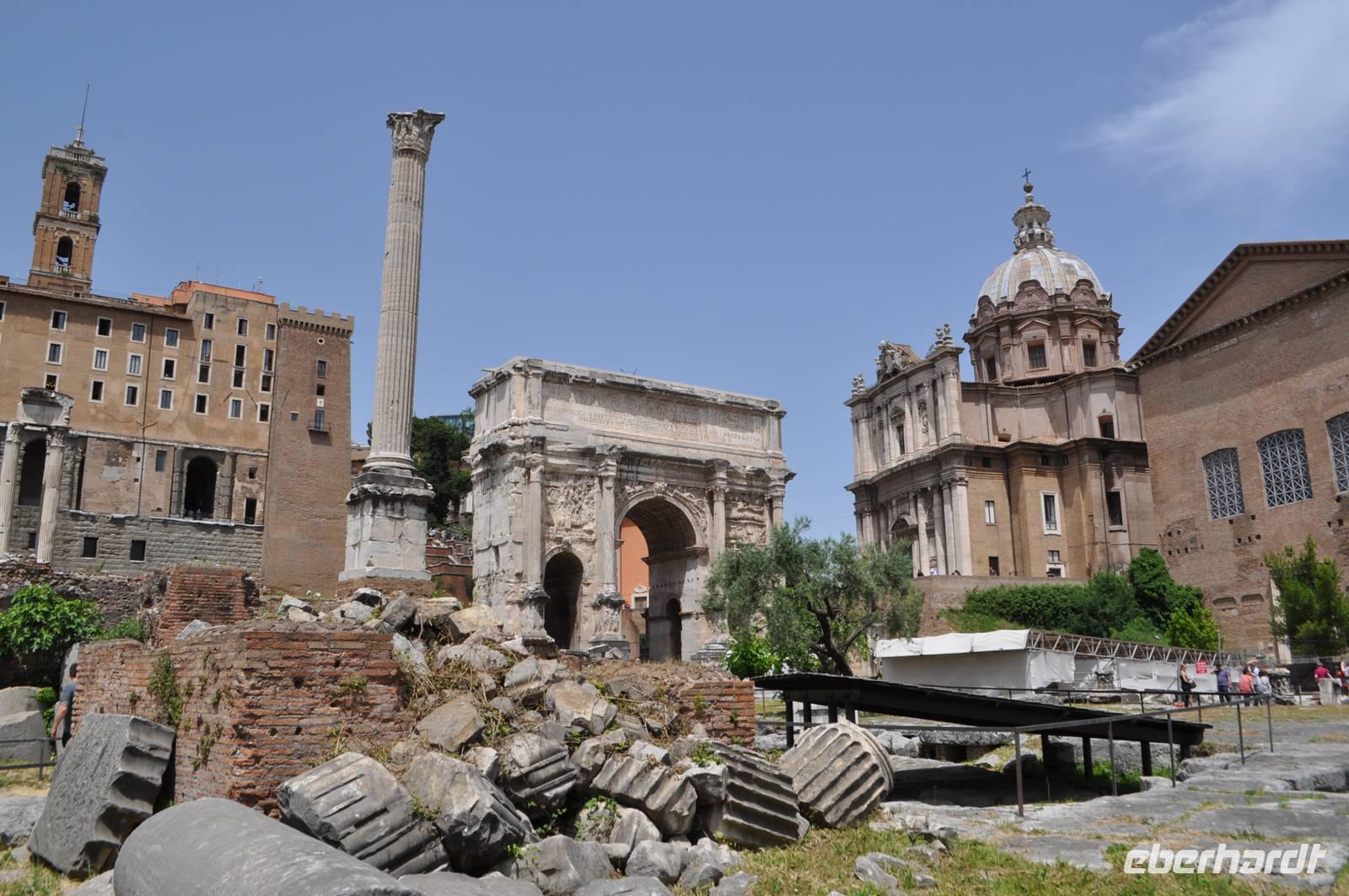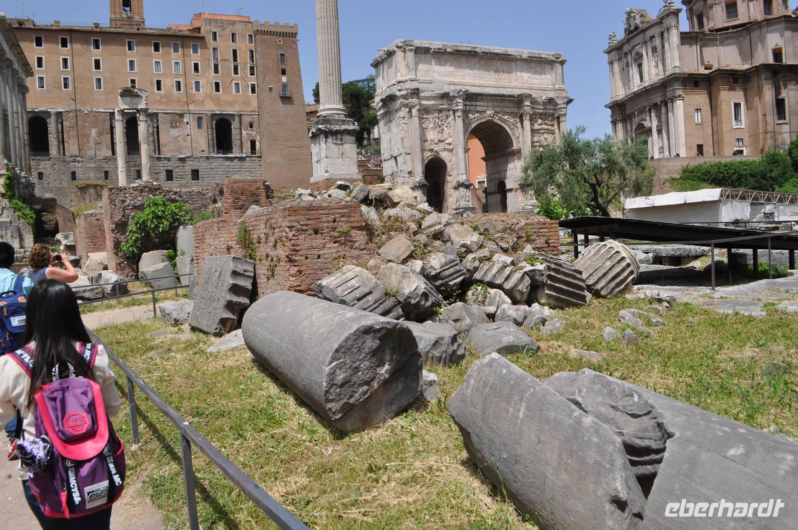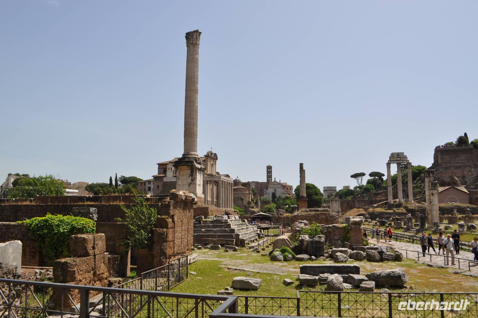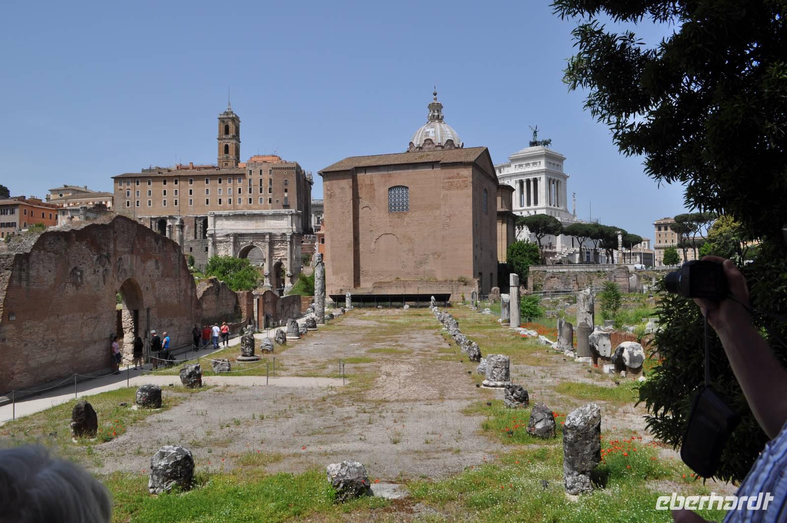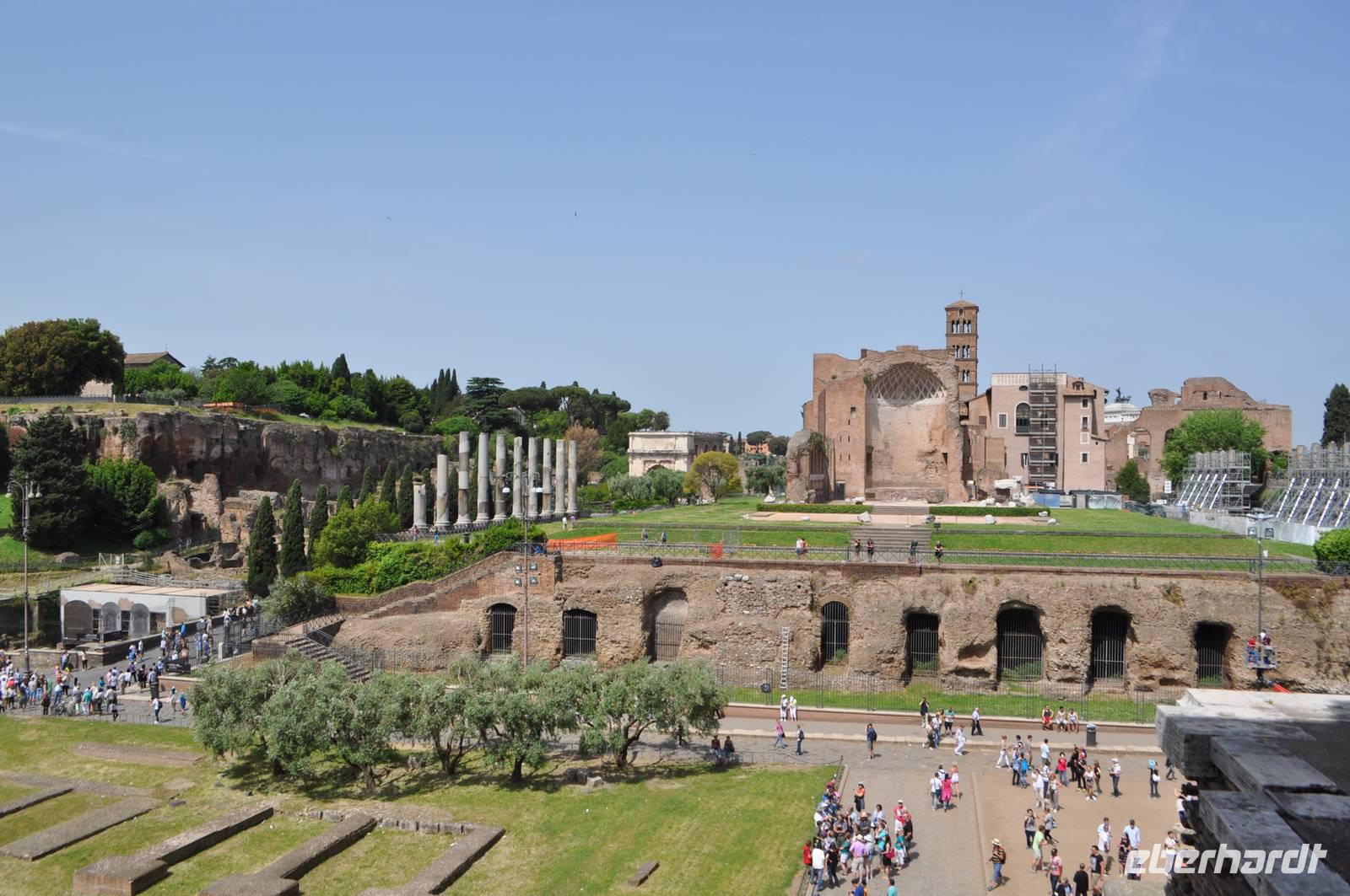 Nach einer Sicherheitskontrolle gelangen wir auch in das Innere des Kolosseums. Anschließend geht es durch das berühmte Forum Romanum. Das politische, wirtschaftliche und kulturelle Herz des Imperium Romanum. Hier gab es Basiliken, Märkte und natürlich den Senat. Die Stelle an der Gaius Iulius Caesar feuerbestattet wurde ist noch erhalten.