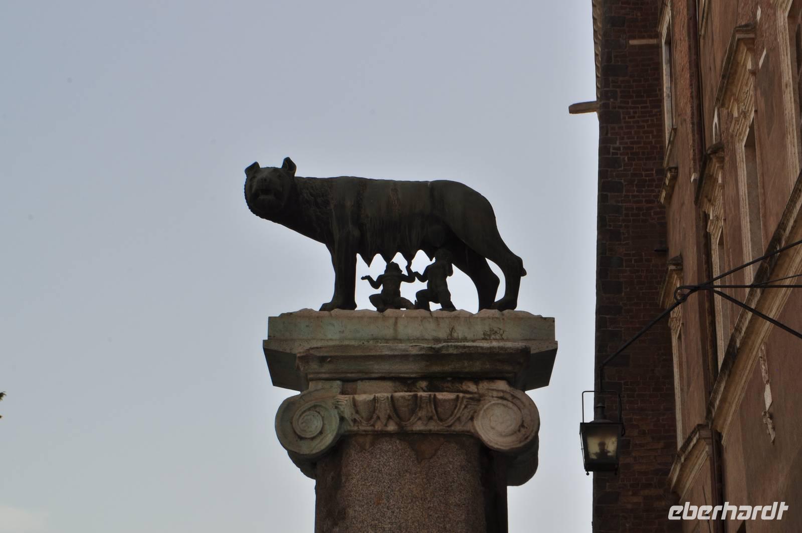 Die Wahrheit schwingt in beiden Fällen sicher mit. Die Skulptur der säugenen Wolfsmutter ist weit bekannt und ist in Kopie vor dem Rathaus zu bestaunen.