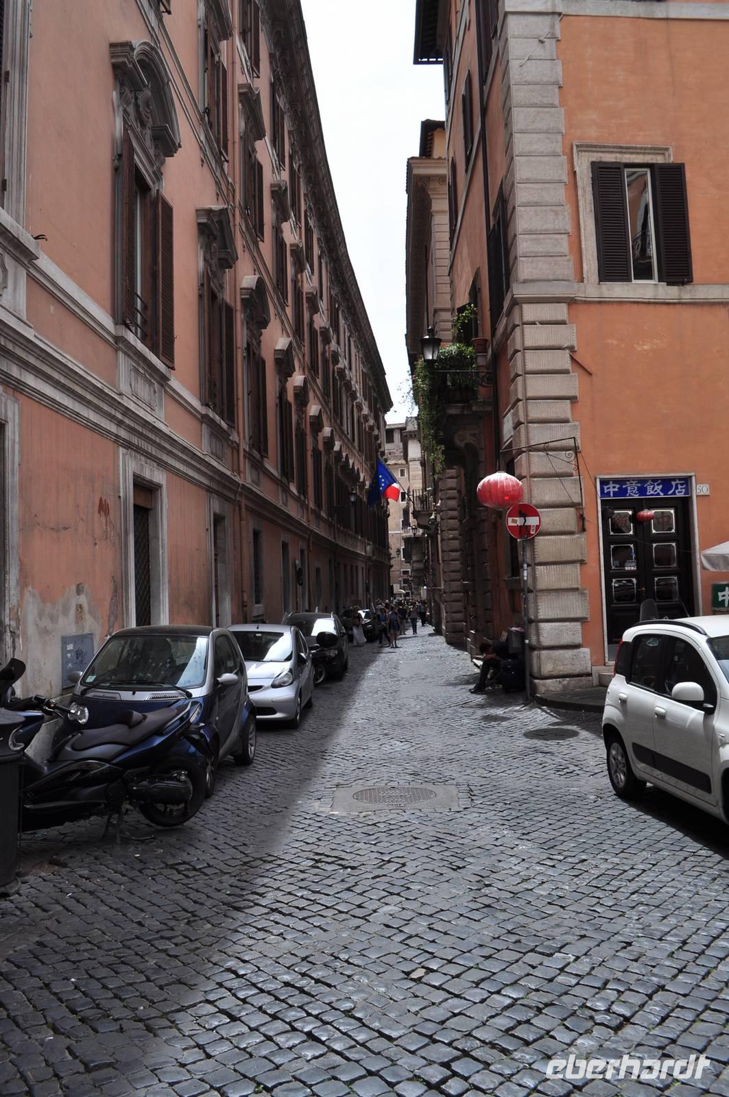 Die Wahl unseres ersten Restaurant fiel auf ein Restaurant im wahrsten Sinne des Wort "auf der Straße". Allein das ein Erlebnis. Mitten in Rom auf der Straße ein Abendessen serviert bekommen, etwas geschützt von Pflanzen, aber dennoch auf der Straße.