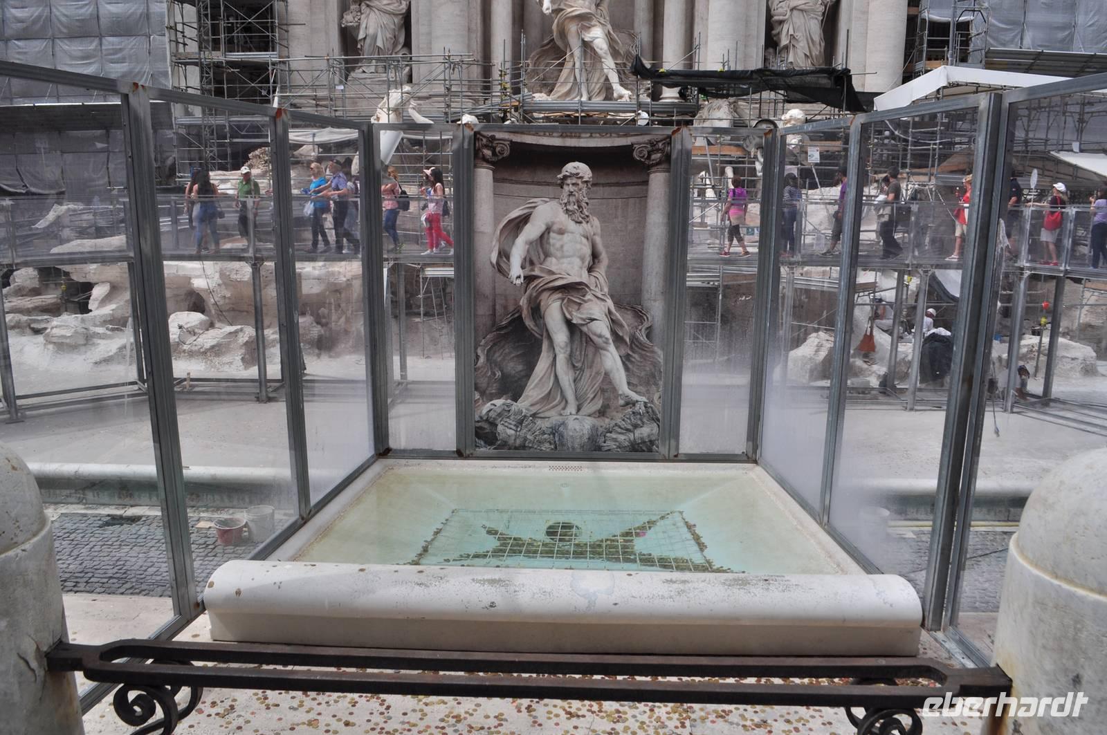 Über den Piazza di Venezia geht es weiter in das barocke Rom. Bekanntester Repräsentant ist der Fontana di Trevi, Trevibrunnen. Im Moment leider eingerüstet, ist auch er ein großer Besuchermagnet. Wirft man eine Münze über Schulter bringt das eine sichere Wiederkehr nach Hause und nach Rom.