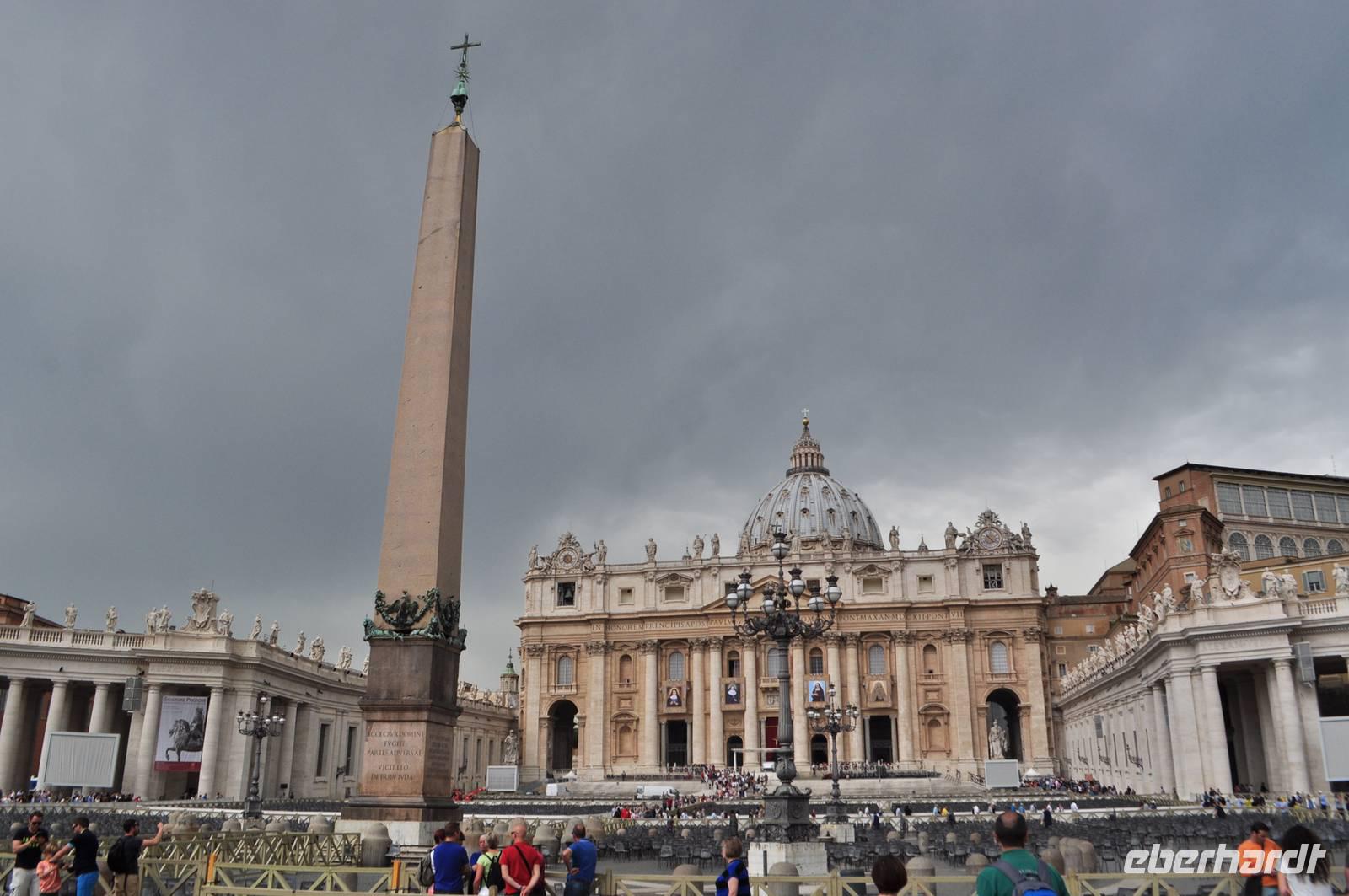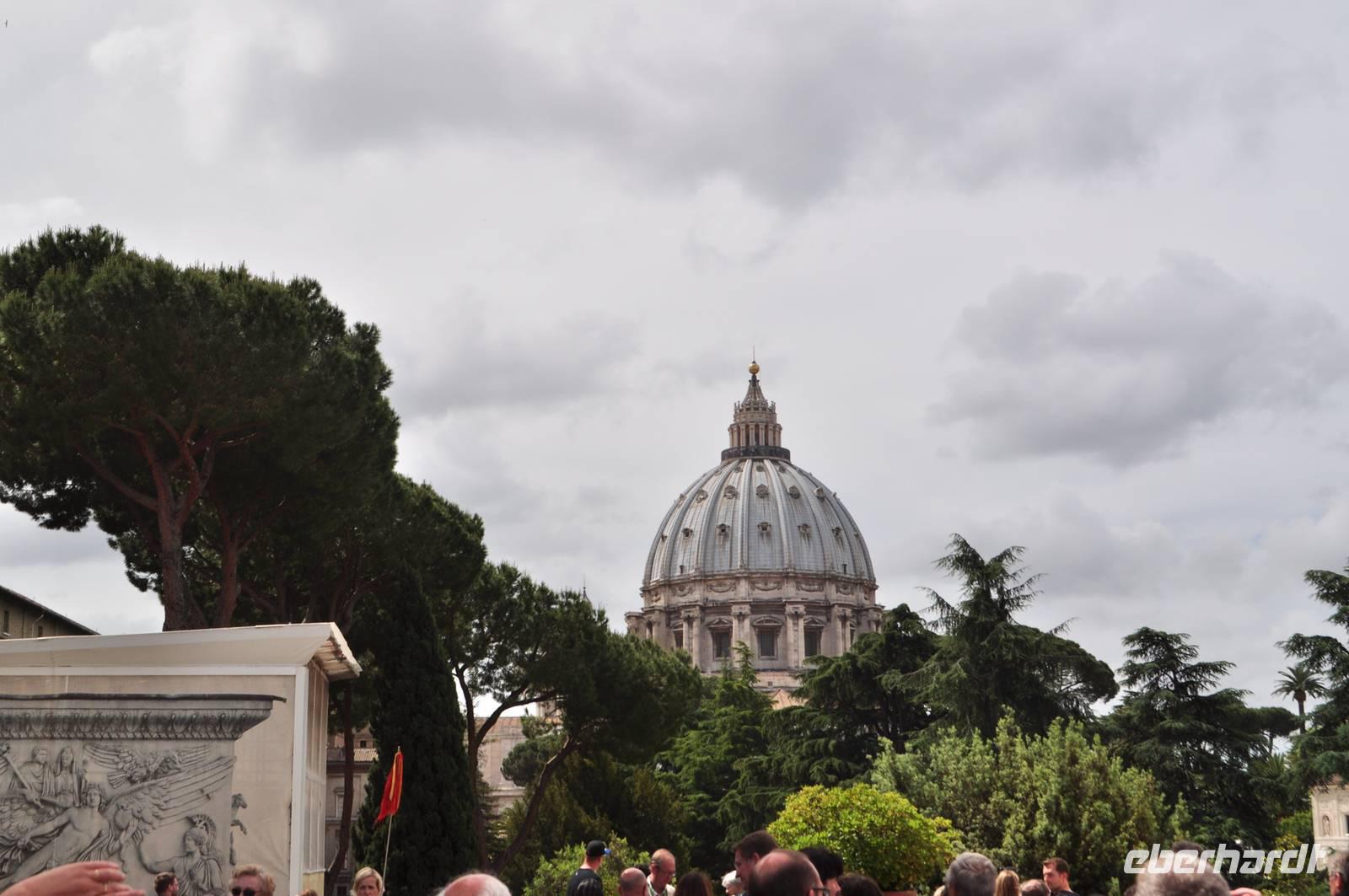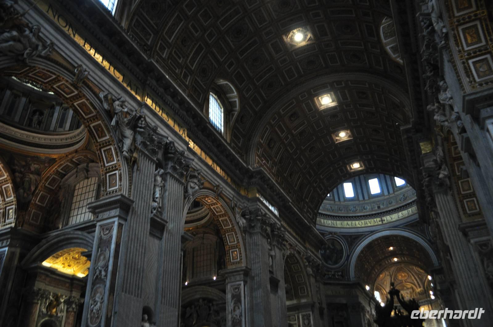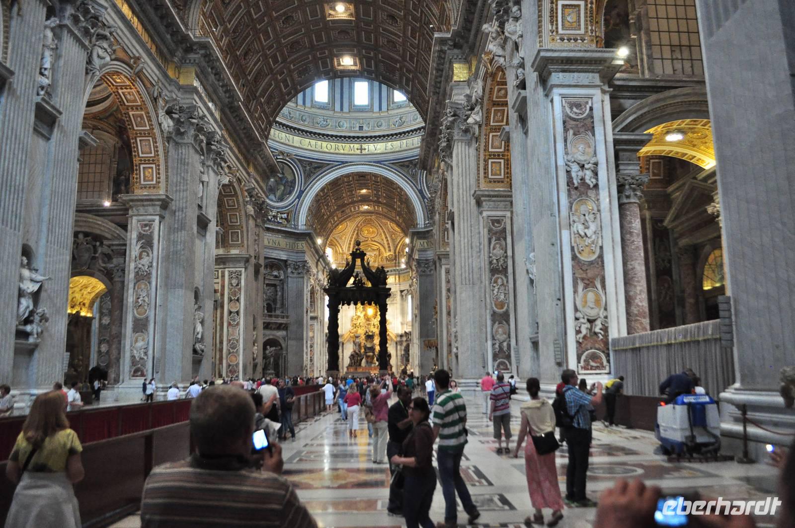 Früh am Morgen vor Beginn des Metro-Streikes fahren wir in den Vatikan. Von der Metrostation sind es nur wenige Momente bis man in das Herz des Vatikan gelangt, Zentrum der christlichen (katholischen) Welt. Petersplatz und Petersdom bilden ein eindrucksvolles Ensemble. Vorbei an der geschlossenen Heiligen Pforte betreten wir den Petersdom. Direkt am Eingang erwartet uns die Madonna von Michelangelo. Die Größe ist immer wieder beeindruckend. Am Boden finden sich Markierungen der größten Kirchen der Welt. Der Petersdom ist mehr als doppelt so groß, wie die nächst kleinere Kirche. Vorbei am Grab Petris,dem ersten Bischof von Rom, der Apostel, der als Märthyrer am Kreuz gestorben ist.