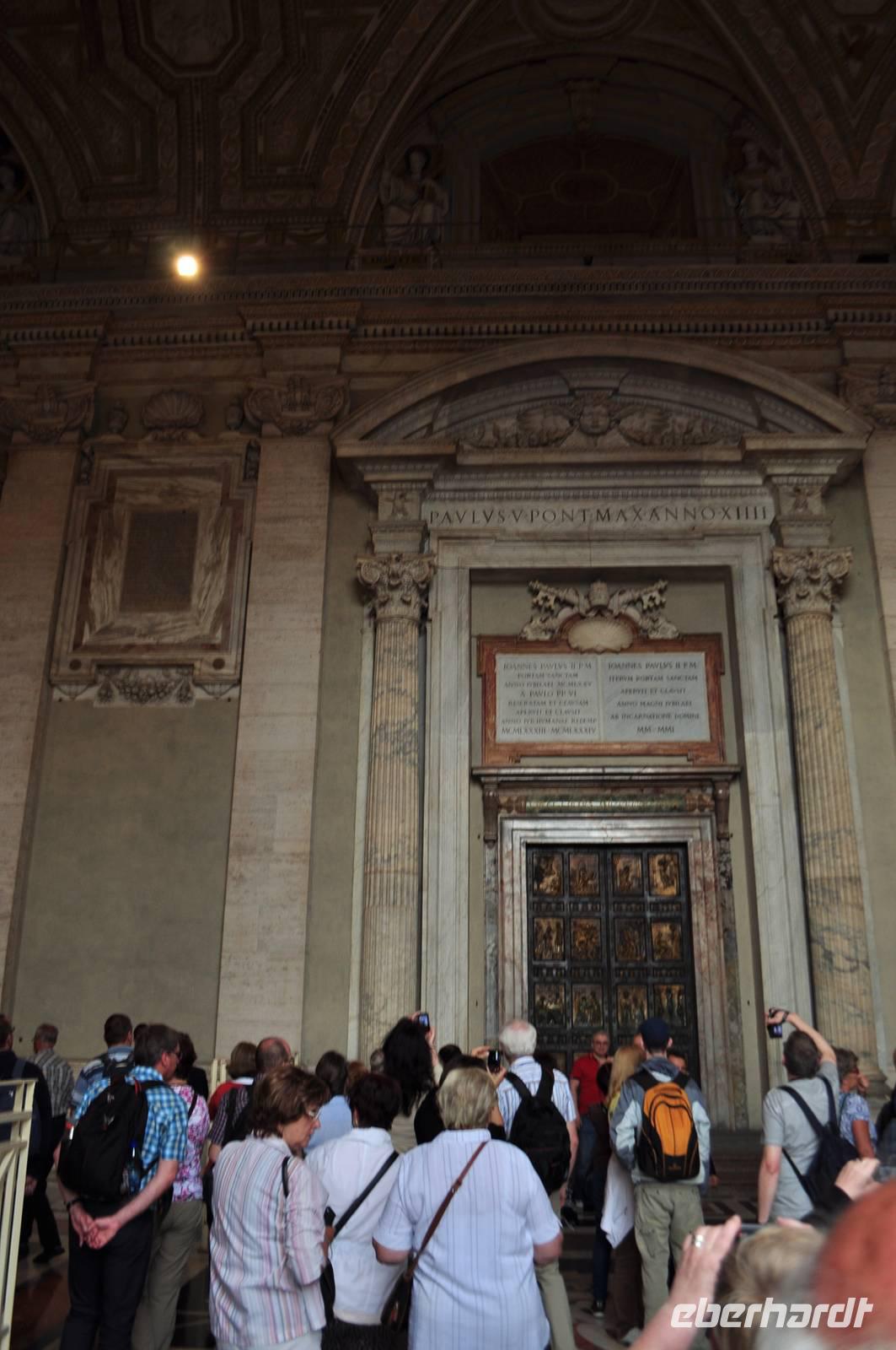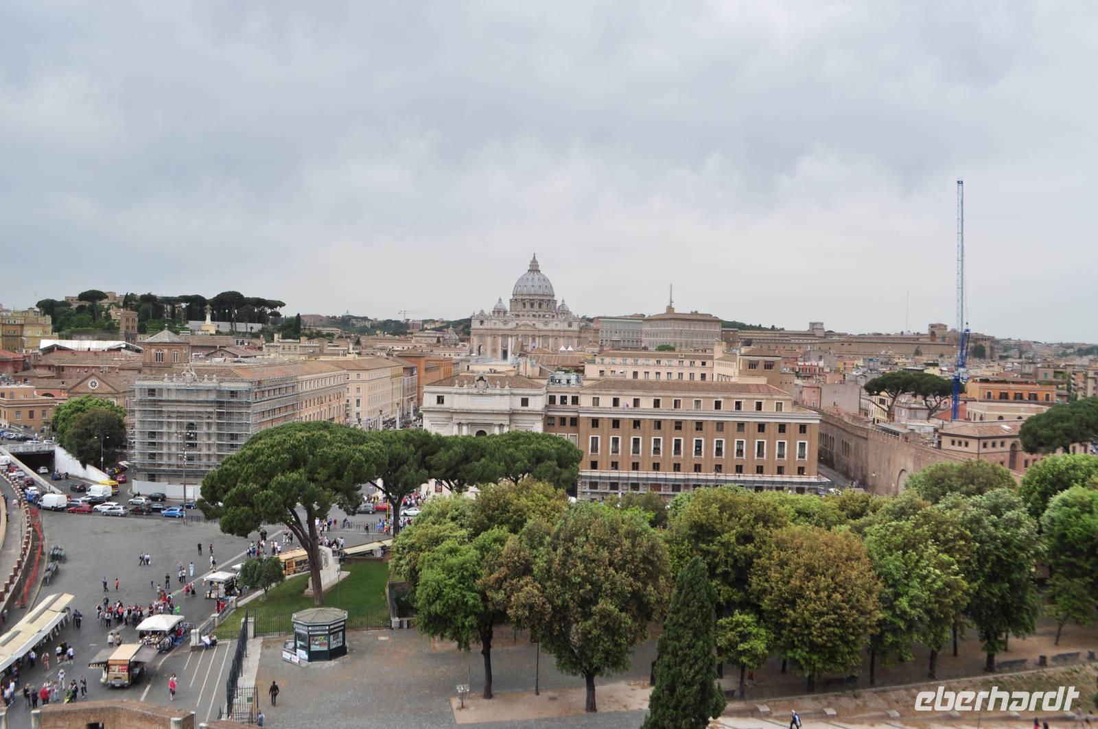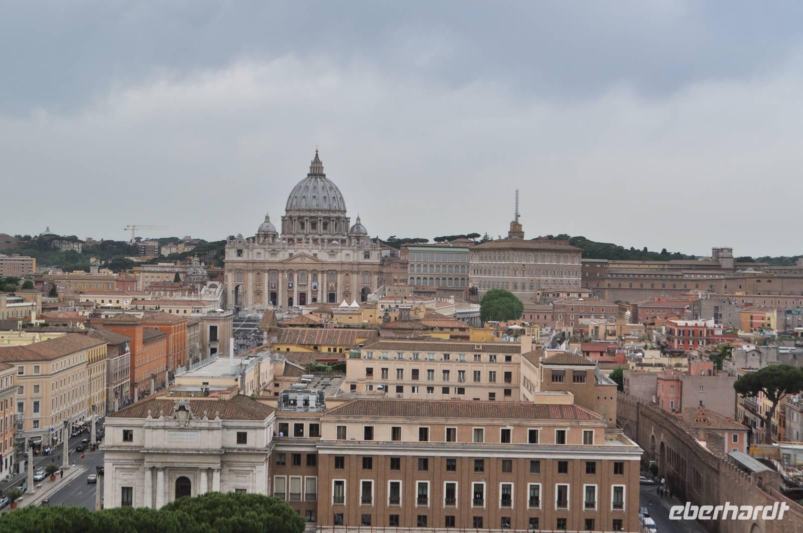 Früh am Morgen vor Beginn des Metro-Streikes fahren wir in den Vatikan. Von der Metrostation sind es nur wenige Momente bis man in das Herz des Vatikan gelangt, Zentrum der christlichen (katholischen) Welt. Petersplatz und Petersdom bilden ein eindrucksvolles Ensemble. Vorbei an der geschlossenen Heiligen Pforte betreten wir den Petersdom. Direkt am Eingang erwartet uns die Madonna von Michelangelo. Die Größe ist immer wieder beeindruckend. Am Boden finden sich Markierungen der größten Kirchen der Welt. Der Petersdom ist mehr als doppelt so groß, wie die nächst kleinere Kirche. Vorbei am Grab Petris,dem ersten Bischof von Rom, der Apostel, der als Märthyrer am Kreuz gestorben ist.