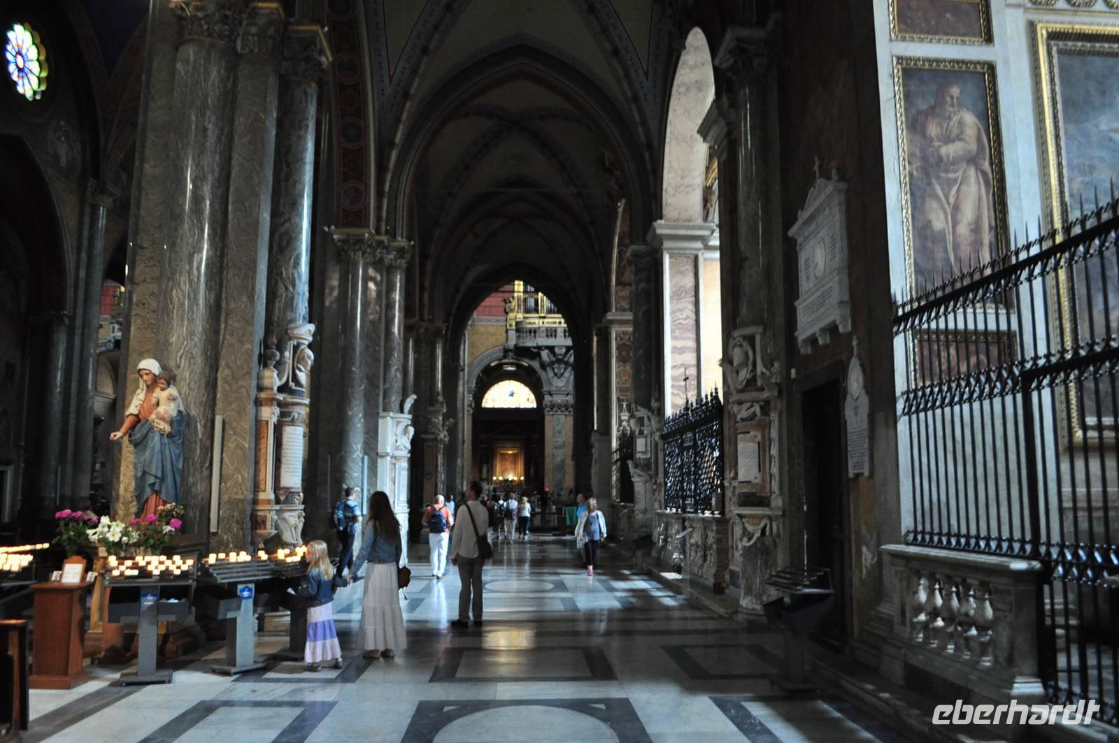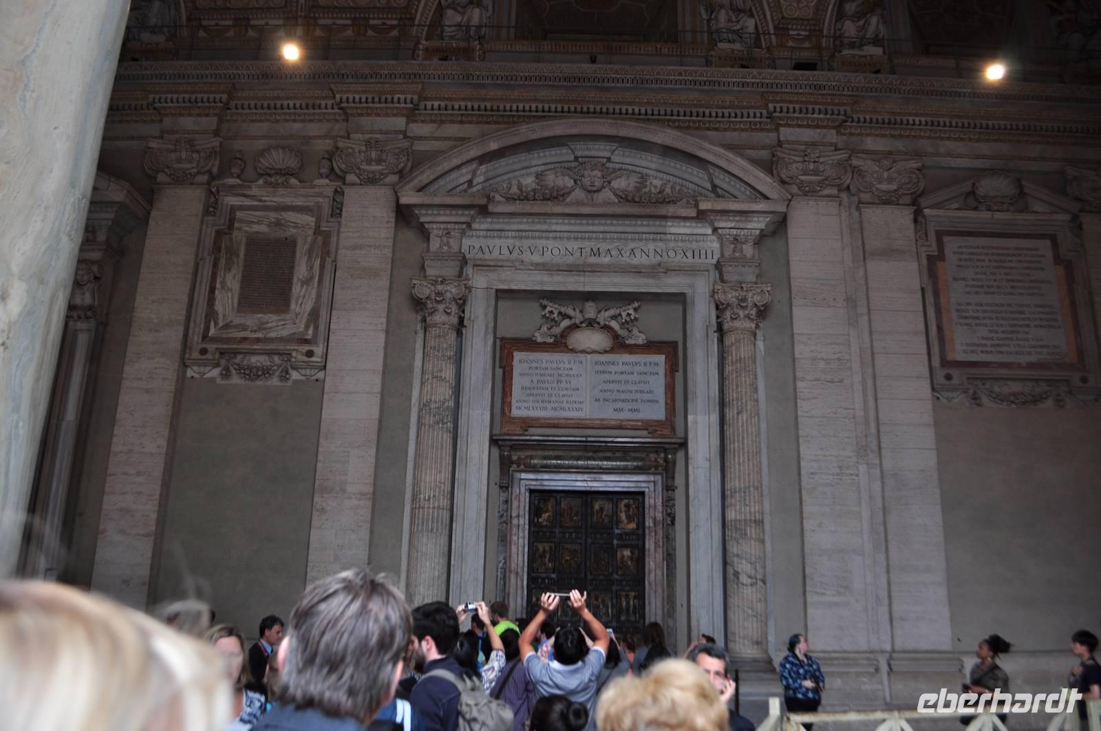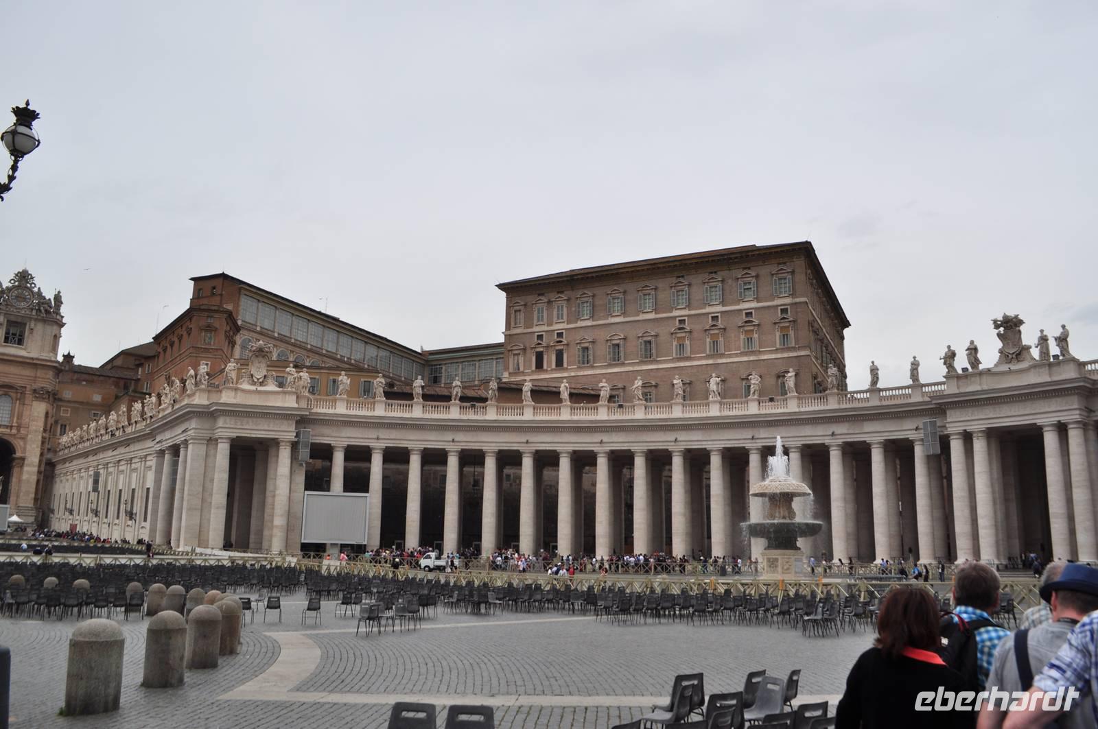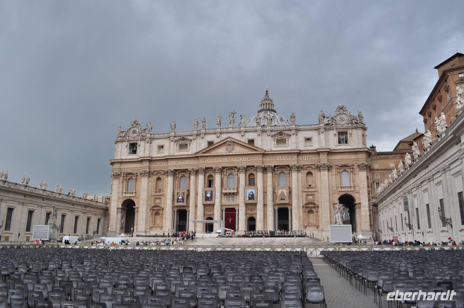Früh am Morgen vor Beginn des Metro-Streikes fahren wir in den Vatikan. Von der Metrostation sind es nur wenige Momente bis man in das Herz des Vatikan gelangt, Zentrum der christlichen (katholischen) Welt. Petersplatz und Petersdom bilden ein eindrucksvolles Ensemble. Vorbei an der geschlossenen Heiligen Pforte betreten wir den Petersdom. Direkt am Eingang erwartet uns die Madonna von Michelangelo. Die Größe ist immer wieder beeindruckend. Am Boden finden sich Markierungen der größten Kirchen der Welt. Der Petersdom ist mehr als doppelt so groß, wie die nächst kleinere Kirche. Vorbei am Grab Petris,dem ersten Bischof von Rom, der Apostel, der als Märthyrer am Kreuz gestorben ist.