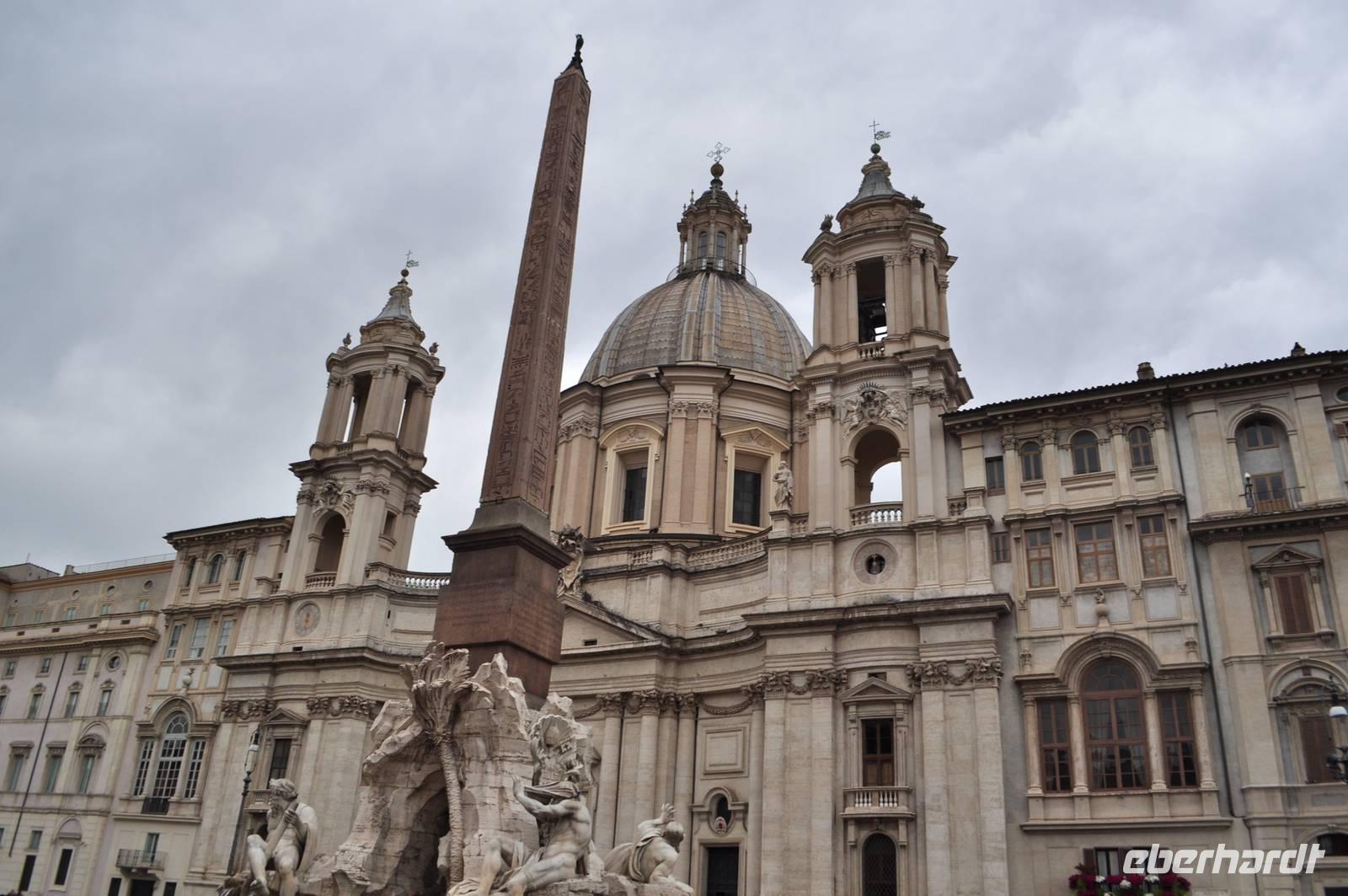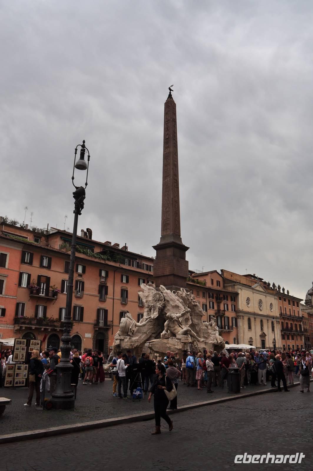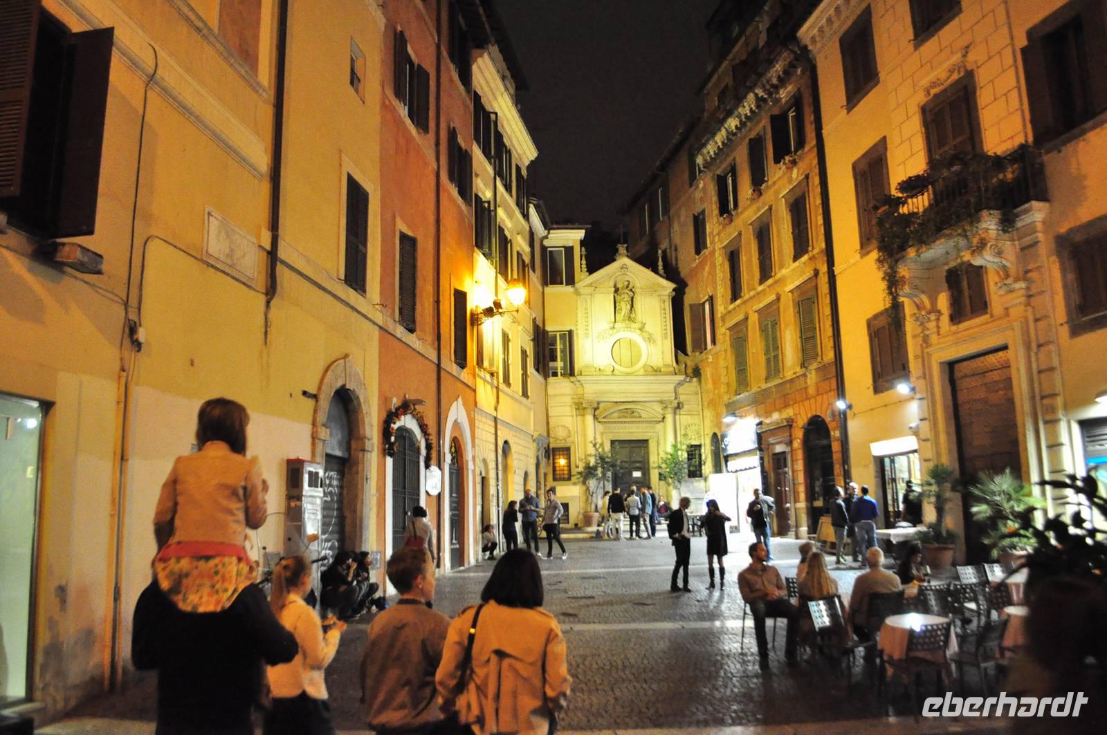 Wie überqueren den Tiber und tauchen ein in das Mittelalter. Durch schmale Gassen erreichen wir die Piazza Navona mit den beeindruckenden Springbrunnen. Durch noch mehr enge Gassen, entlang kleiner Läden kommen wir zu einem weiteren Platz, hier steht das Pantheon. Es ist eines der am besten erhaltenen römischen Bauwerke der Antike. Das Schicksal als Steinbruch und Baumaterialspender zu dienen, blieb dem Pantheon erspart, da es schon früh in eine Kirche umgewandelt wurde und unter päpstlichem Schutz stand. So können wir die beeindruckende römische Architektur samt gigantischer Kuppel und Original Bronze Türen noch heute bestaunen. Licht fällt über ein Loch in der Decke ein. Das einfallende Licht dient gleichzeitig als Sonnenuhr.