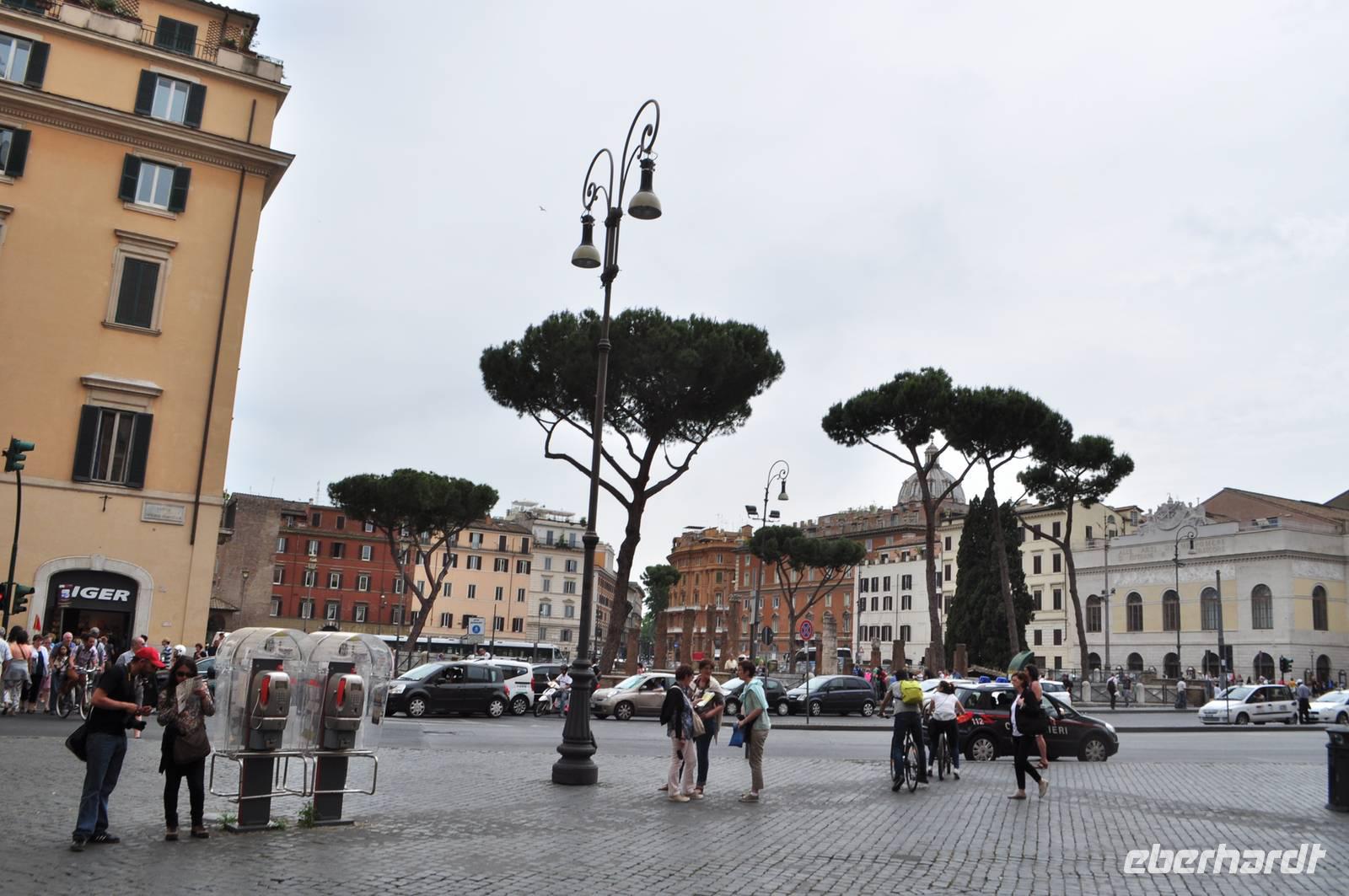 Mittlerweile ist es dunkel geworden. Die Temperaturen haben sich angenehm abgekühlt. Es sind nur noch vereinzelte Touristen da, man sogar fast von Ruhe am Kolosseum sprechen, welch ein Genuss. Über die Via Imperiale (das Forum Romanum ist nachts leider geschlossen) geht es zum Kapitol. Unterwegs probieren wir bei einem Straßenhändler sonnengereigtes italienisches Obst. Trotz vorgerückter Stunden steigen wir auch die Stufen zum Kapitol hinauf. Außer uns sind nur ein paar verstreute Wachleute anwesend. Etwas linker Hand, erhaschen wir auch einen Blick auf den gut beleuchteten Petersdom. Zu Fuss geht es über die Piazza Venezia, den Trajans Märkten und der Via Nazionale zurück zum Hotel.