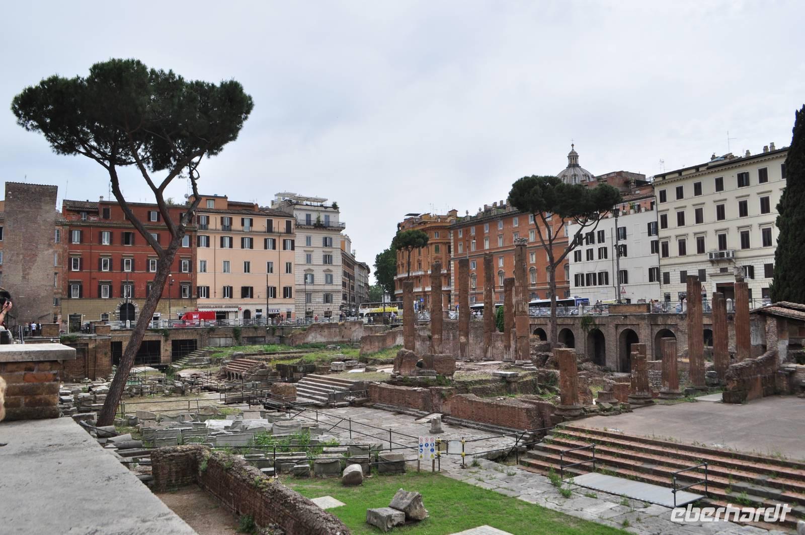 Unsere Stadtführung endet am Piazza de Argentina, hier sind ebenfalls noch antike Reste zu sehen. Der Rest des Tages ist Freizeit in Rom.