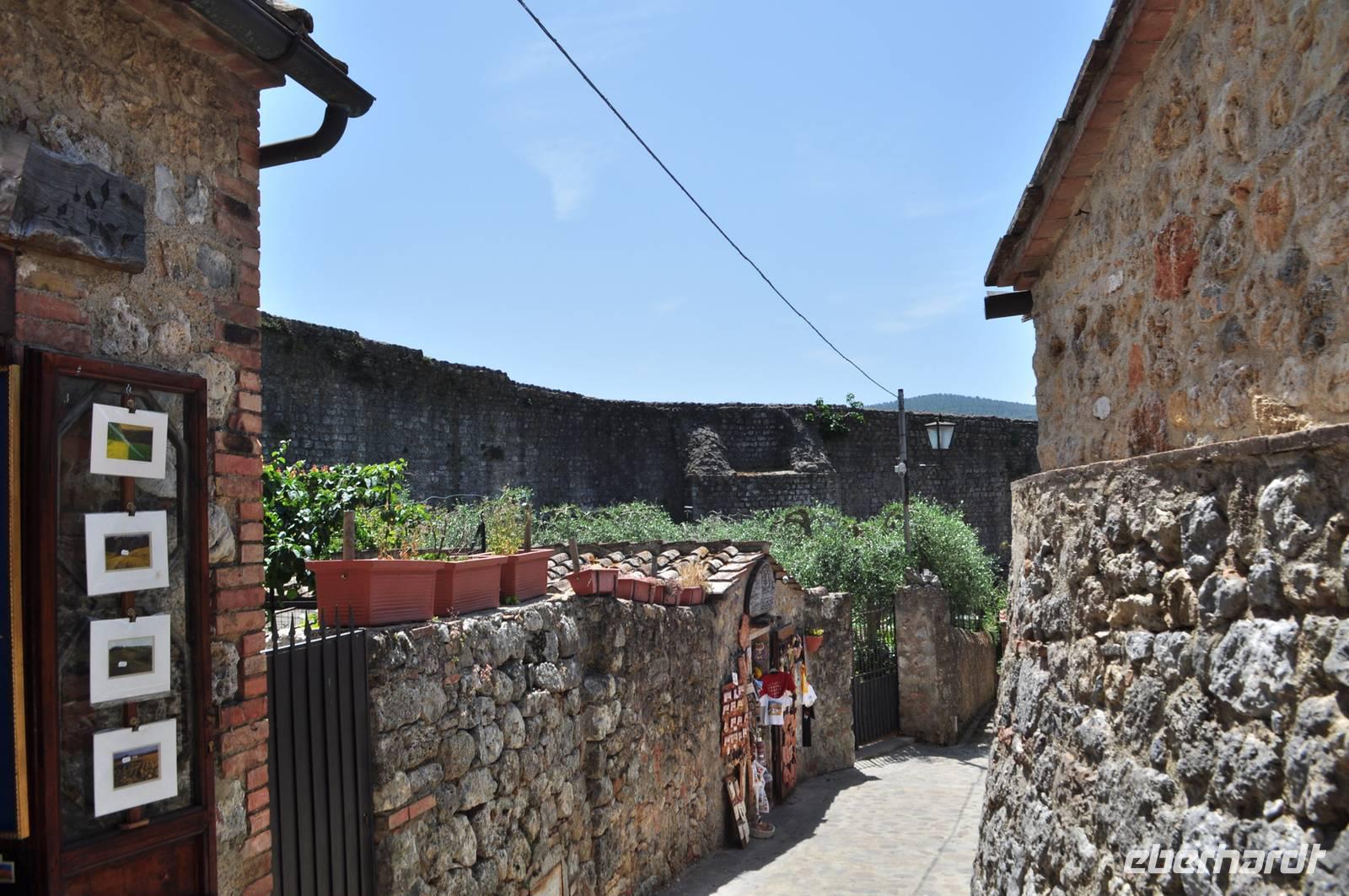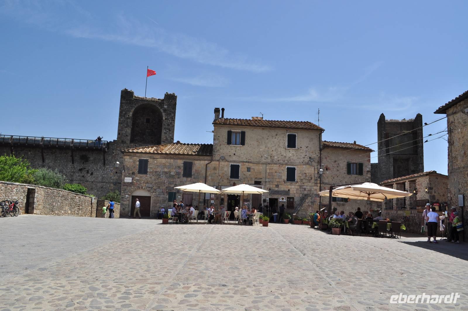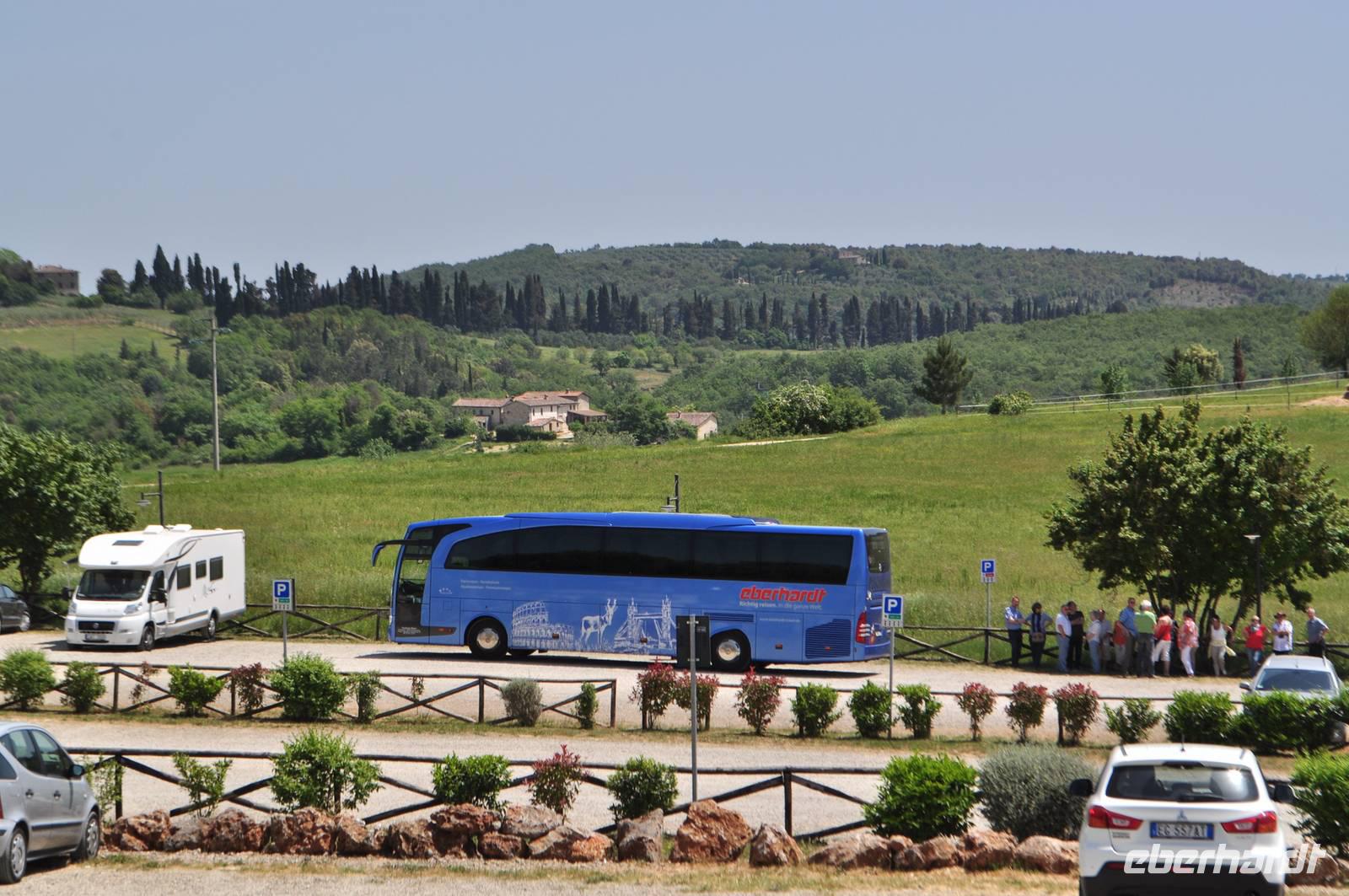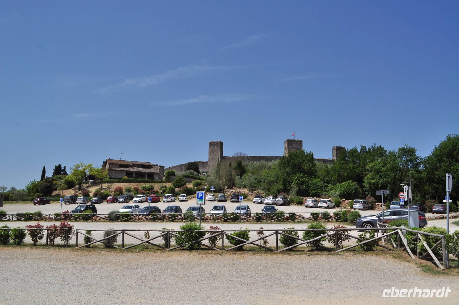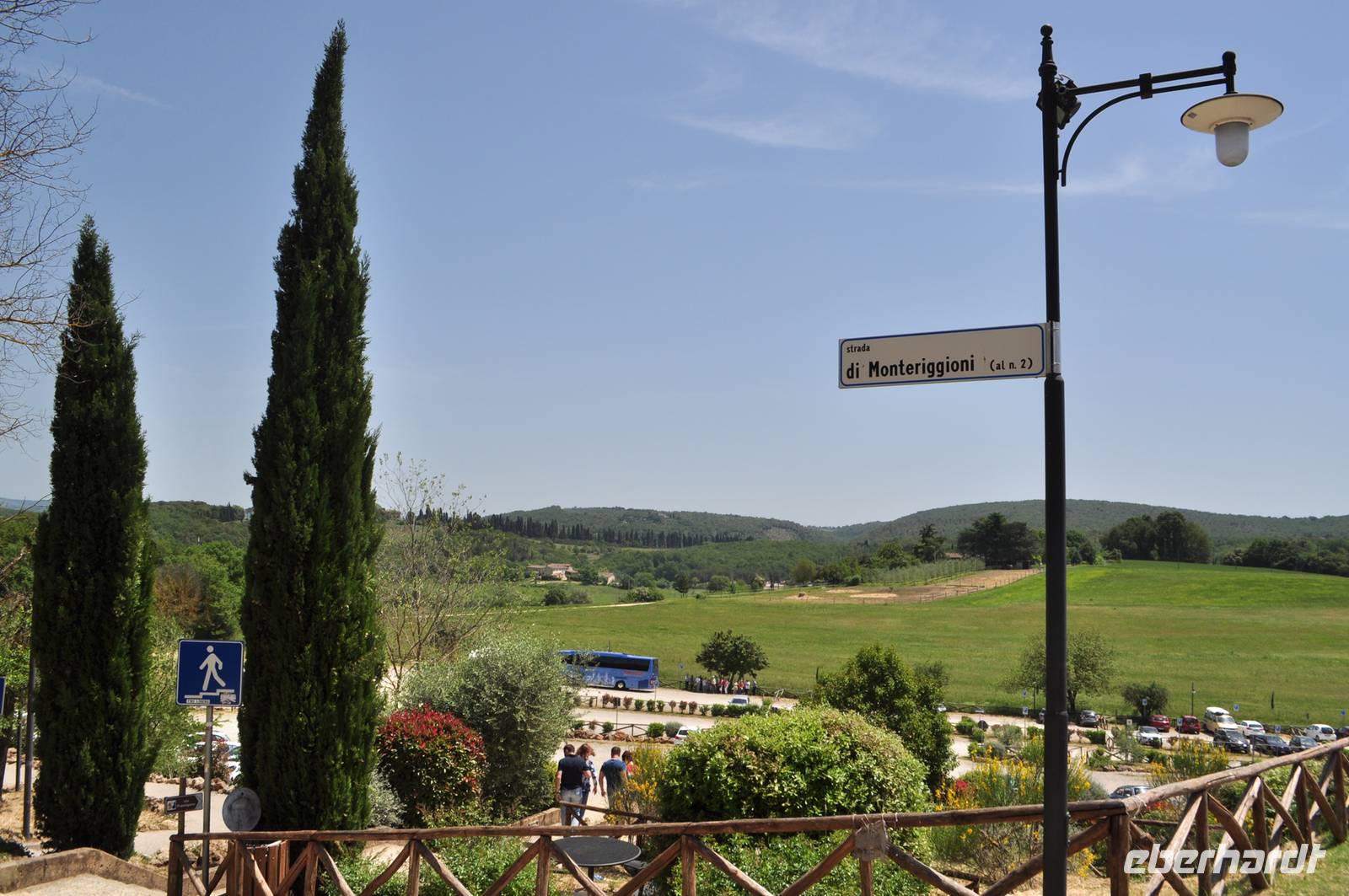 Am frühen Morgen starten die Busreisegäste mit mir in Richtung Norden. Den Fluggästen bleiben noch einige Stunden, bevor auch sie sich in Richtung Heimat begeben. In der Toskana verlassen wir die Autobahn und folgen der Landstraße in Richtung Siena. In Monteriggioni haben wir unsere Mittagspause. Der Ort ist eigentlich eine mittelalterliche Festung, auf einer kleinen Anhöhe gelegen. Sie wurde bereits im Jahr 1213 begonnen. Anschließend geht es über die Autobahn nach Florenz, Bologna bis hinauf nach Riva del Garda.
