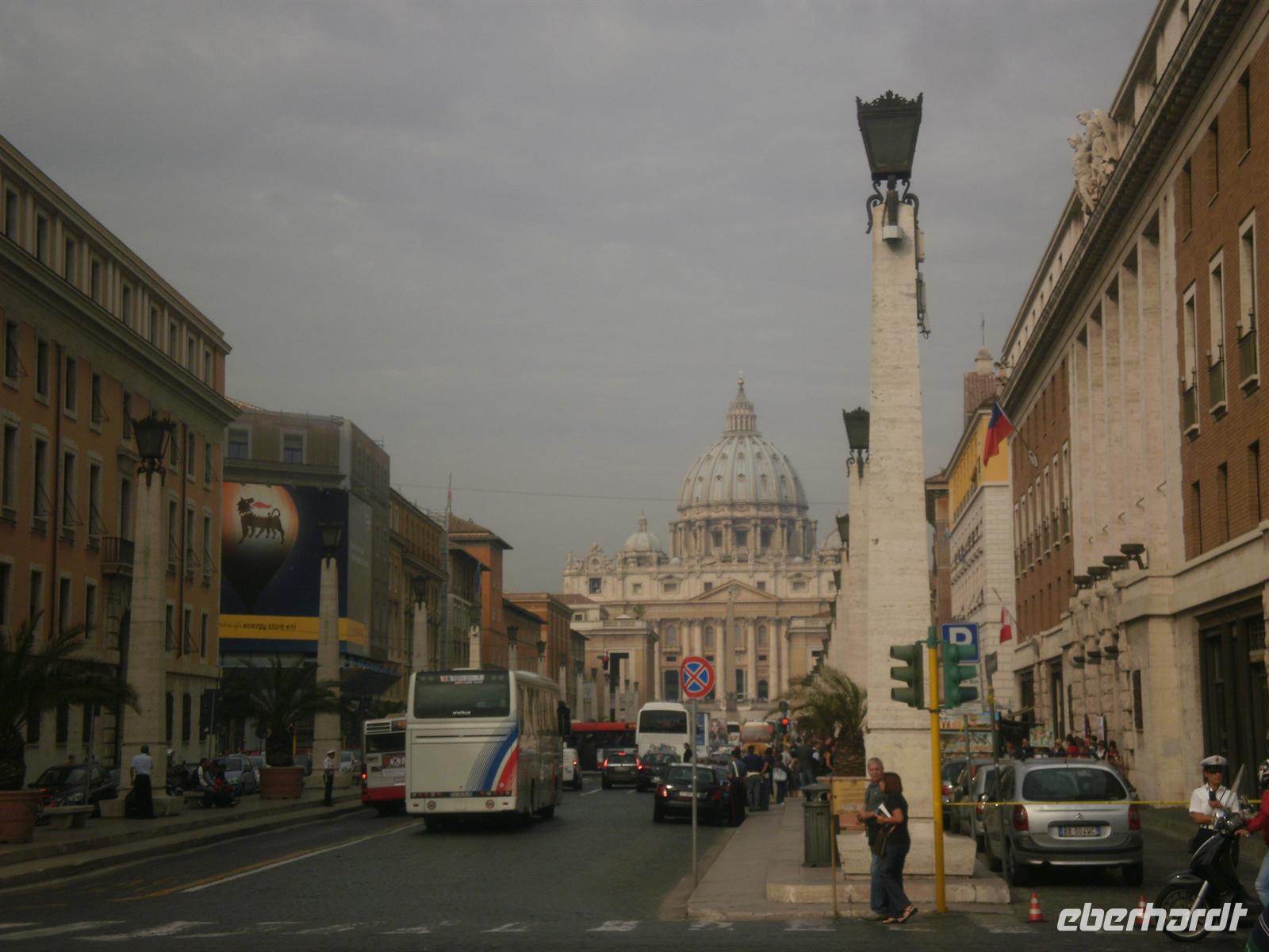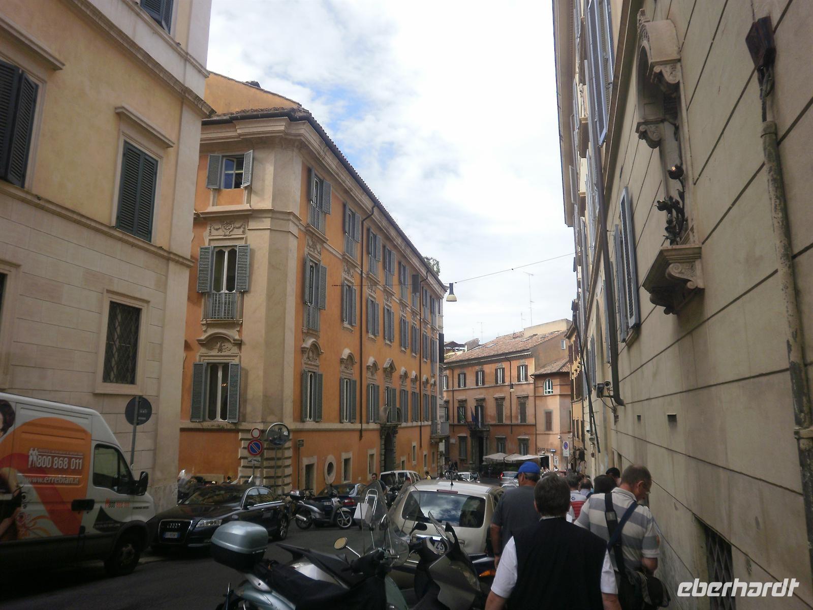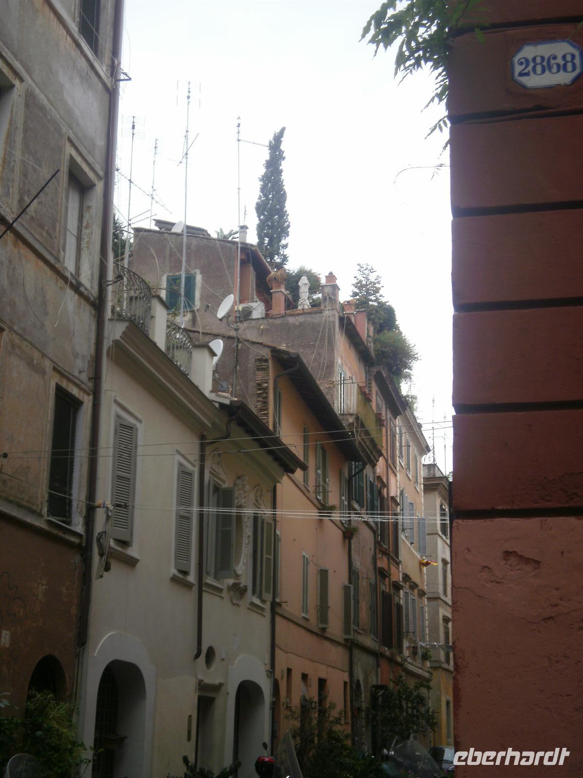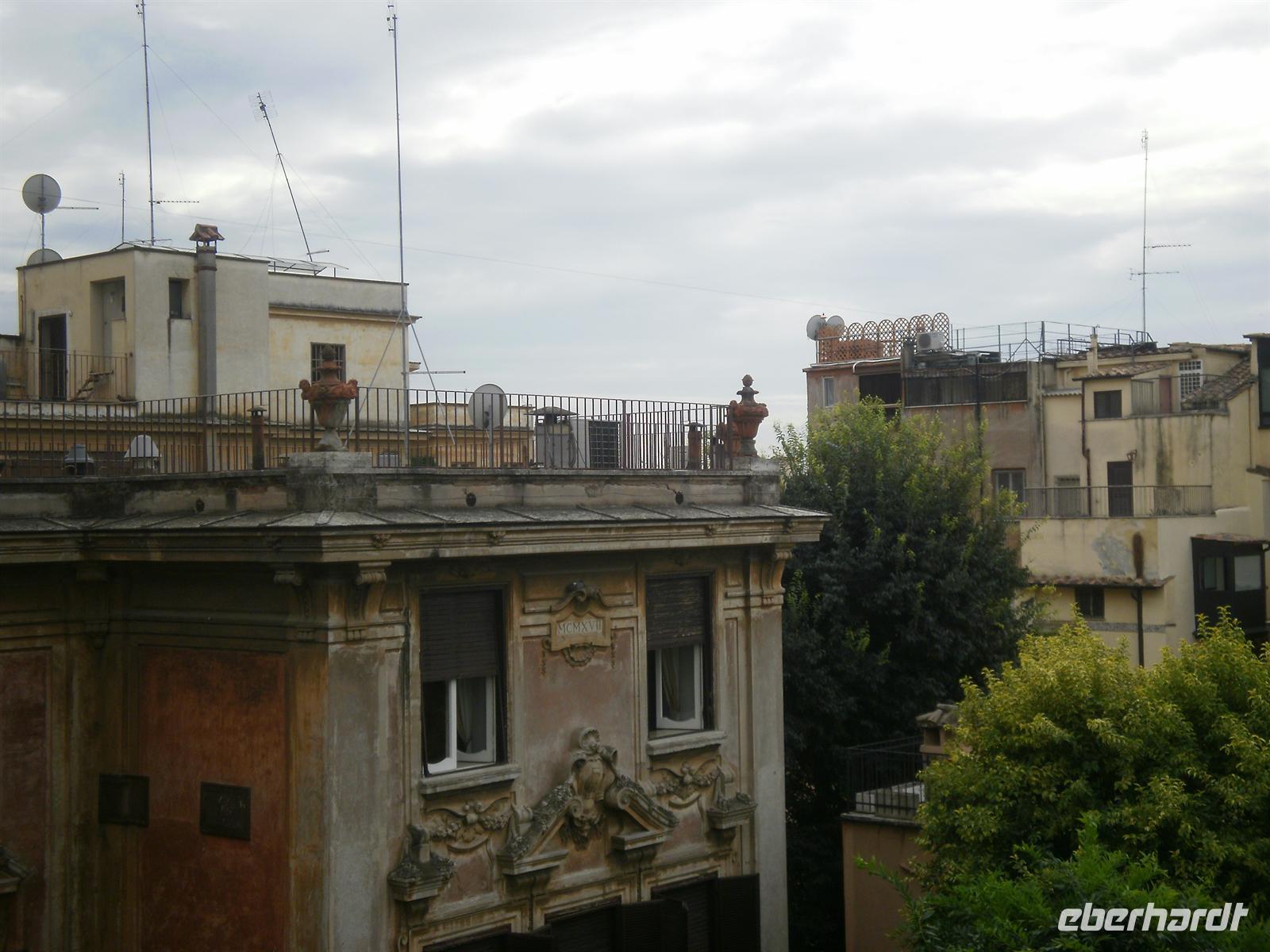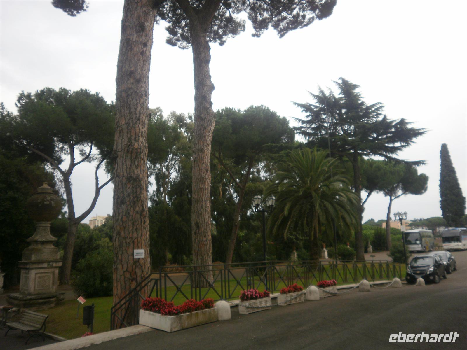 In Rom angekommen, erreichten wir am frühen Abend unser 4-Sterne-Hotel "Palazzo Carpegna". Dieses Hotel liegt in einer Parkanlage abseits der Via Aurelia, also im Westen Roms und unweit des Vatikans. Trotz der ruhigen Lage hat man von hier aus sehr gute Möglichkeiten, mit öffentlichen Verkehrsmitteln innerhalb von wenigen Minuten das Stadtzentrum Roms zu erreichen.