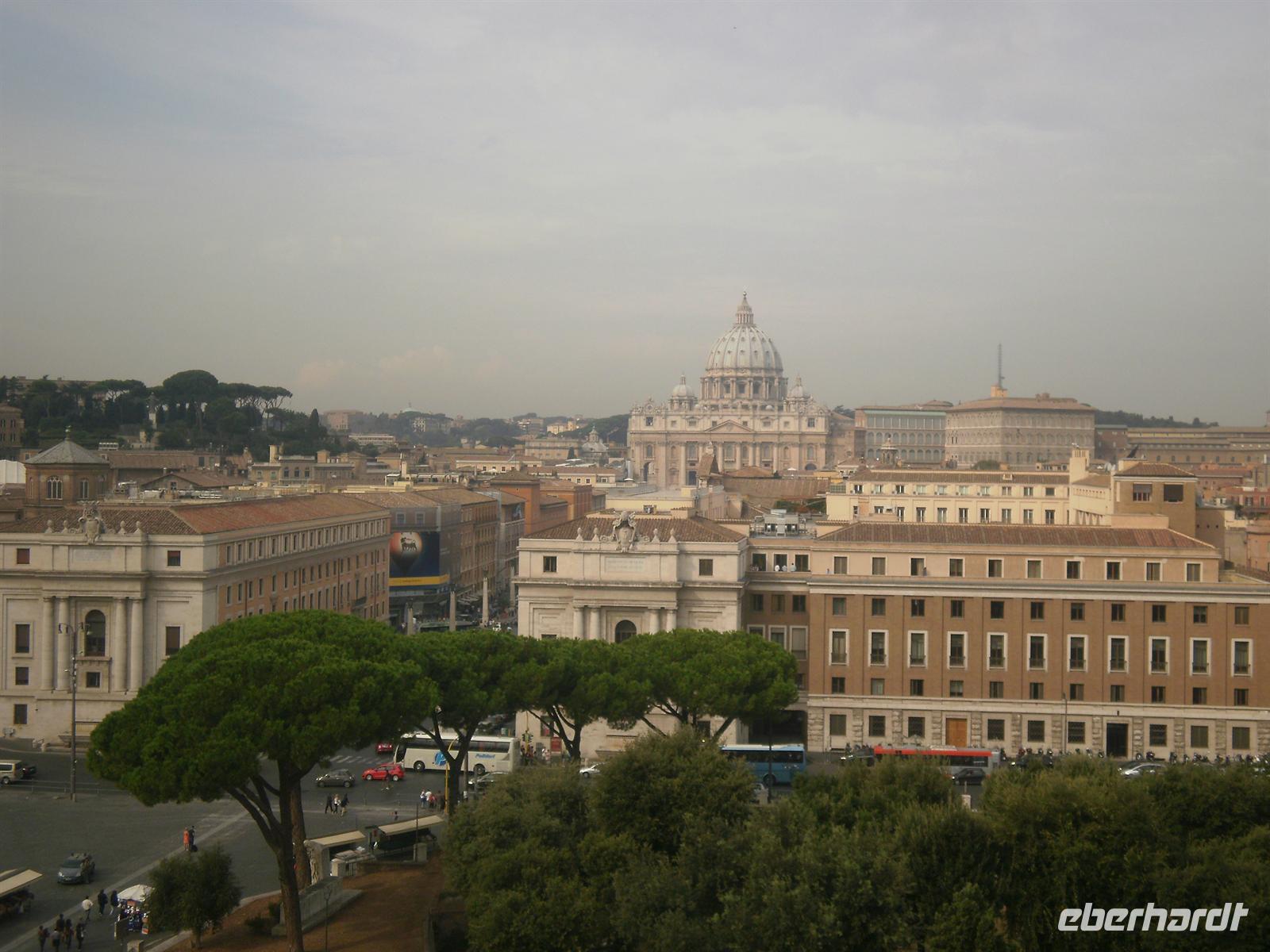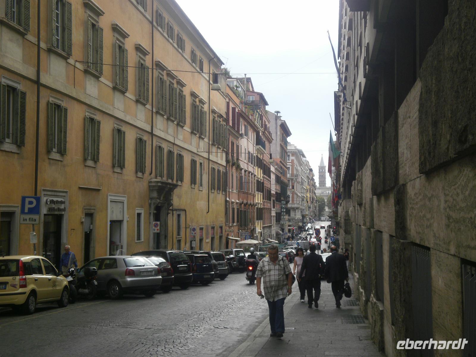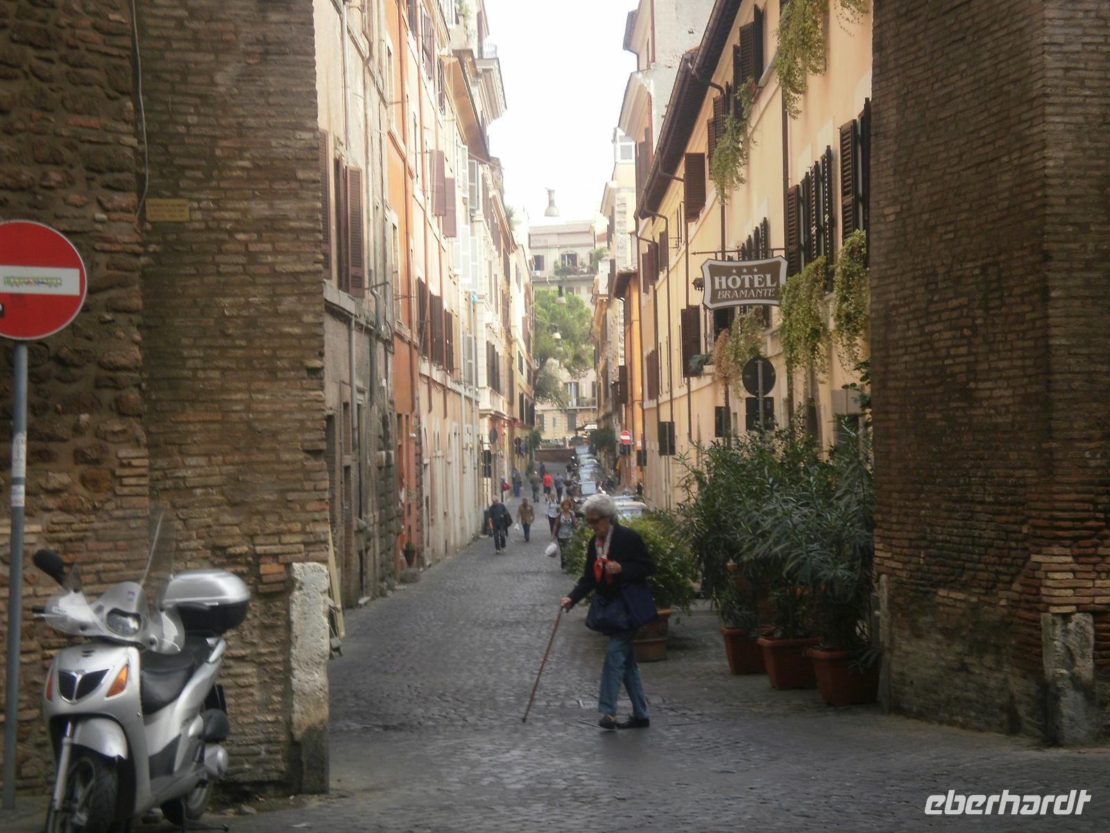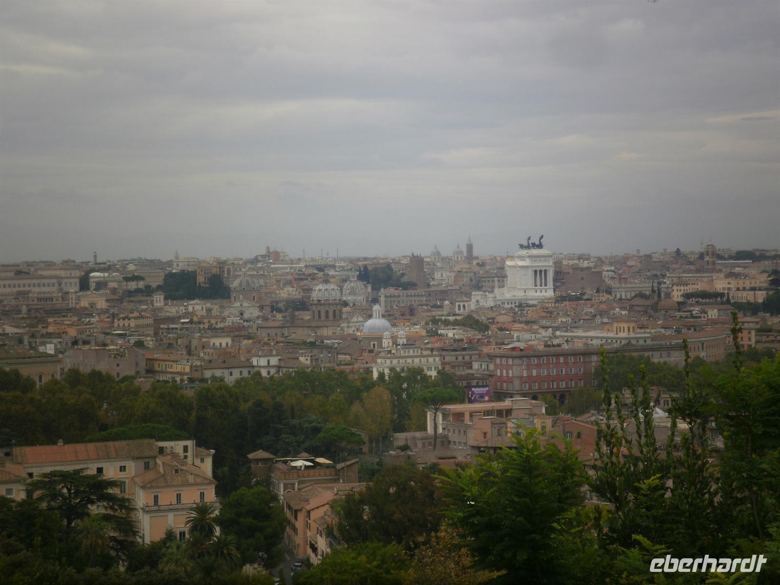 In Rom angekommen, erreichten wir am frühen Abend unser 4-Sterne-Hotel "Palazzo Carpegna". Dieses Hotel liegt in einer Parkanlage abseits der Via Aurelia, also im Westen Roms und unweit des Vatikans. Trotz der ruhigen Lage hat man von hier aus sehr gute Möglichkeiten, mit öffentlichen Verkehrsmitteln innerhalb von wenigen Minuten das Stadtzentrum Roms zu erreichen.