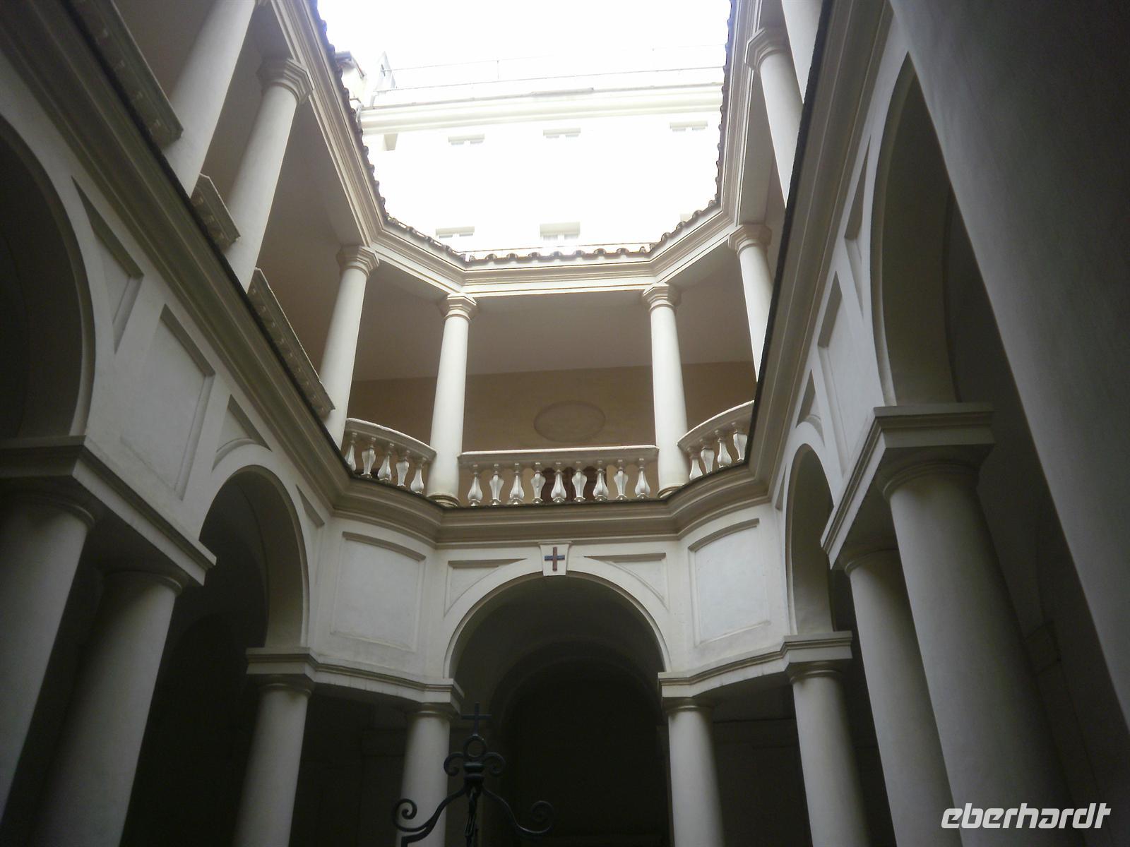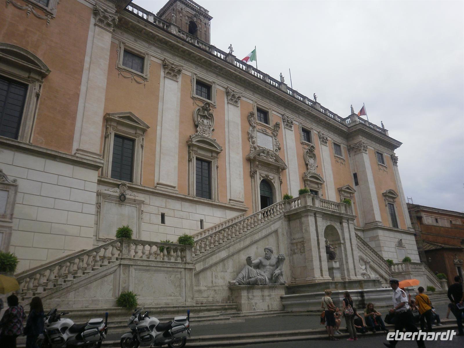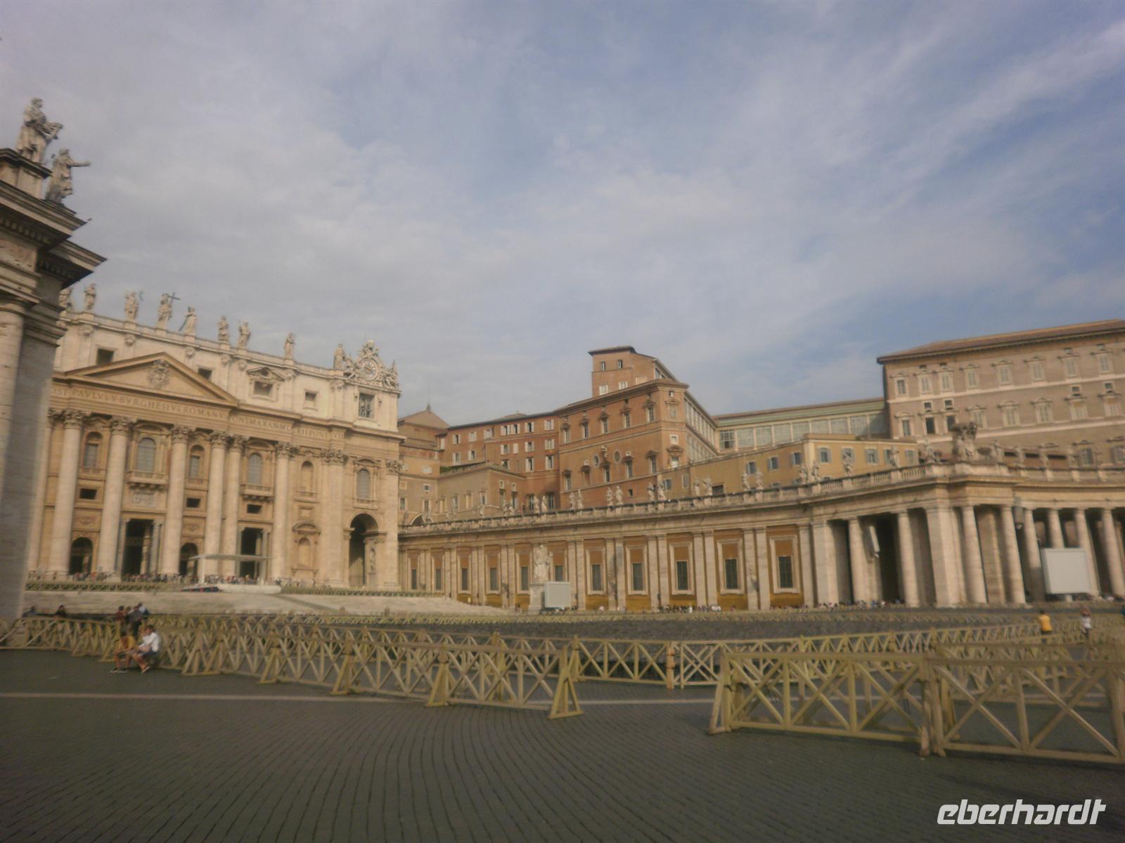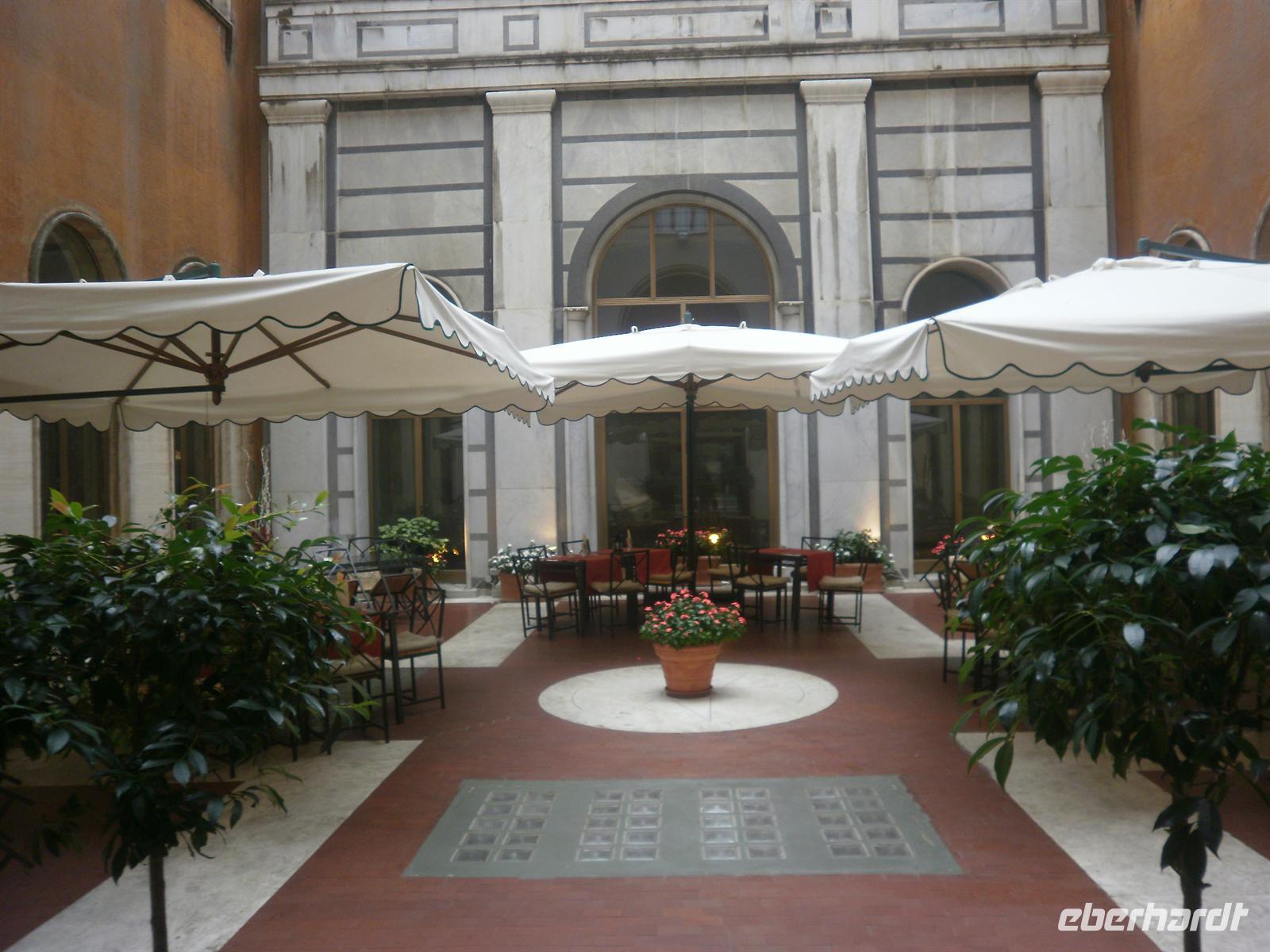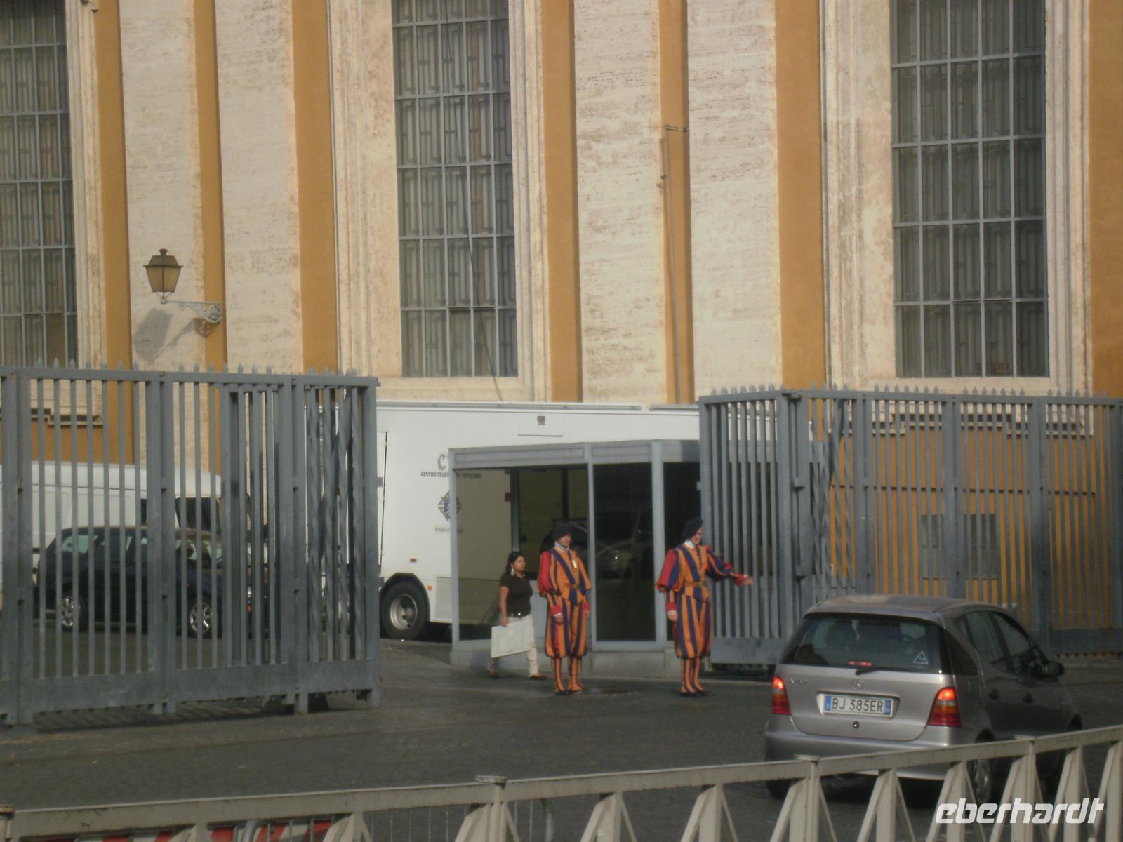 In Rom angekommen, erreichten wir am frühen Abend unser 4-Sterne-Hotel "Palazzo Carpegna". Dieses Hotel liegt in einer Parkanlage abseits der Via Aurelia, also im Westen Roms und unweit des Vatikans. Trotz der ruhigen Lage hat man von hier aus sehr gute Möglichkeiten, mit öffentlichen Verkehrsmitteln innerhalb von wenigen Minuten das Stadtzentrum Roms zu erreichen.