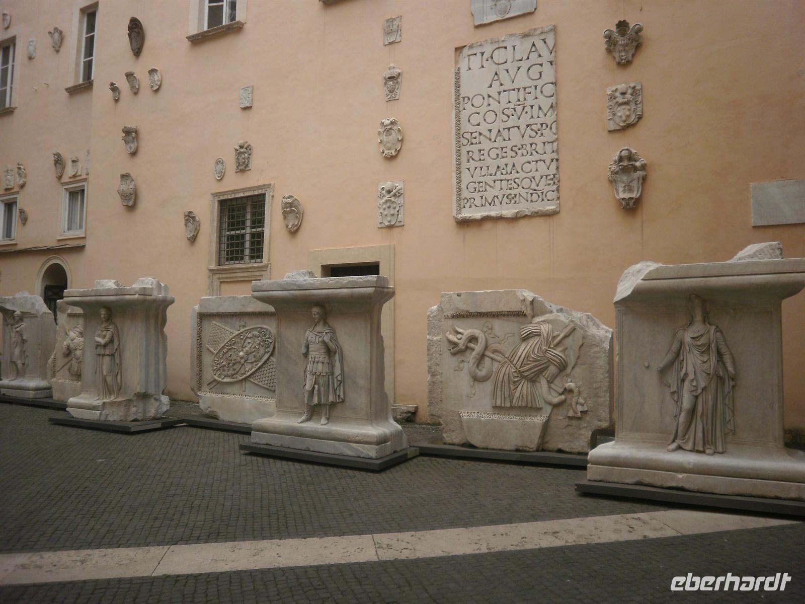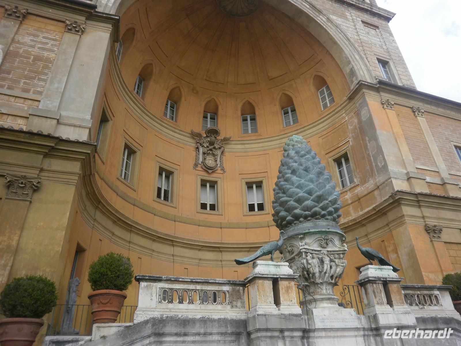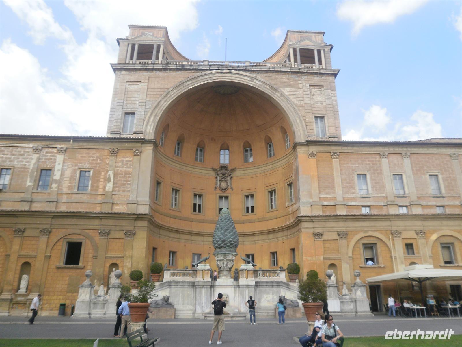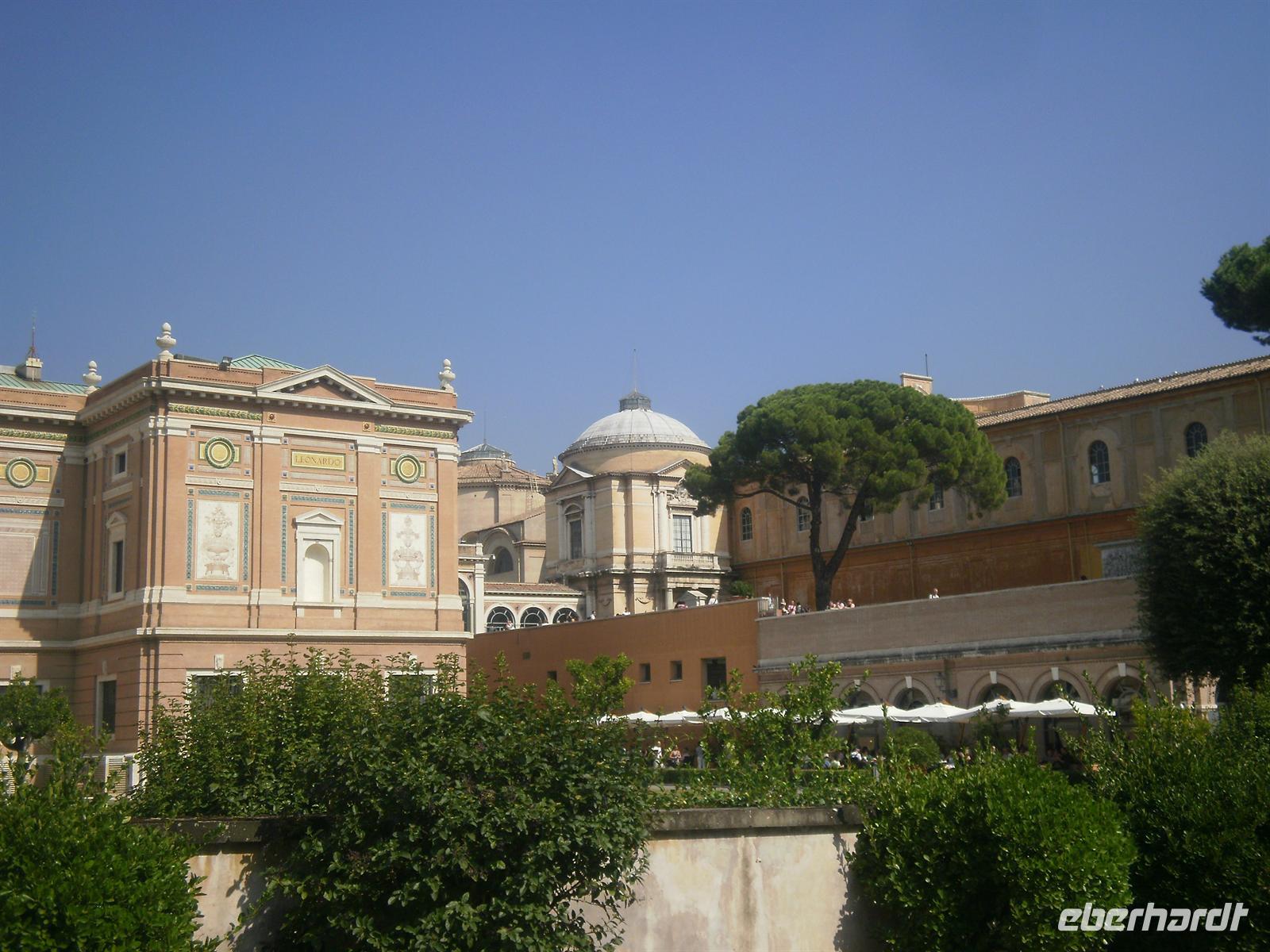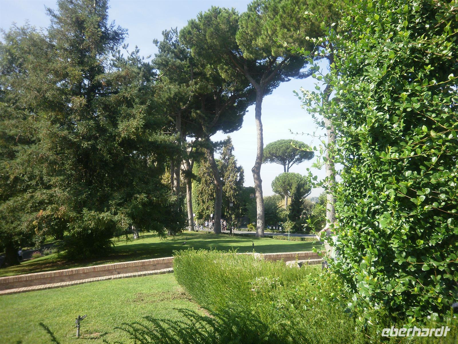 ließ der Papst einen Obstgarten (pomerium), einen Rasen (pratellum) und einen echten Garten (viridarium) anlegen, wie man auch einer heute im Konservatorenpalast des Kapitols aufbewahrten Steininschrift entnimmt. Dieser erste Kern entstand in der Nähe des Sant’Egidio-Hügels, wo sich heute der Belvedere-Palast und die Höfe der Vatikanischen Museen befinden. Das Gelände, von dem aus heutzutage der Besuch der Vatikanischen Gärten Ausgang nimmt, befindet sich dagegen im moderneren Teil des Staates, in dem die neuen großen Gärten angelegt wurden, die zusammen mit denen des ursprünglichen Kerns zirka die Hälfte der 44 Hektar einnehmen, auf denen sich der Vatikan erstreckt.