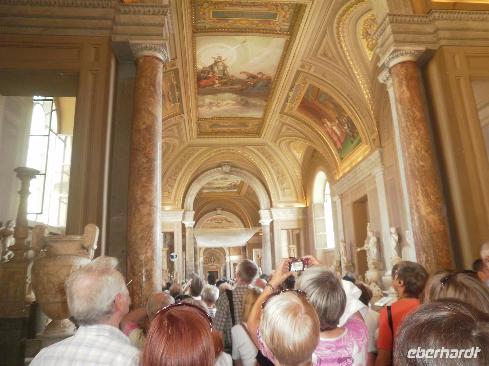 Highlight beim Besuch der Vatikanischen Museen war zweifellos die Sixtinische Kapelle, sie enthält mehrere der berühmtesten Gemälde der Welt und ist auch der Ort, an dem das Konklave abgehalten wird. Besondere Berühmtheit erlangte die Kapelle durch ihre Ausschmückung mit Fresken. Die Deckenmalereien malte Michelangelo Buonarotti zwischen 1508 und 1512 im Auftrag von Papst Julius II. Sie wurden 1512 enthüllt und zeigen Szenen aus der Genesis auf insgesamt