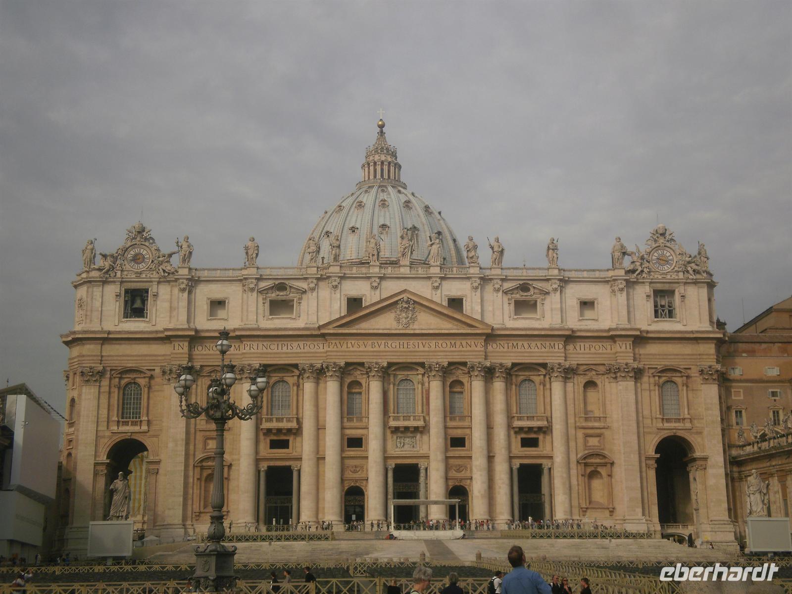Der Petersdom ist die Kirche der Superlative, Zentrum der Christenheit und Ziel der Pilger aus aller Welt. Wer Rom besucht, ob gläubiger Christ, kunsthistorisch Interessierter oder einfach auf Entdeckungstour, kommt am Wahrzeichen der ewigen Stadt nicht vorbei. Heute steht der Petersdom mitten in der europäischen Metropole. Doch zu Kaiser Neros Zeiten lag das Herzstück des Bauwerks, das Grab des Apostels Petrus, noch weit draußen vor der Stadt. Der Grundstein wurde am 18. April 1506 gelegt und es wurde rund 120 Jahre lang gebaut. Für die Gläubigen in aller Welt gilt Sankt Peter als das Heiligtum der römisch-katholischen Kirche. Vom Herzstück des Vatikans spendet der Papst übrigens am Ostersonntag und am 1. Weihnachtsfeiertag seinen Segen "Urbi et Orbi" - der Stadt und dem Erdkreis.