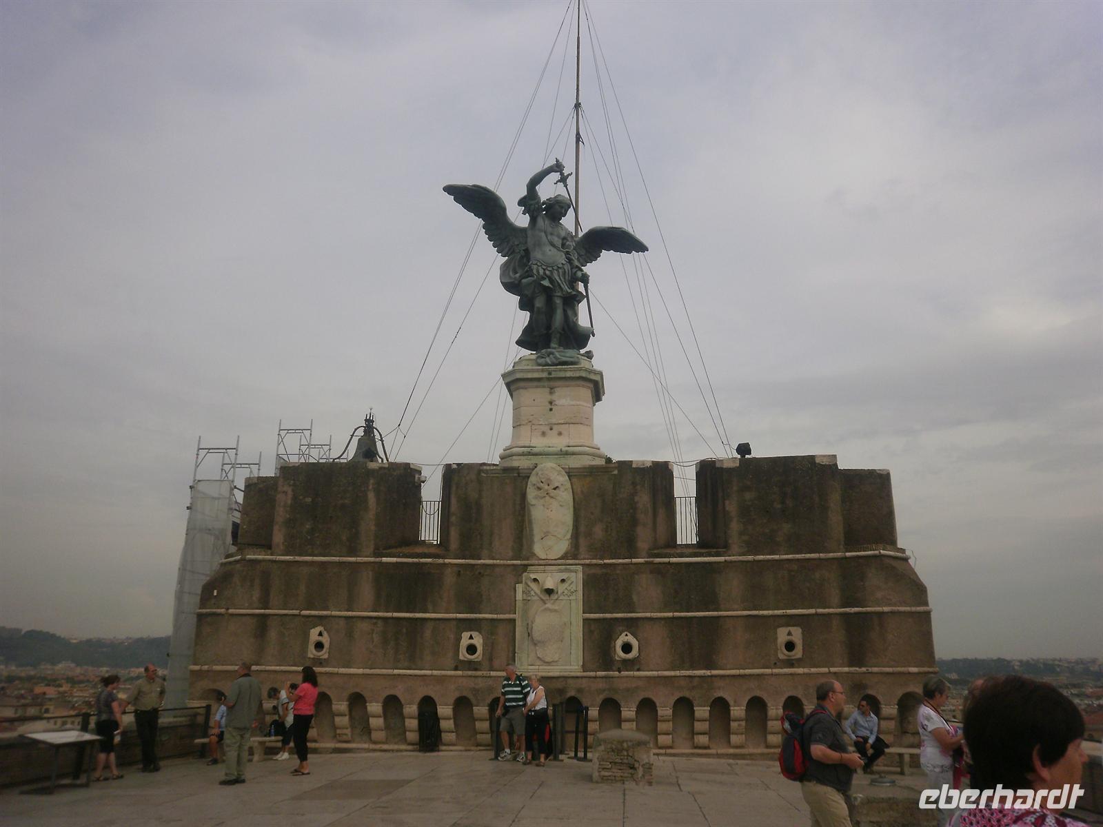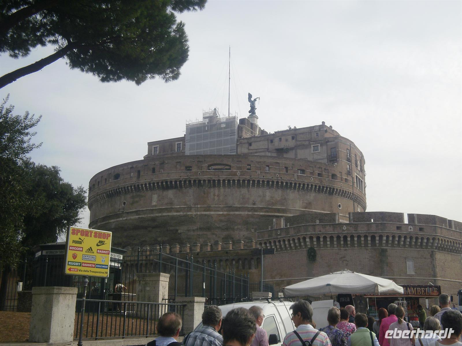 Kaiser Septimus Severus ließ den Bau im Jahre 193 vollenden. Als Rom durch die Eroberungszüge der Germanen in Gefahr geriet, wurde die Engelsburg integrativer Teil einer Stadtbefestigung, die Kaiser Aurelian anlegen ließ. Die Engelsburg wurde durch ihre günstige Lage zur stärksten Festung Roms ausgebaut. Den heutigen Namen erhielt das ehemalige Hadrianeum, als im Jahre 590 Papst Gregor der Große eine göttliche Vision hatte: ein Engel erschien ihm über dem Mausoleum und kündigte das Ende der damals herrschenden Pest an, indem er sein Schwert in die Scheide steckte - heute so dargestellt in der bronzenen Engelsstatue aus dem Jahre 1753 auf der Spitze des Kastells.
