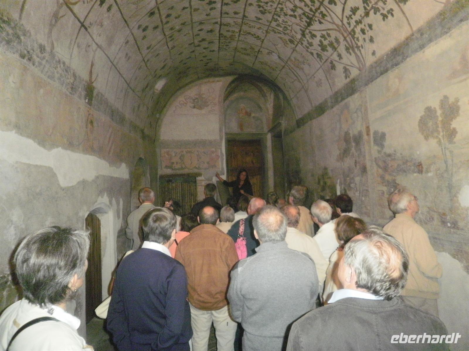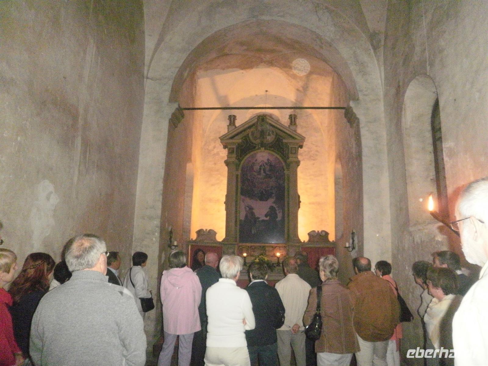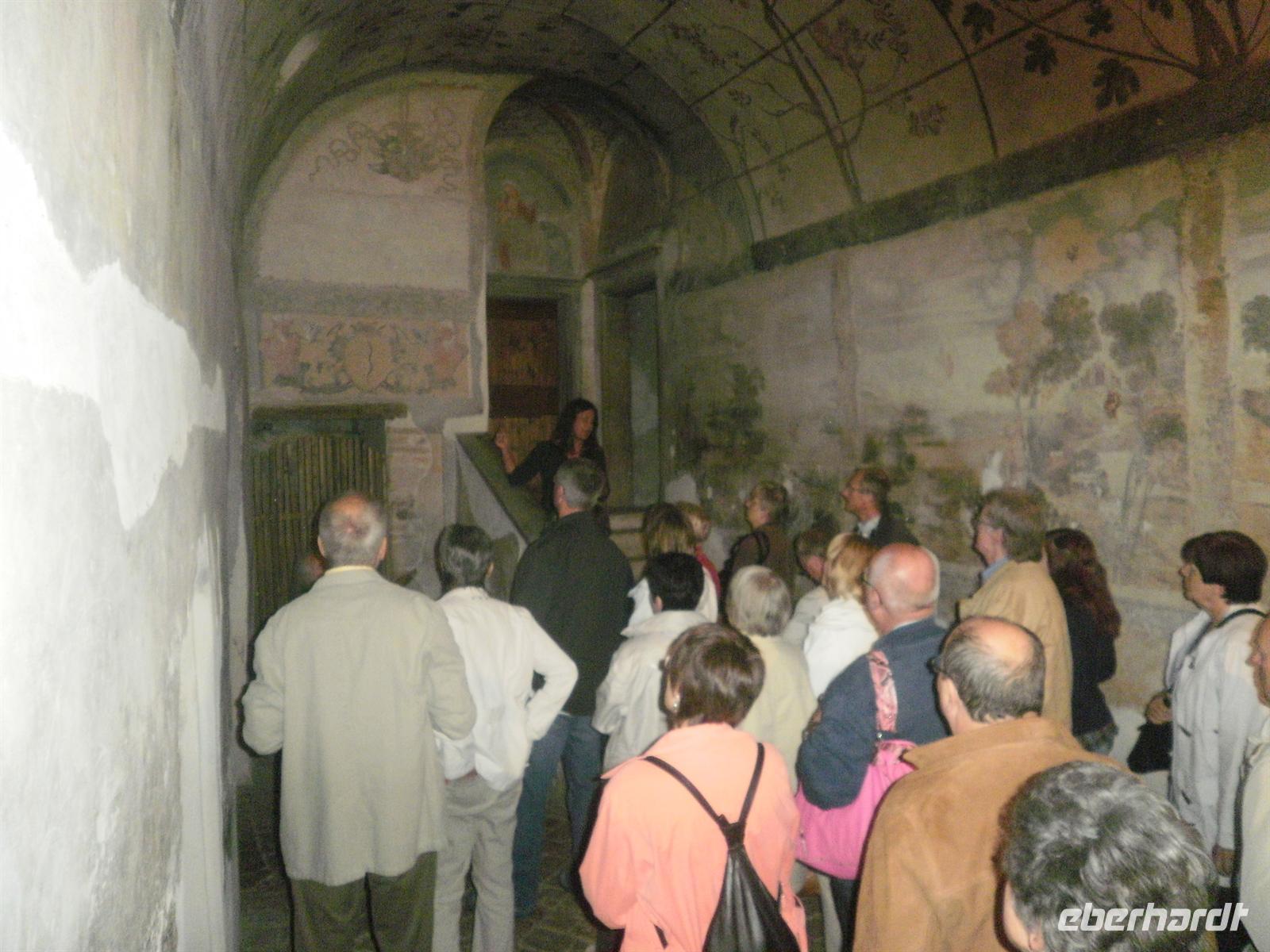 Diese mittelalterliche Burg liegt unweit von Rovereto oberhalb des Etschtales. Schon die Auffahrt mit dem Bus war fantastisch, da wir immer wieder schöne Blicke auf das Tal und die Stadt Rovereto hatten. Wir wurden mit einem Glas Wein und Musik begrüßt und erlebten eine kleine Burgführung, bevor es schließlich zum Abendessen ging. Für uns war ein wunderbares Buffet mit italienischen Spezialitäten vorbereitet - unter anderem Antipasti, das sind eingelegte Kleinigkeiten in Olivenöl. Für jeden Geschmack war etwas dabei. Nach diesem reichhaltigen Buffet konnten wir anschließend das Tanzbein schwingen und es herrschte eine ausgelassene Stimmung. Zum Schluss erklang als Abschluß ganz passend: "Arrivederci Roma" - da bekamen dann einige von uns eine Gänsehaut! Gut gelaunt fuhren wir am späten Abend ins Hotel zurück.